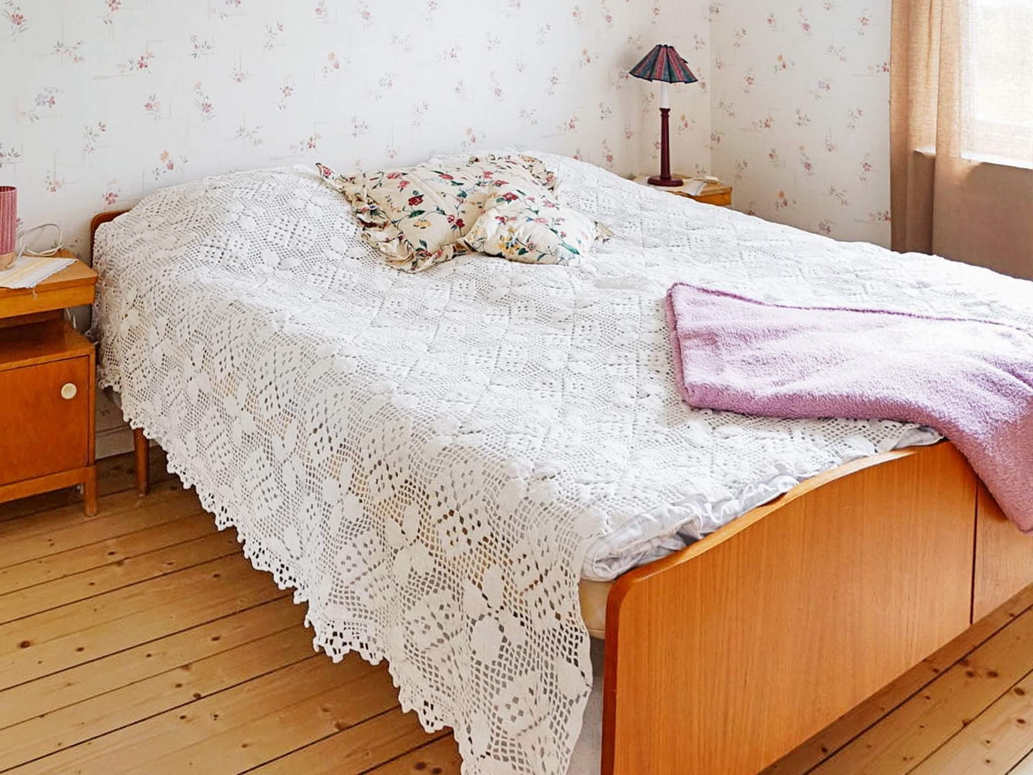 Eine geschwungene Treppe führt hinauf in die obere Etage mit zwei Schlafzimmern und einer Diele dazwischen. Beide Schlafzimmer verfügen über zwei Schlafplätze und Schrankplatz. Im kompletten Haus wurde im Zuge der Renovierung frisch tapeziert, die Holzböden abgeschliffen.