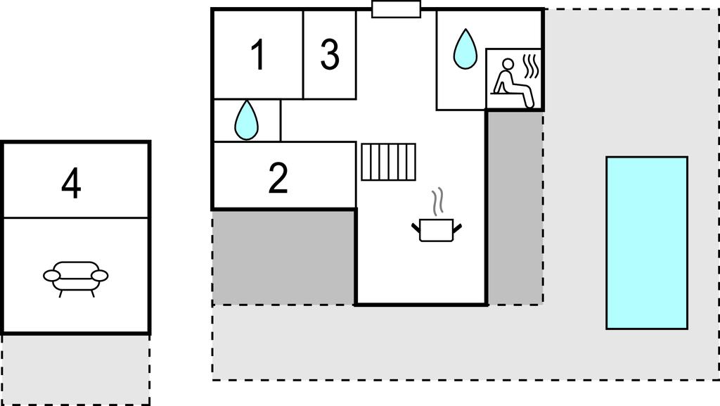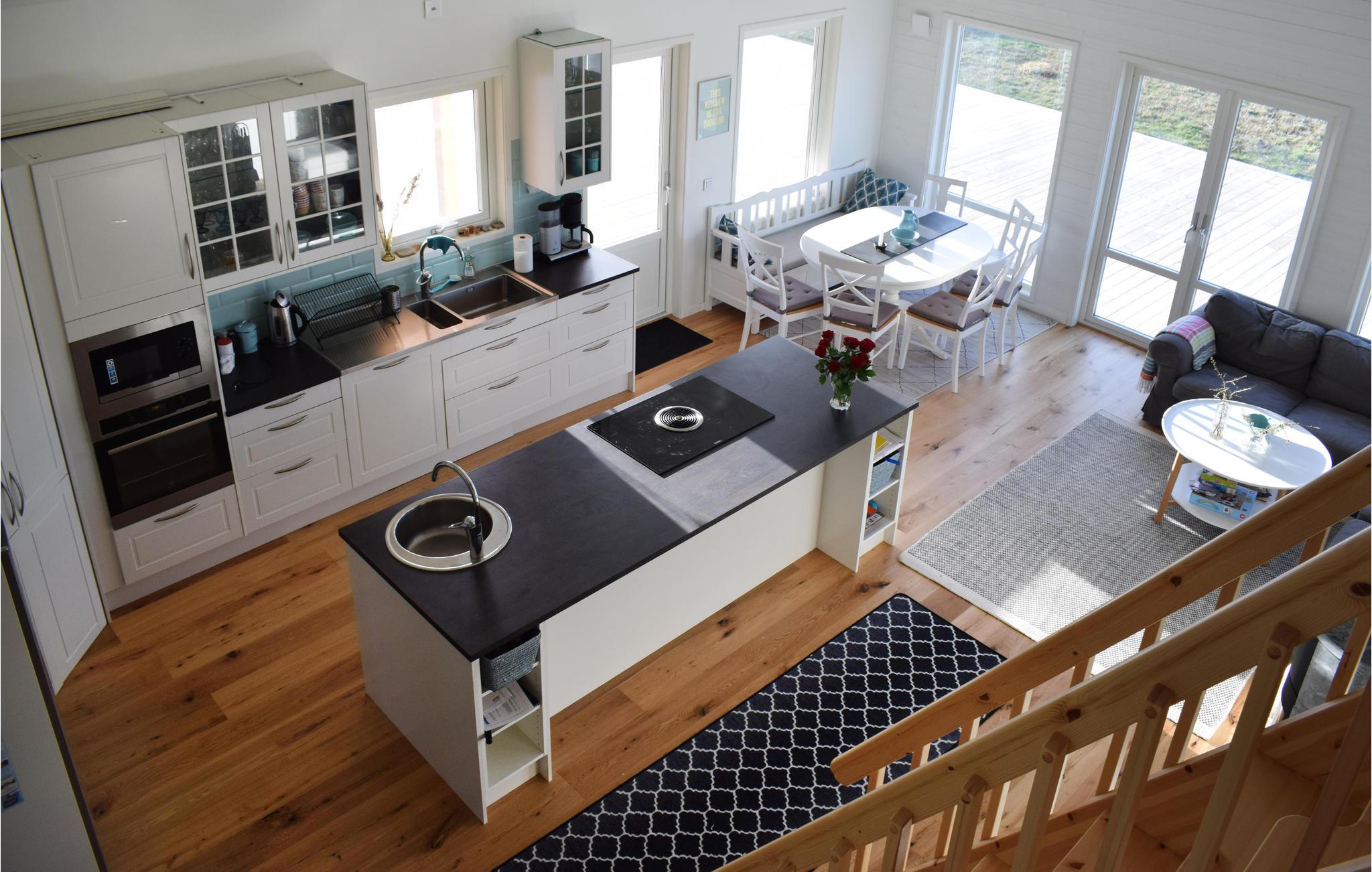 Draußen gibt es eine große und schöne Holzterrasse, die teilweise überdacht ist und den großen Pool umgibt. Das Haus verfügt im Untergeschoss über 3 Schlafzimmer, ein großes Badezimmer mit Dusche und Sauna sowie eine große Küche und ein Wohnzimmer in offenem Schnitt. Von der Sauna gibt es auch einen Ausgang zur Terrasse. Das zweite Stockwerk besteht aus einem Wohnzimmer mit großem Sofa und einem Schlafzimmer. Von hier aus kommen Sie auf den Balkon, von wo aus Sie einen herrlichen Blick auf die offene Insellandschaft haben.