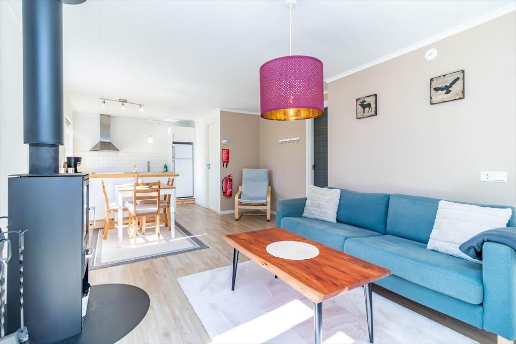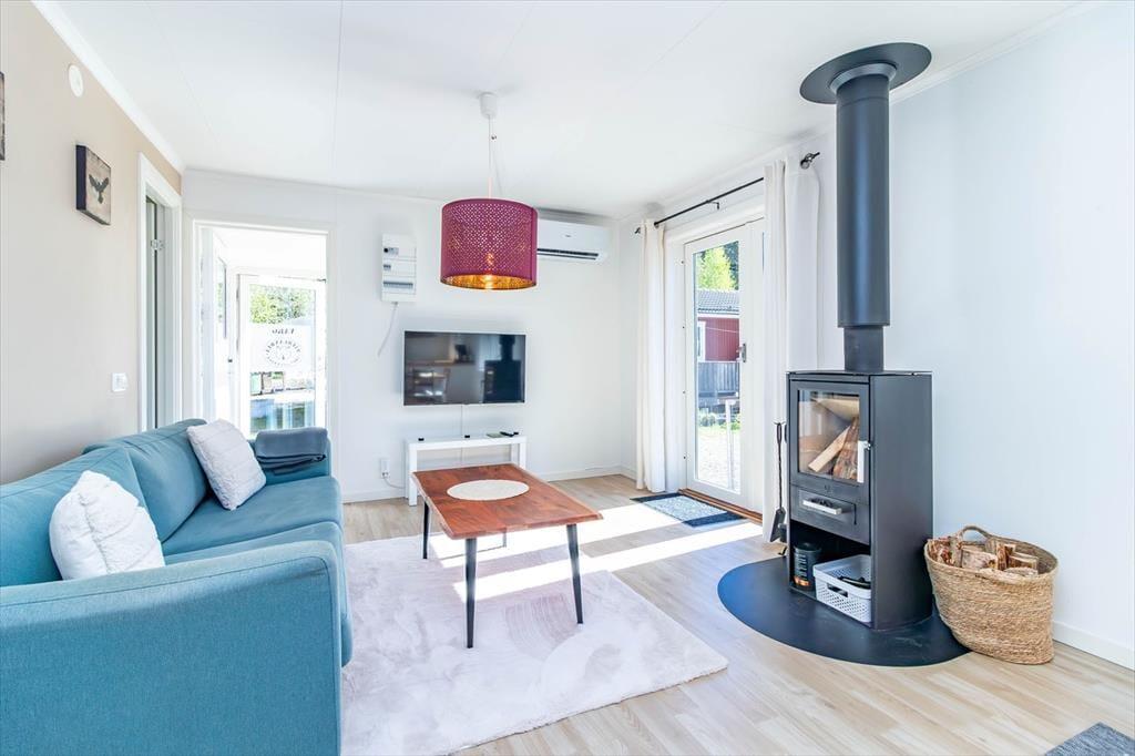 Das Haus bietet auf etwa 29 m² Wohnfläche Platz für 3 Personen. Im offenen Wohn- und Küchenbereich findest du ein Sofa, einen Smart-TV und einen Kamin, während ein Schlafzimmer mit einem Doppelbett und das Zweite mit einem Einzelbett zum Entspannen einladen. Die Küche ist voll ausgestattet mit einem 4-Platten-Induktionsherd, Backofen, Kühlschrank mit Gefrierfach, Kaffeemaschine und Dunstabzug. Am Esstisch mit drei Stühlen kannst du gemeinsam frühstücken oder Abendessen genießen. Internet über Starlink ist verfügbar. Beheizt wird das Haus über Elektroheizung und Luftwärmepumpe. Vor dem Haus lädt die Terrasse mit Blick Richtung See mit Terrassenmöbeln und Grill zu gemütlichen Stunden im Freien ein. Du kannst bequem auf dem Grundstück parken.