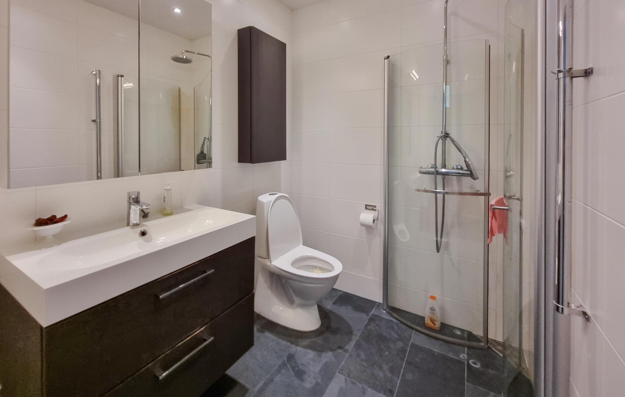Badezimmer (nr. 2) - WC. Warmes und kaltes Wasser. Dusche und Badewanne