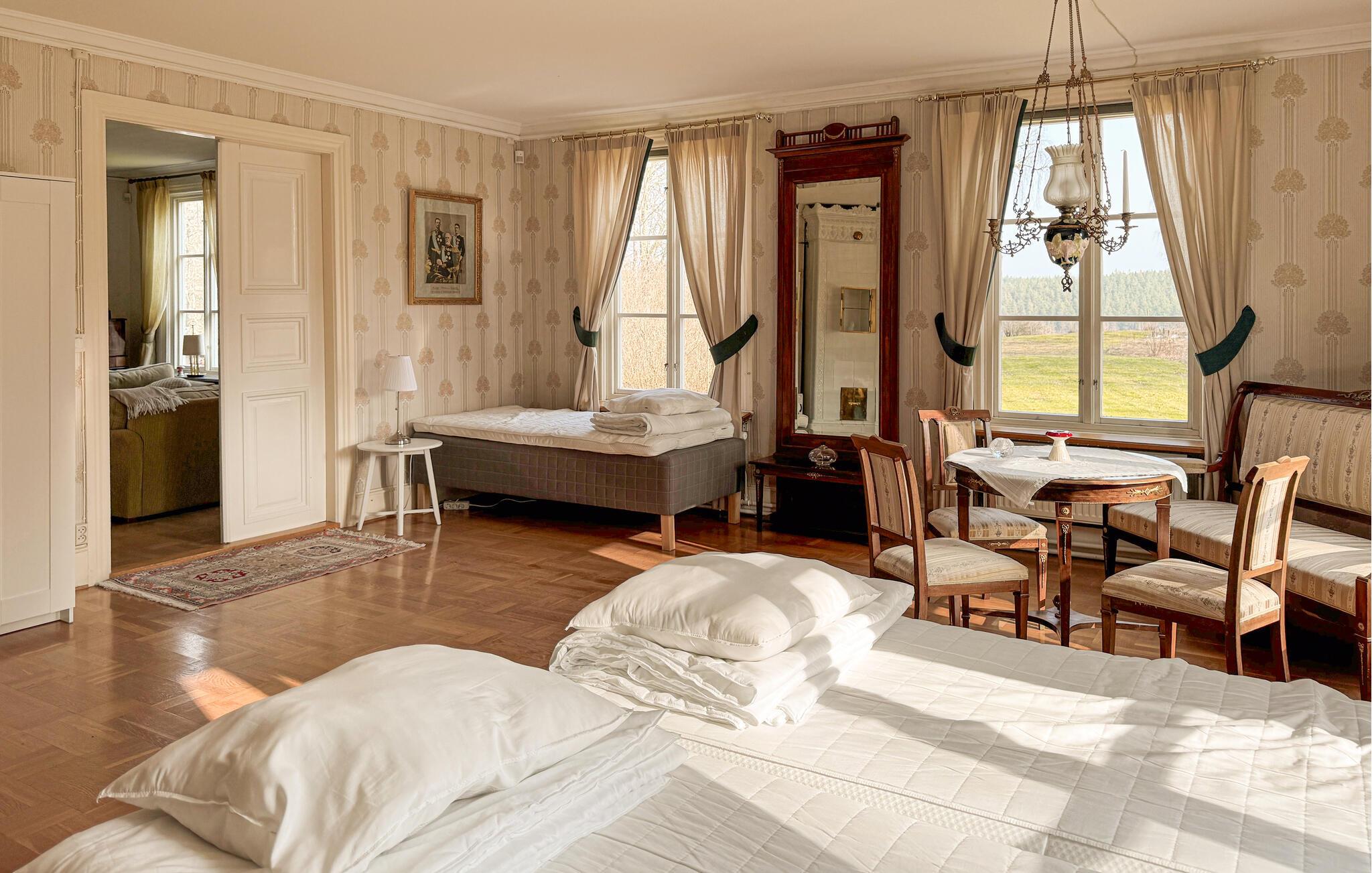 Diese helle und behagliche Erdgeschosswohnung ist Teil eines wunderschön gelegenen Herrenhauses, das auf eine jahrhundertealte Geschichte mit namhaften Familien wie Ribbing und Fleetwood zurückblickt. Hier sorgen historische Elemente wie schöne Kachelöfen und originale Holzarbeiten für eine angenehme Atmosphäre. Genießen Sie diese bei harmonischen Mahlzeiten, schmökern Sie in der Bibliothek nach einem interessanten Buch, nutzen Sie das Musikzimmer zum gemeinsamen Musizieren und machen Sie es sich für anregende Gespräche im einladenden Wohnzimmer gemütlich.