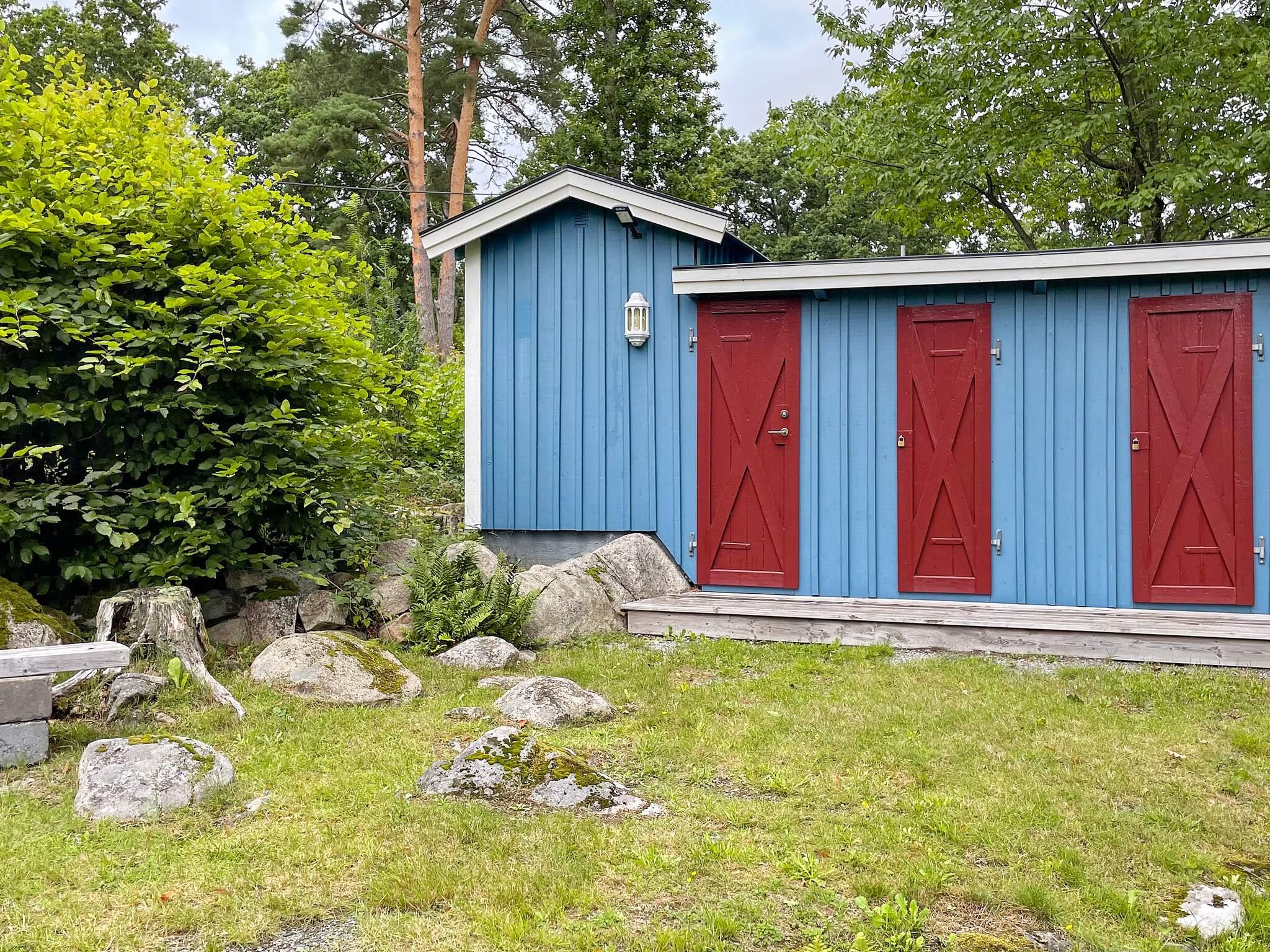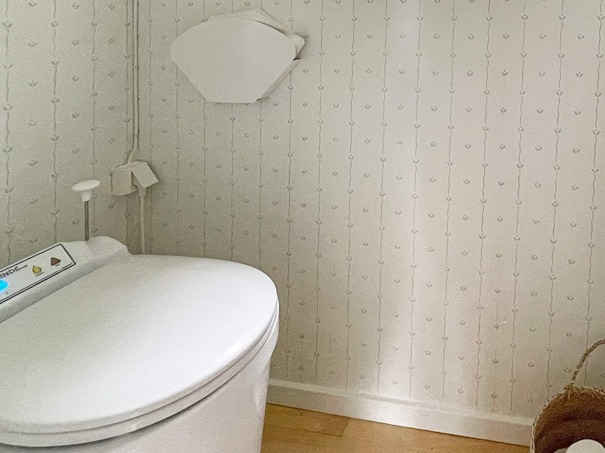 Um zur Toilette und Dusche zu gelangen, müssen Sie ein paar Schritte über den Rasen zu einem angrenzenden Haus gehen. Es gibt einen separaten Raum mit einer Verbrennungstoilette, die der Gast, nach klaren Anweisungen, entleeren muss.
