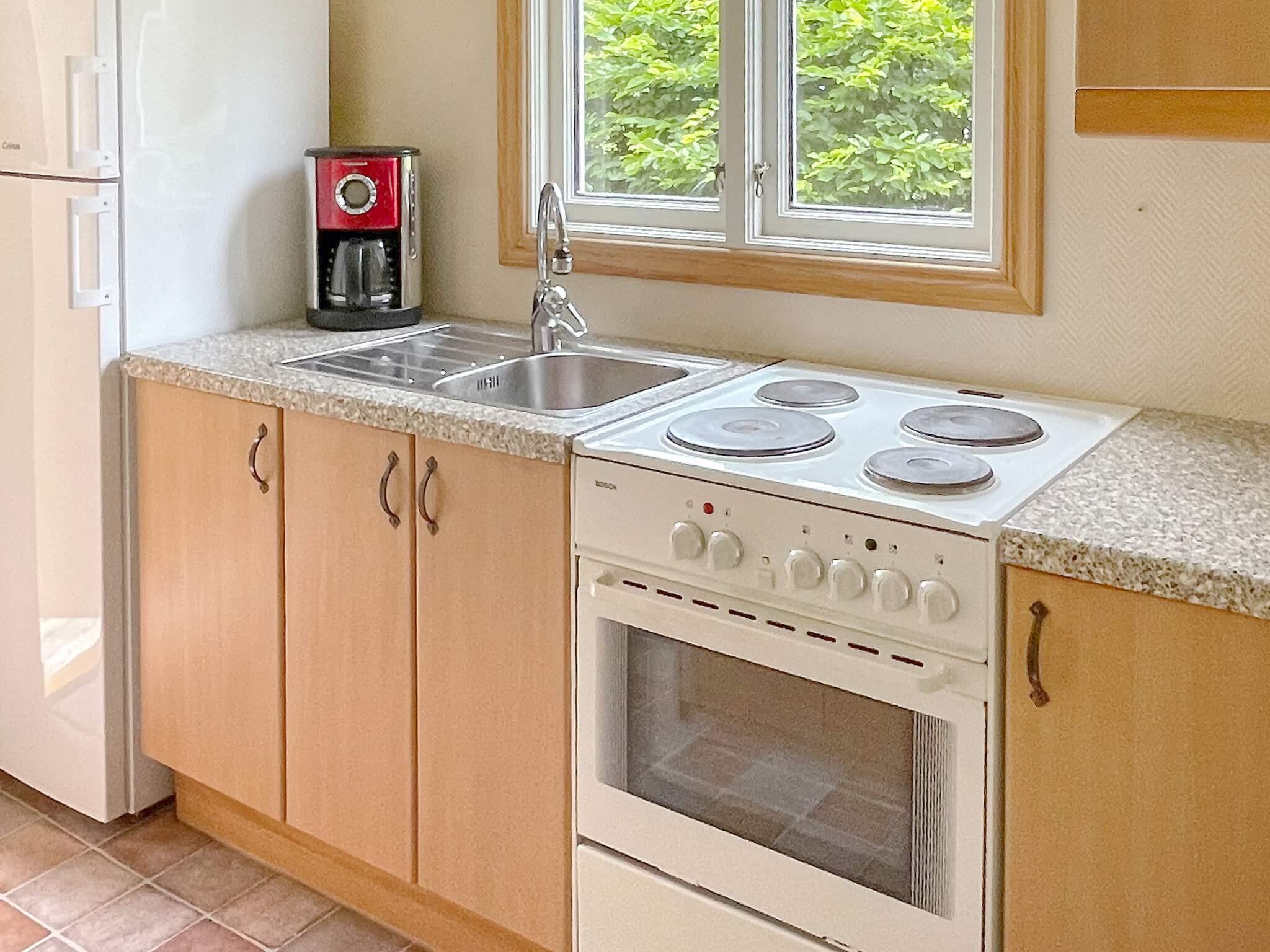 Gemütliches Ferienhäuschen im Grünen, in einem Ferienhausgebiet direkt neben dem Hafen von Stilleryd in Karlshamn. Erhöhte Lage, eingebettet im Grünen und mit kleinem Meerblick von der Veranda durch das Grün der Bäume hindurch. Kleines, schön begrüntes Gartengrundstück am Häuschen.