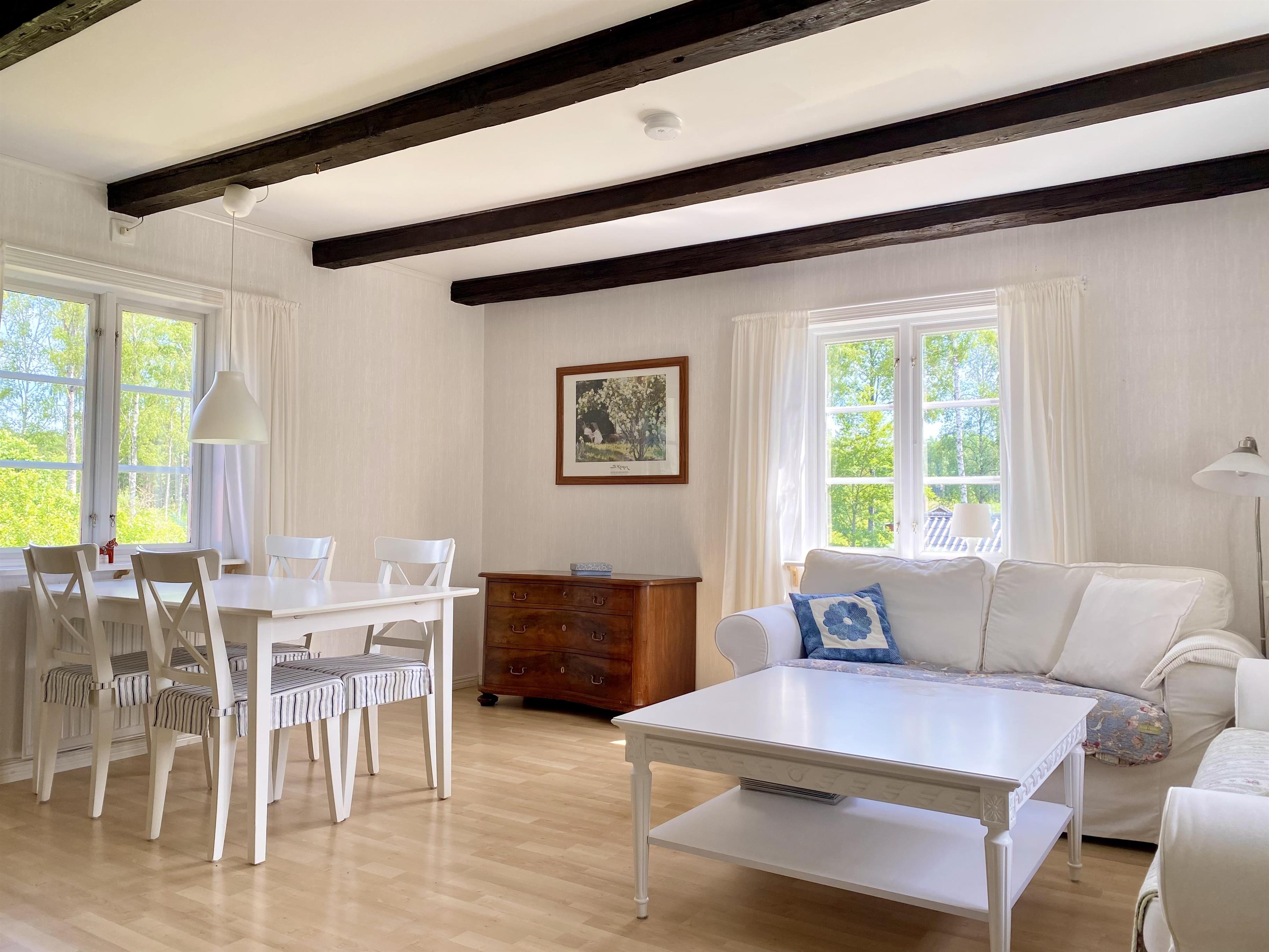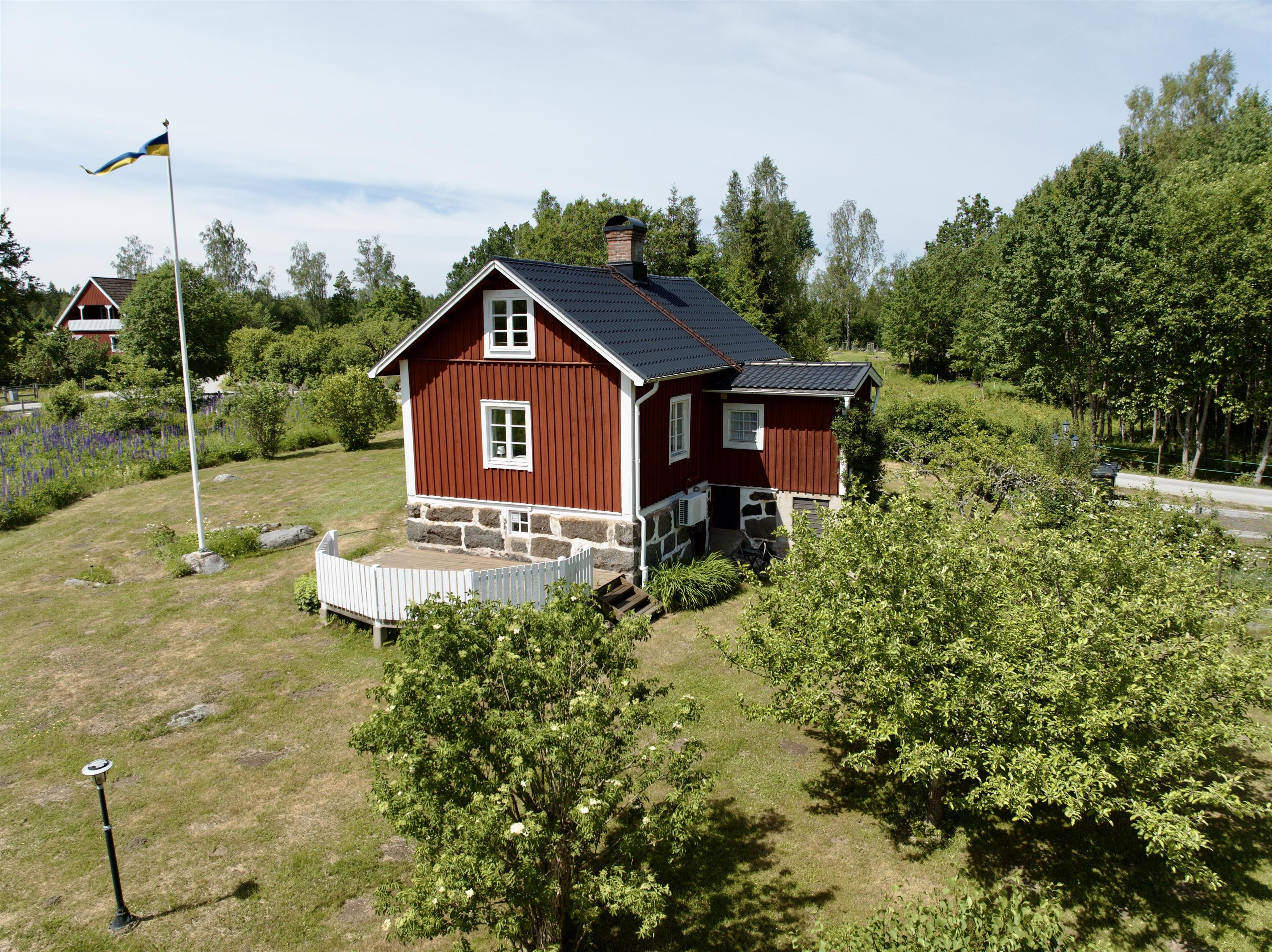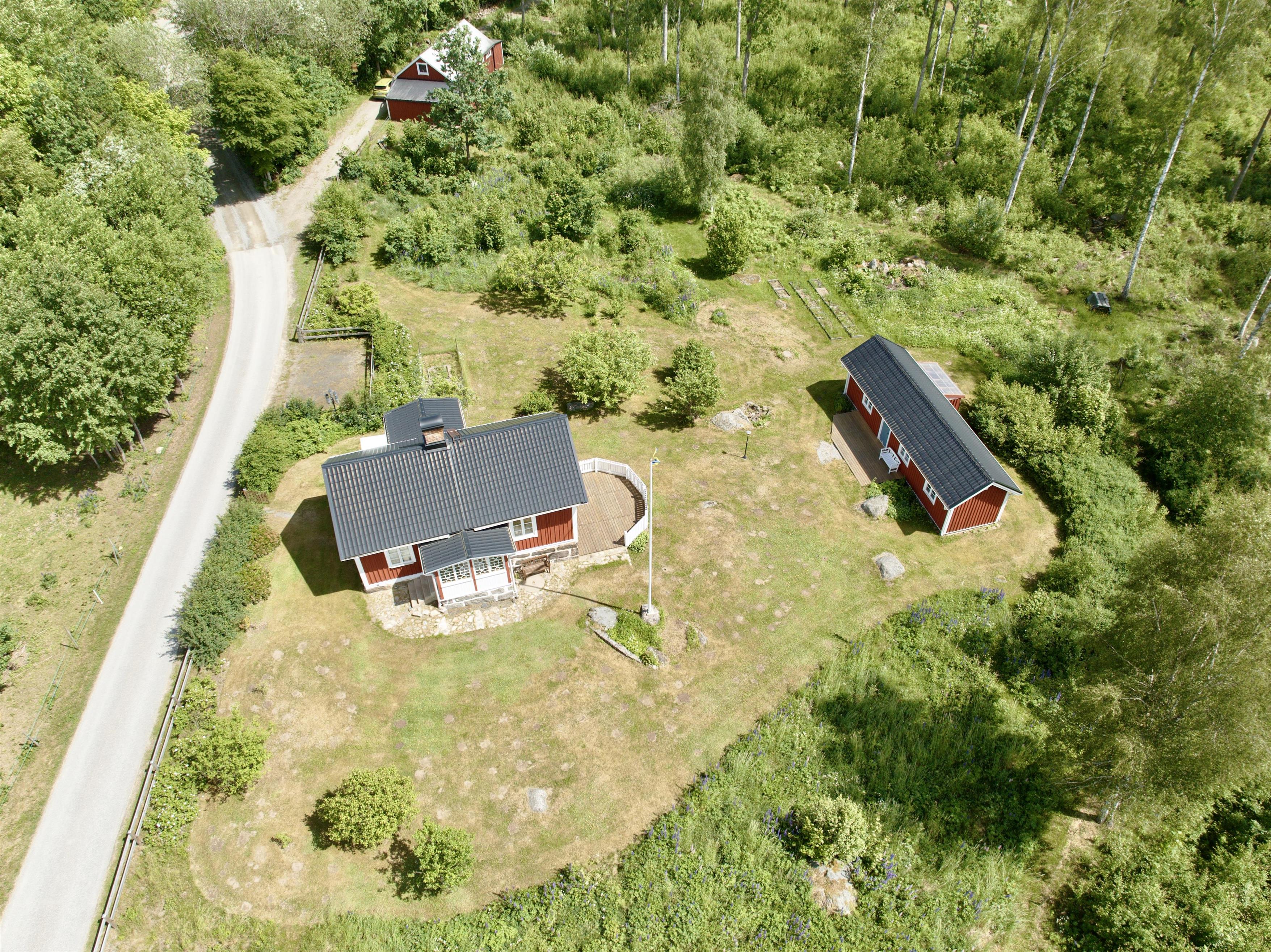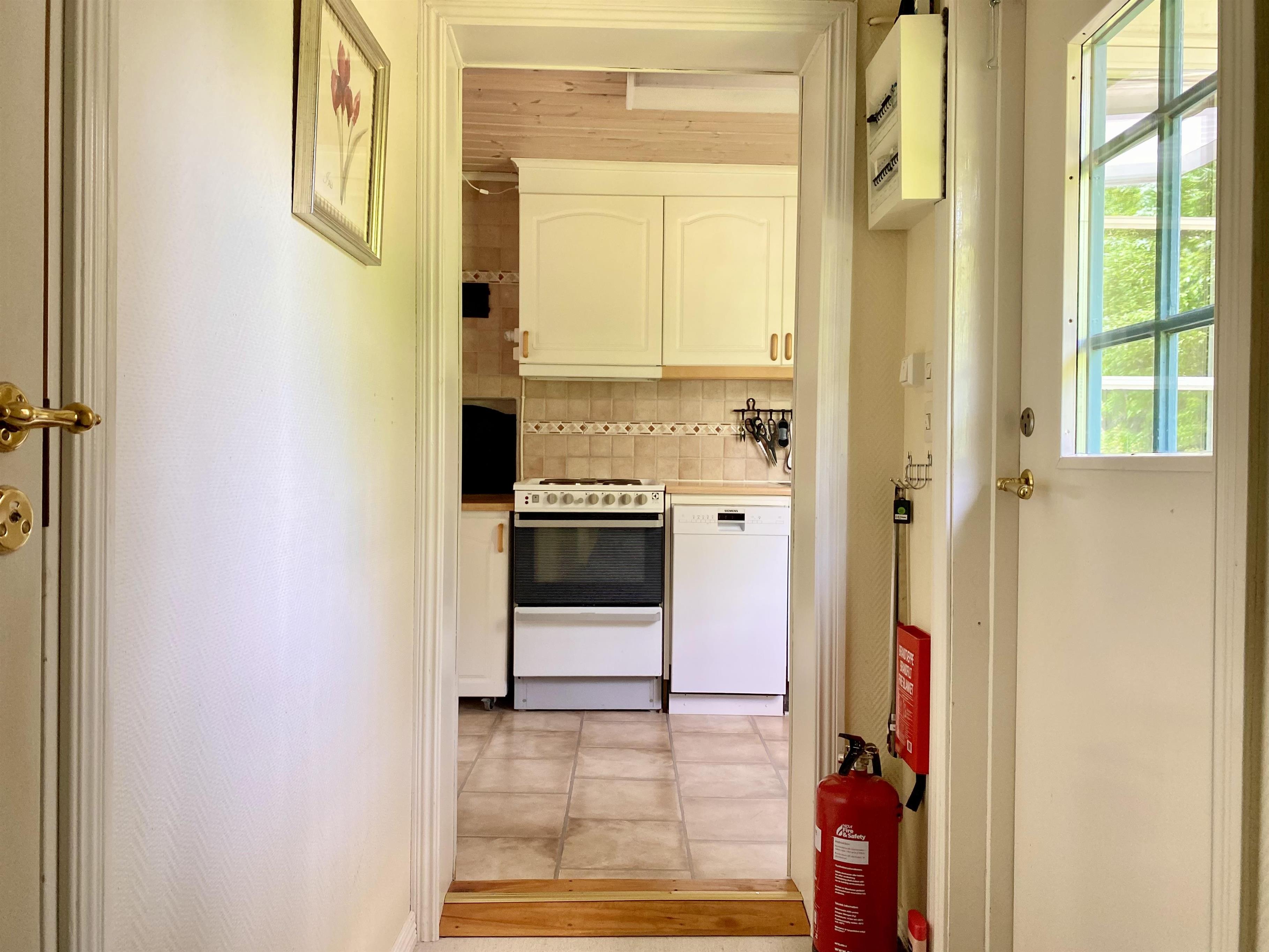 Tatsächlich besteht die Ferienunterkunft aus 3 Häusern! Das große Haus ist komplett möbliert und verfügt über 2 gute Doppelbetten. Eines steht im Schlafzimmer im Erdgeschoss, das andere ist eine Treppe höher. Außerdem gibt es ein Einzelbett, das bei Bedarf ins Haus gebracht werden kann. Dieses Bett steht in der Werkstatt/Garage. Hier gibt es einen Kamin und einen Fernseher mit dänischen und schwedischen Kanälen sowie eine Satellitenschüssel mit deutschen Kanälen. WLAN ist ebenfalls vorhanden.