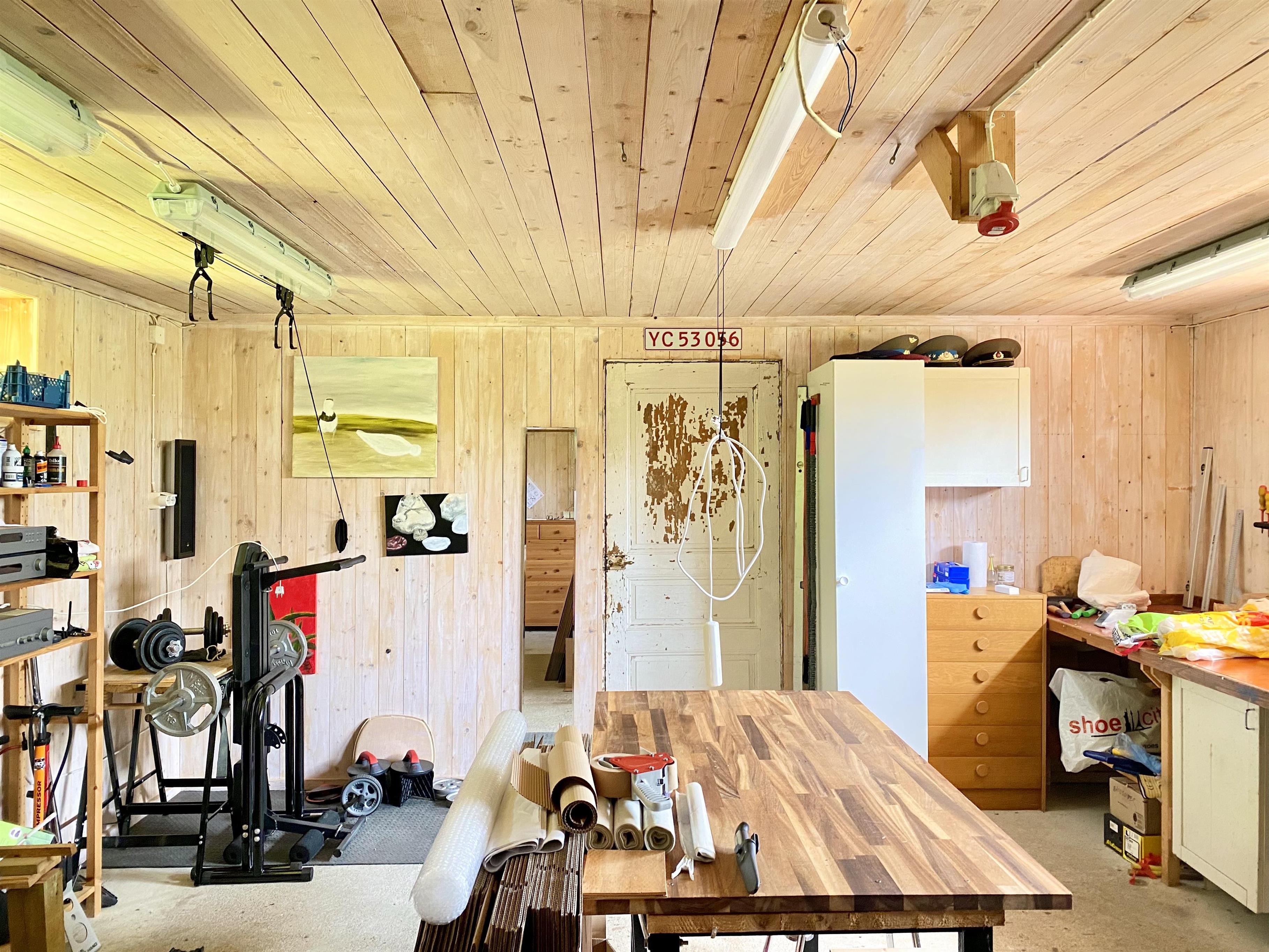 In der Werkstatt/Garage stehen ein Heimtrainer und Trainingsgeräte/Yogamatte zur Verfügung. Es gibt ein paar Fahrräder und Spielzeug für Kinder.