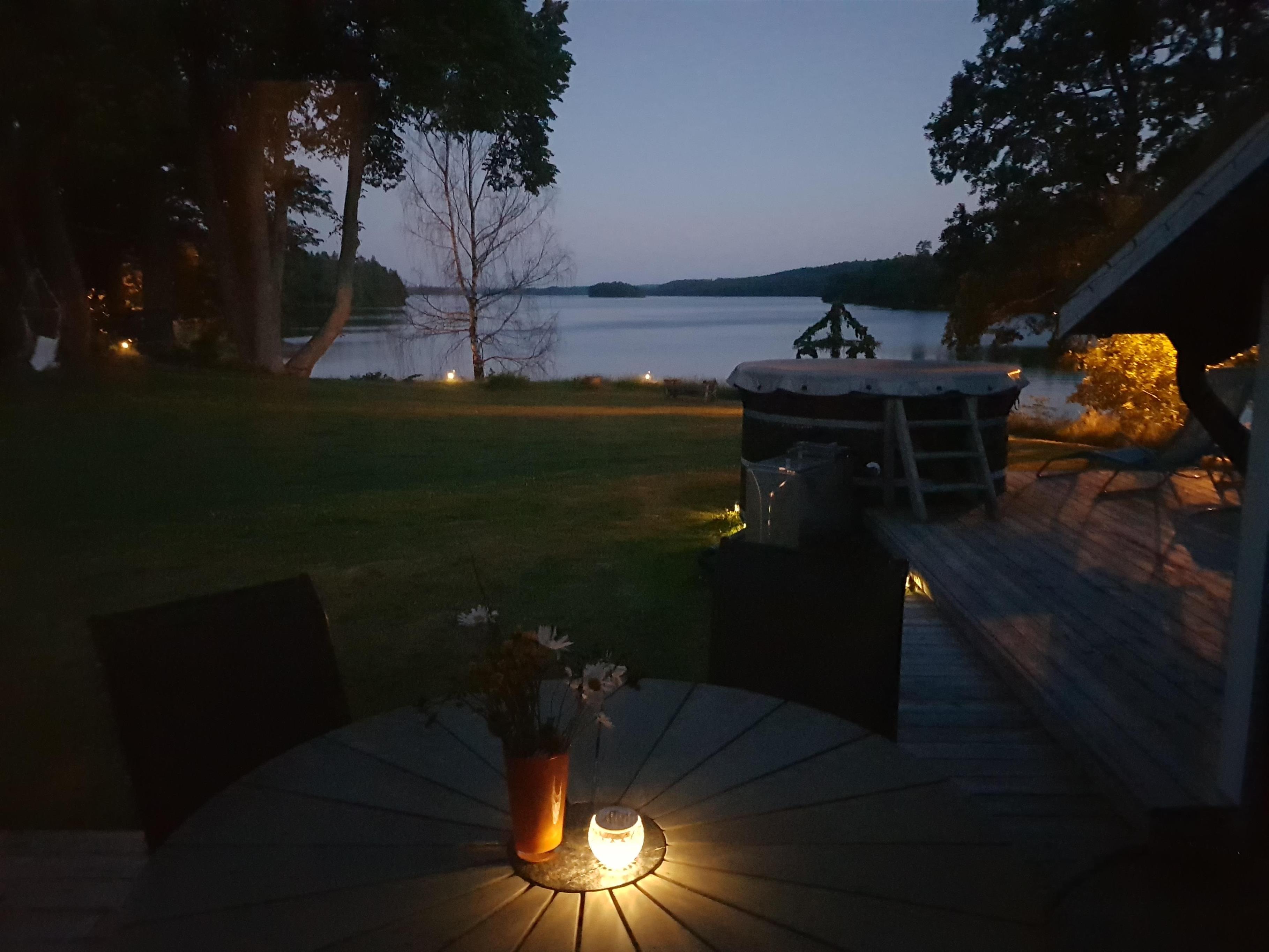 The house lies only 20 meters from the lake. At the house there is a private jetty. The house has a wood-fired sauna (for up to 8 persons) and a wilderness bath, that is overlooking the lake (firewood can be bought at a gas station).