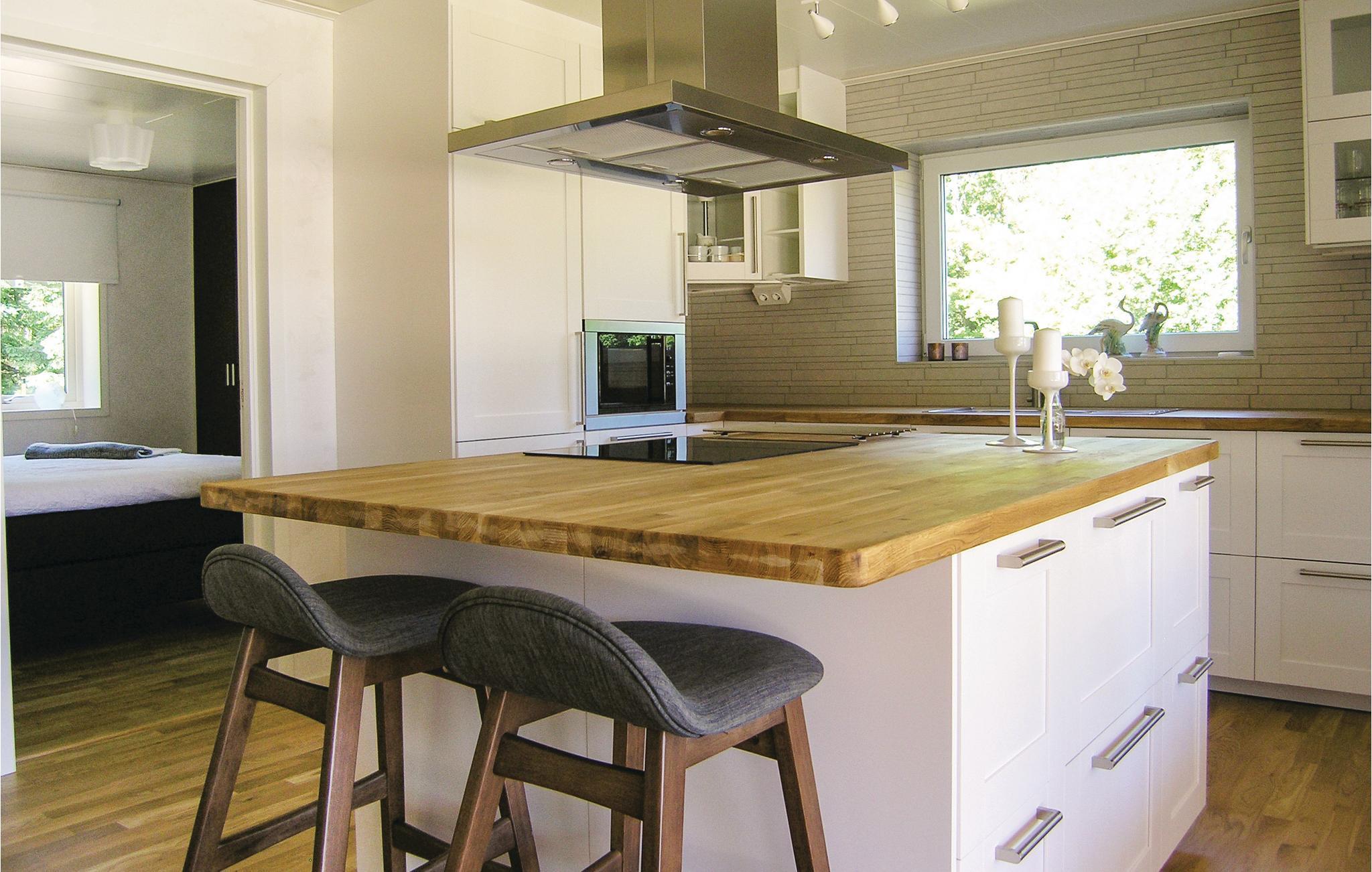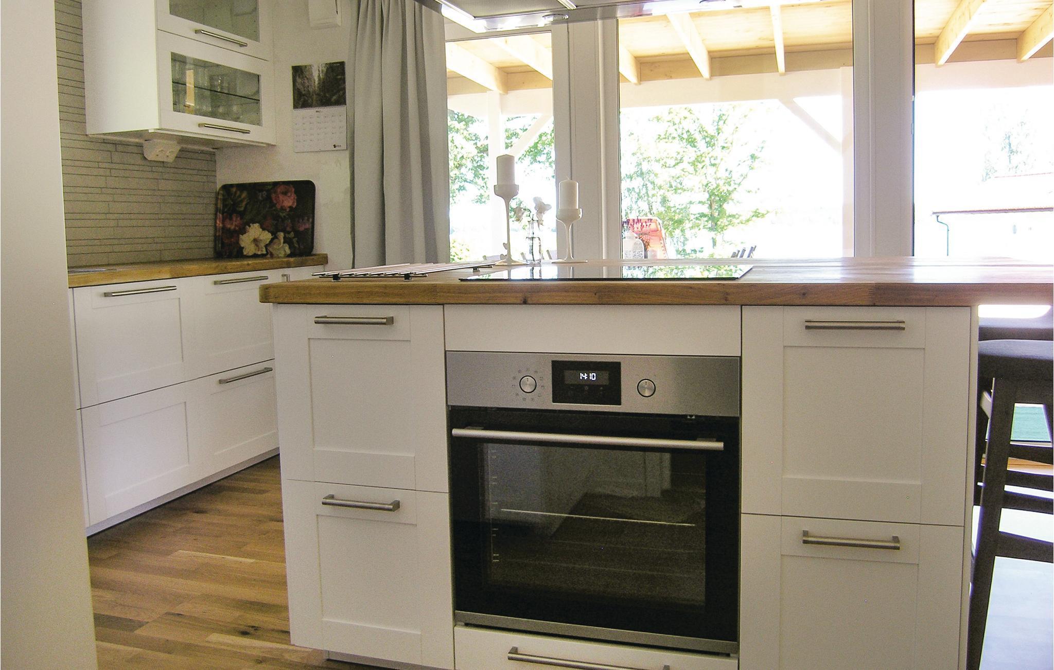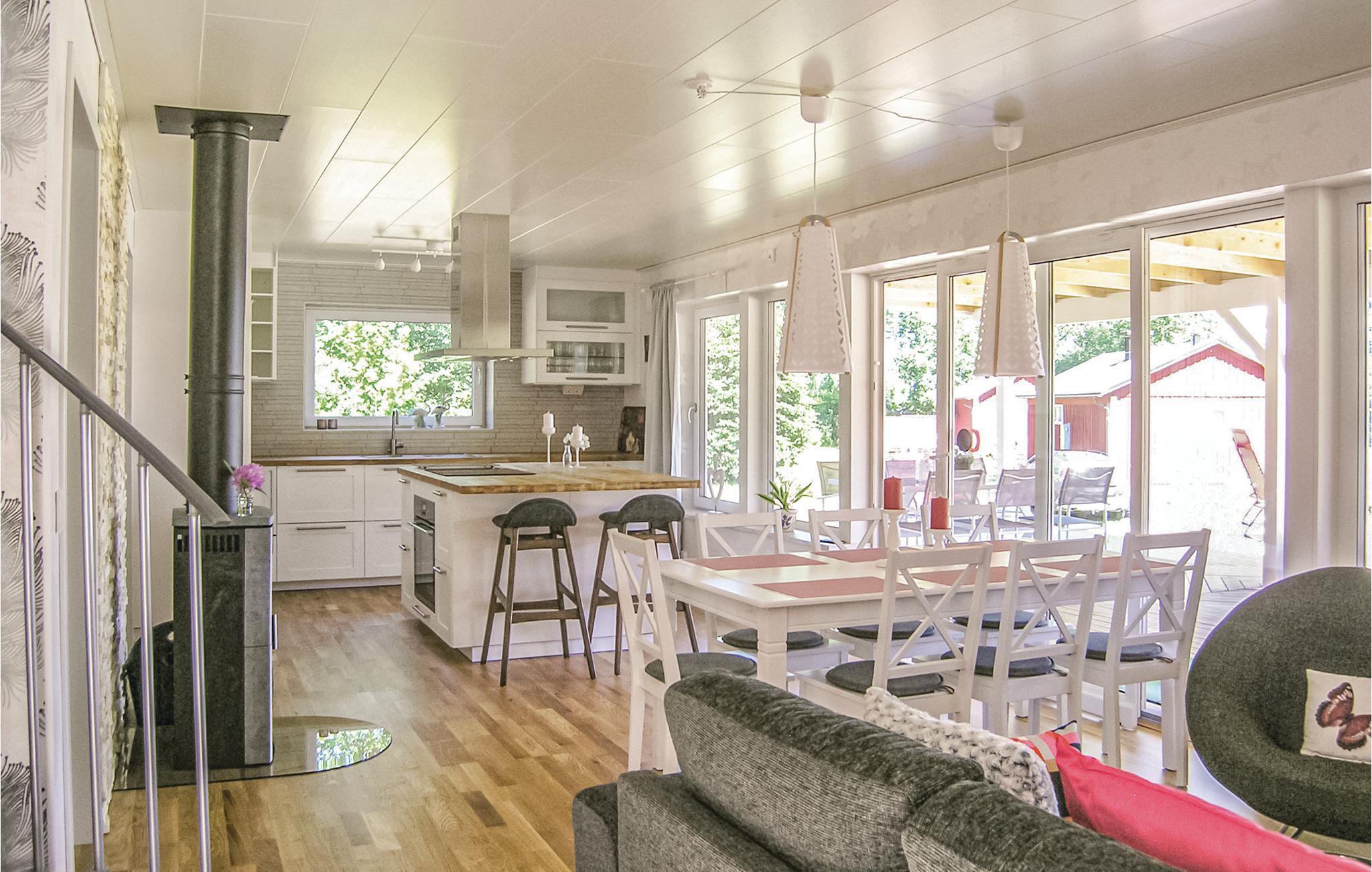 Mit einer herrlichen Aussicht auf den See Bolmen liegt dieses moderne Ferienhaus. Es liegt auf der Insel Bolmsö. Die große Terrasse ist teilweise überbaut und mit bequemen Gartenmöbeln ausgestattet. Eine Treppe führt zu einer weiteren Terrasse. Nur einen Steinwurf entfernt liegt ein kinderfreundlicher Strand mit Grillplatz und Fischreinigungsplatz am See. Zwei Schlafzimmer und ein Schlafsofa im Wohnzimmer. Große Glastüren öffnen sich im Wohnzimmer zum See hin. Den 300 m entfernt gelegenen Steg können Sie nach Übereinkunft nutzen. Ein Extraboot kann gemietet werden. Ausflugsziele: Langanland Elchpark, Busland, High Chaparral, Astrid Lindgrens Värld. Einkaufen in Värnamo und Ljungby.