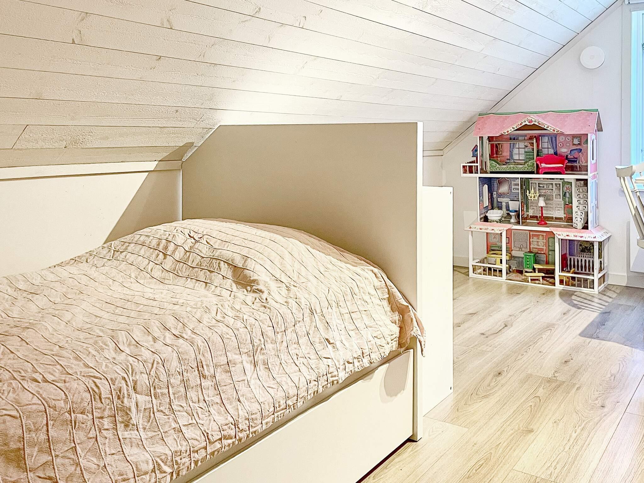 Über eine Treppe gelangen Sie hinauf in die obere Etage, auf der sich drei Schlafzimmer befinden; eines mit Doppelbett und zwei weitere mit jeweils einem Einzelbett.