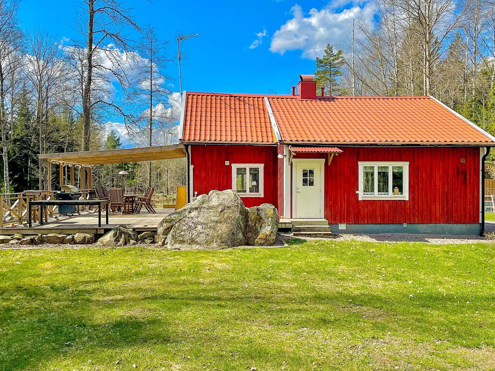 Attraktives Ferienhaus bei Tveta, nur 80 m von einem Seeufer gelegen und mit dem Wald als nächstem Nachbarn. Am Ufer kann man von den Felsen oder dem schwimmenden Steg aus baden. Hier ist der richtige Ort für Ruhe und Erholung. Genießen Sie die Natur, das Zwitschern der Vögel und wohltuende Waldspaziergänge rund um den See. Tveta ist sagenhaft schön.