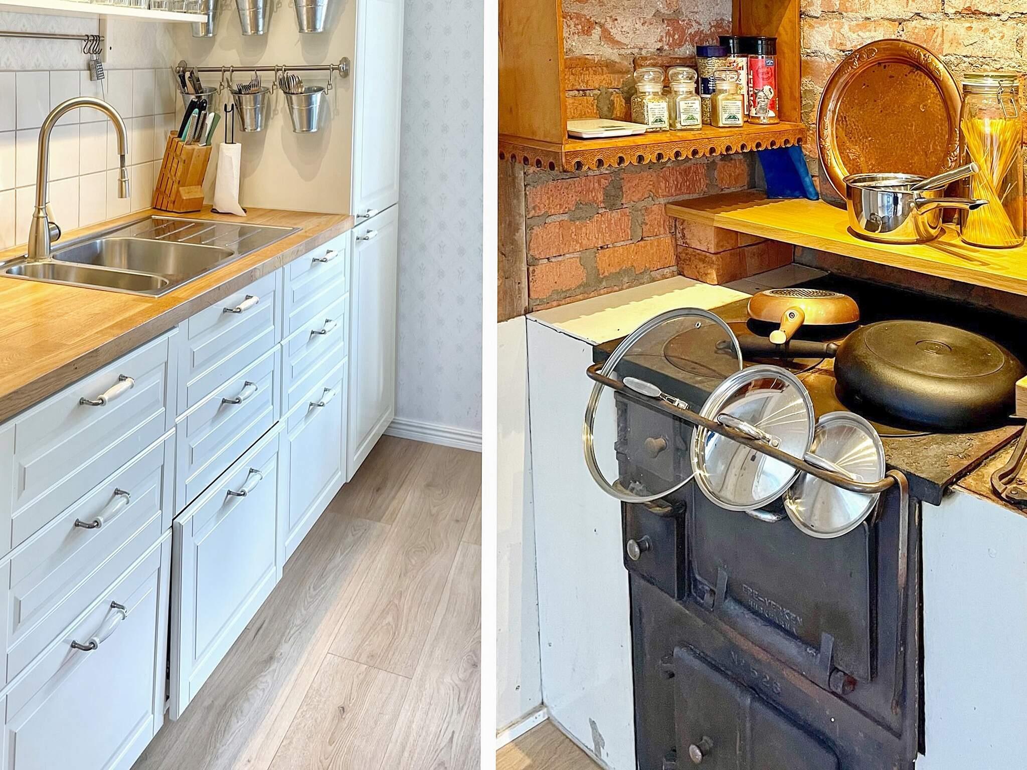 Im Haus schöne Landhausküche mit Essbereich, Geschirrspüler und guter Ausstattung. Das Esszimmer ist wunderschön und stilvoll eingerichtet. Im großen Wohnzimmer gibt es ein geräumiges Sofa und einen Fernseher mit schwedischen Sendern. Das Sofa kann bei Bedarf mit einer Matratze zu einem Zustellbett umgebaut werden.