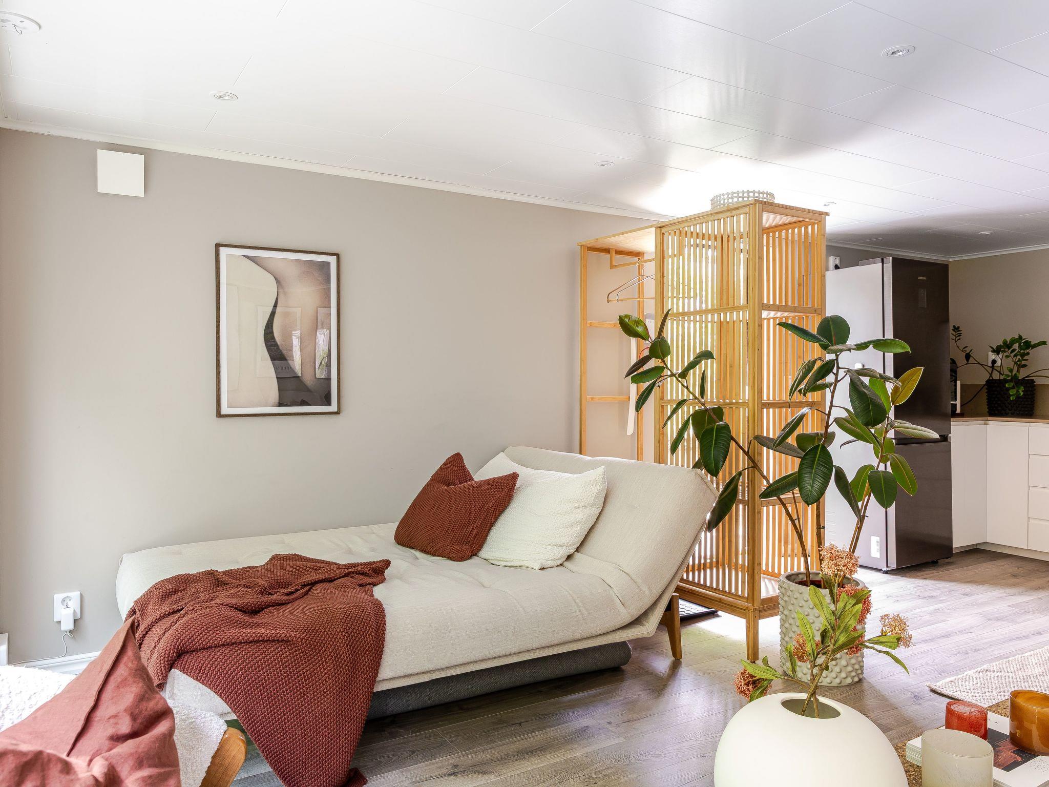 "Björkliden", 1-room apartment 32 m2. Object suitable for 2 adults + 2 children. Renovated in 2024, beautiful furnishings: living/sleeping room with 2 sofabeds and TV. Exit to the garden, to the terrace. Open kitchen (dishwasher, 4 induction hot plates, toaster, kettle, microwave, freezer, electric coffee machine) with dining table. Shower/WC. Heating. Facilities: washing machine, dryer, hair dryer. Internet (WiFi). Please note: non-smokers only. Smoke alarm, fire extinguisher.