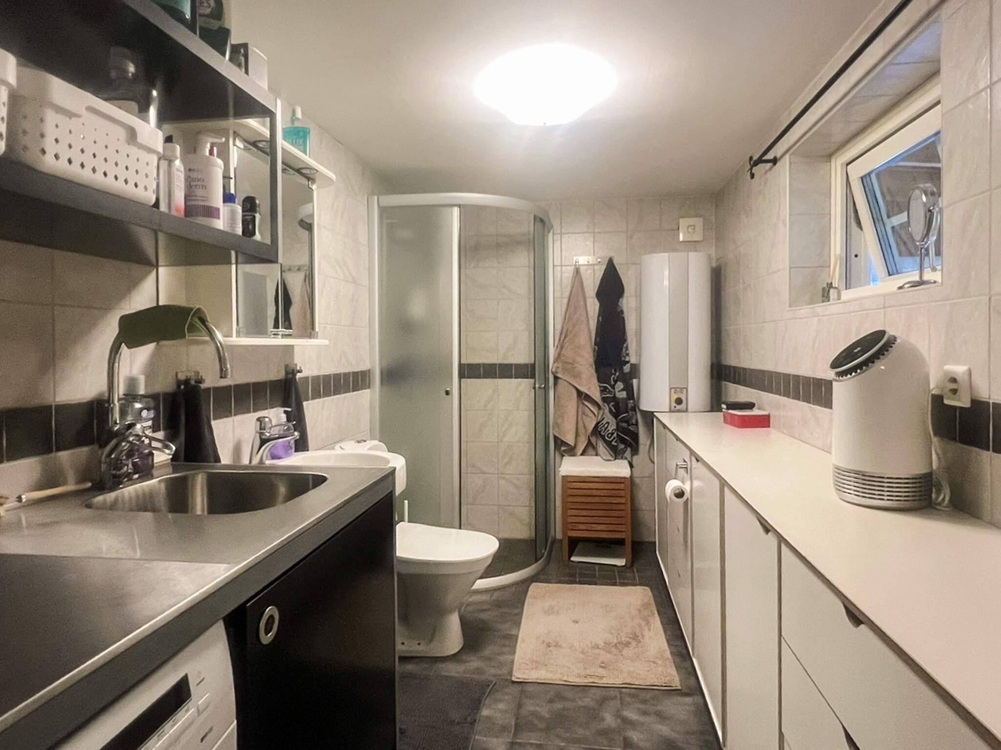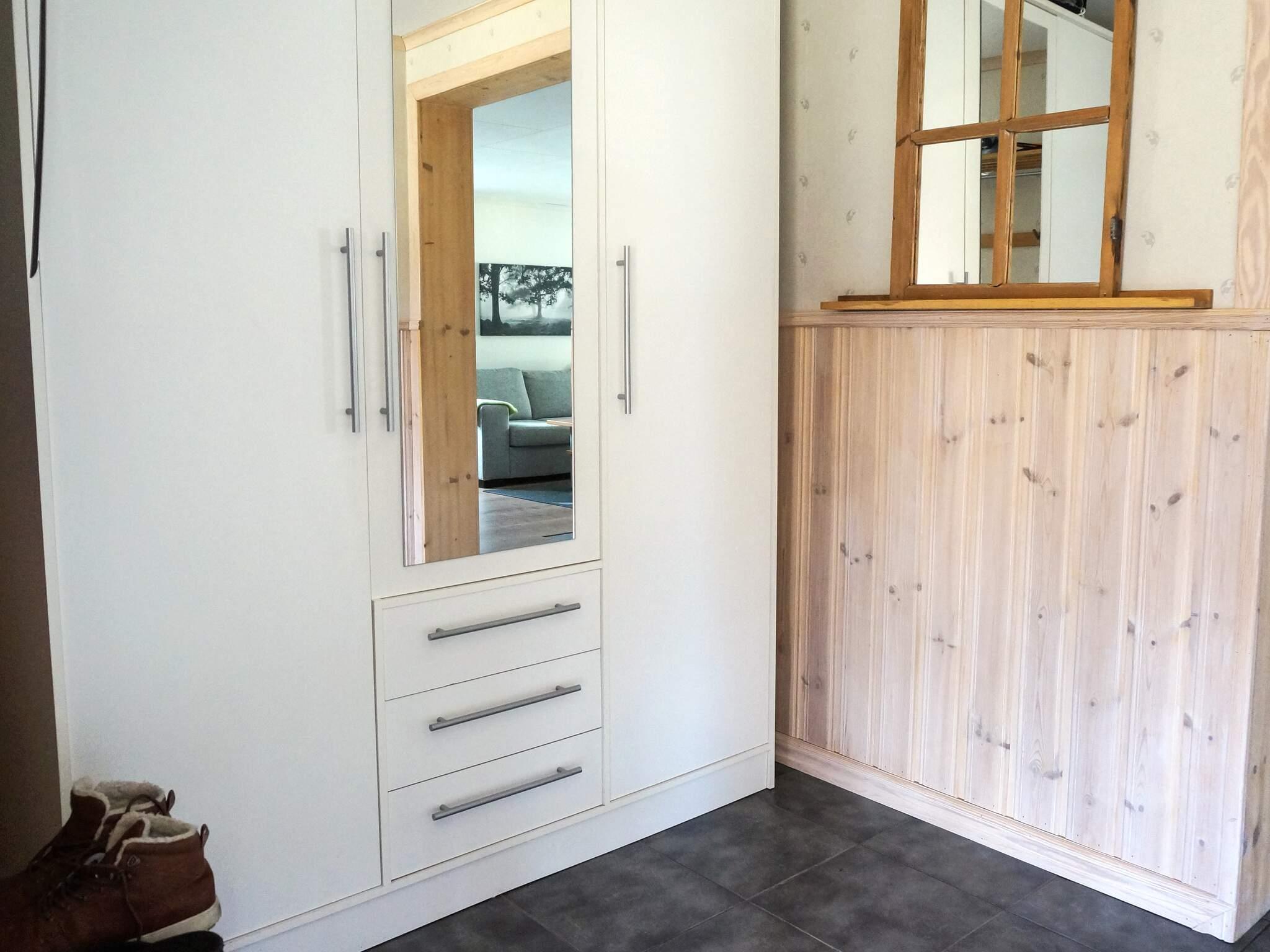 Die Küche wurde 2013 renoviert, wobei Herd, Mikrowelle, Kühlschrank, Gefrierschrank und der Geschirrspüler erneuert wurden. Das Badezimmer ist 2013 ebenfalls saniert worden und ist nun komplett gefliest und mit angenehmer Fußbodenheizung, Duschkabine, Waschbecken und WC ausgestattet. Im Haus zudem ein Schlafzimmer mit Doppelbett und Kleiderschrank. Großes Wohnzimmer mit Sitzecke vor dem Holzofen und einem Schlafbereich mit Doppelbett, der durch einen Vorhang abzutrennen ist. Außen 24 m² große, verglaste Veranda und eine Sonnenterrasse von ca. 16 m² Größe. Praktische Außendusche zum Abkühlen oder für eine kurze Dusche nach dem Bad im See.