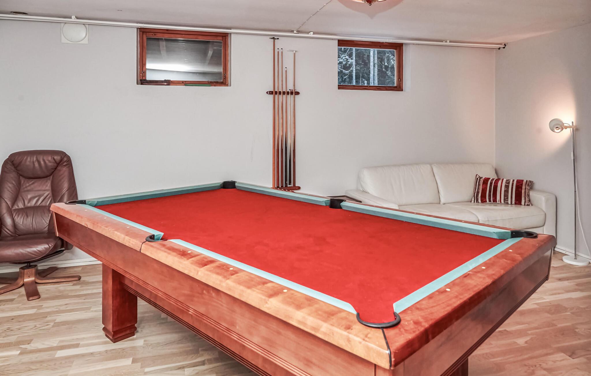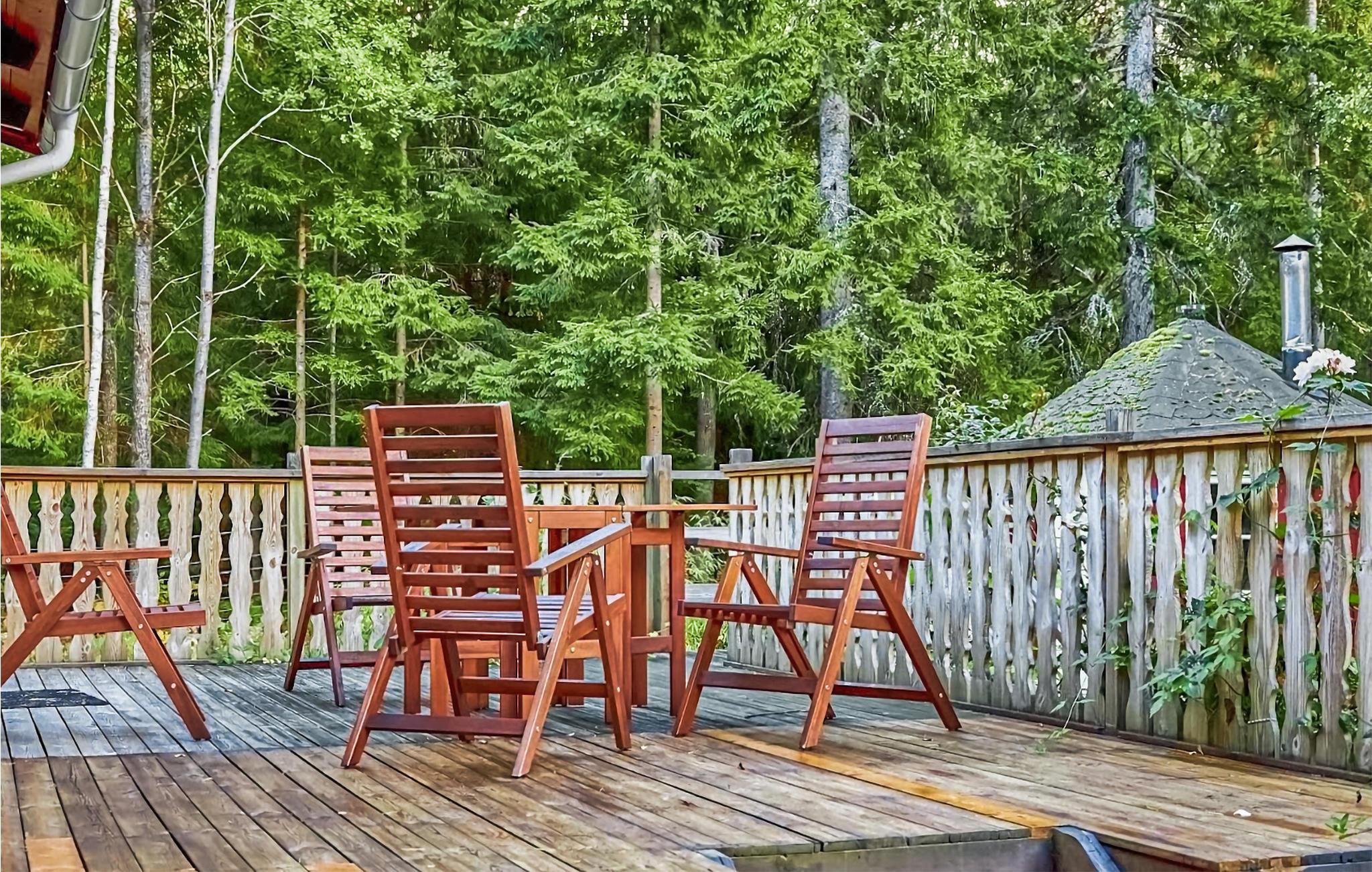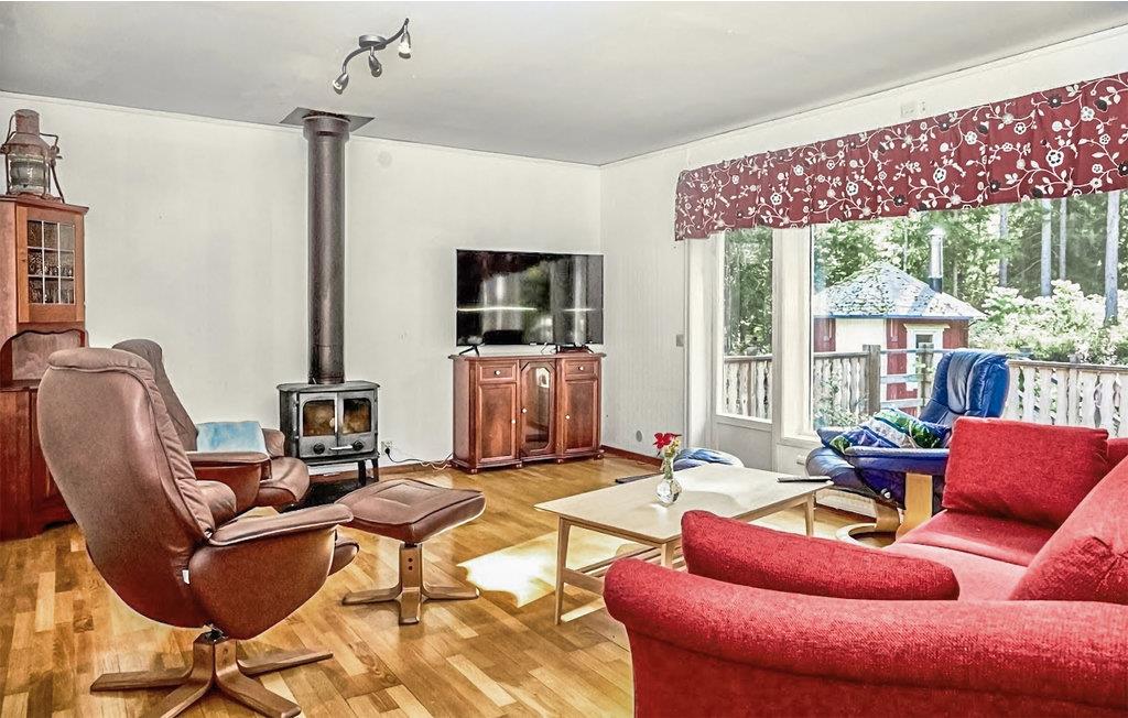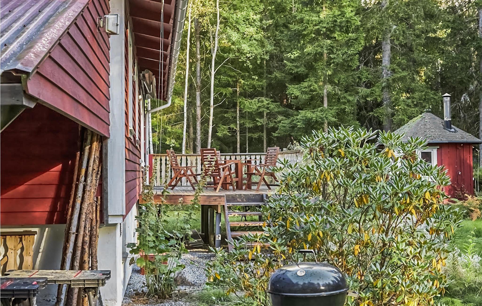 Dieses gemütliche Ferienhaus ist umgeben von einem friedlichen Wald. Sie können es sich im Haus bequem machen, den Kaminofen anfeuern und sich auf den Sesseln und Sofas einkuscheln. Vom Wohnzimmer haben Sie einen schönen Blick in den Wald, sodass Sie eventuell Waldtiere beobachten können. Sollten Sie Hunger verspüren oder Spielelust packen, können Sie diese Beschäftigungen im Haus nachgehen. Die schöne Sonnenterrasse gibt Ihnen zudem Möglichkeit im Freien zu essen und dabei die Sonne zu genießen. Wenn Sie sich wärmen oder Ihren Stress ausschwitzen wollen, können Sie Ihre private Hüttensauna nutzen. Während Sie in der Sauna sitzen können Sie durch die Fenster das Geschehen im Wald und Ihrem Garten beobachten.