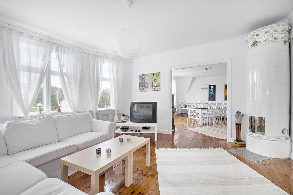 Renovated, spacious holiday home, situated on a road about 1 km outside the small village of Pauliström, in the middle of the nature of the Smaland highlands with many bathing and fishing lakes. The 1,300m2 garden invites you to linger. The stately rooms of the old village shop exude an elegant yet cosy ambience. Here you can enjoy your holiday. Whether in the south-facing living/dining room or in the north-facing kitchen, from where you can watch deer and hares in front of the forest. All rooms have beautiful tiled stoves.