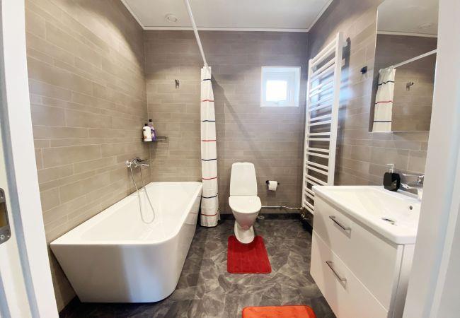 The house has two floors and is thoughtfully designed to meet all your needs. On the first floor, you will find a well-equipped kitchen and an open living room that creates a cozy atmosphere for socializing and communal meals. There is also a bathroom with a bathtub, where you can enjoy a relaxing soak, as well as a bedroom with a double bed. On the second floor, there are two cozy bedrooms, each equipped with a single bed, and a practical bathroom with a shower.