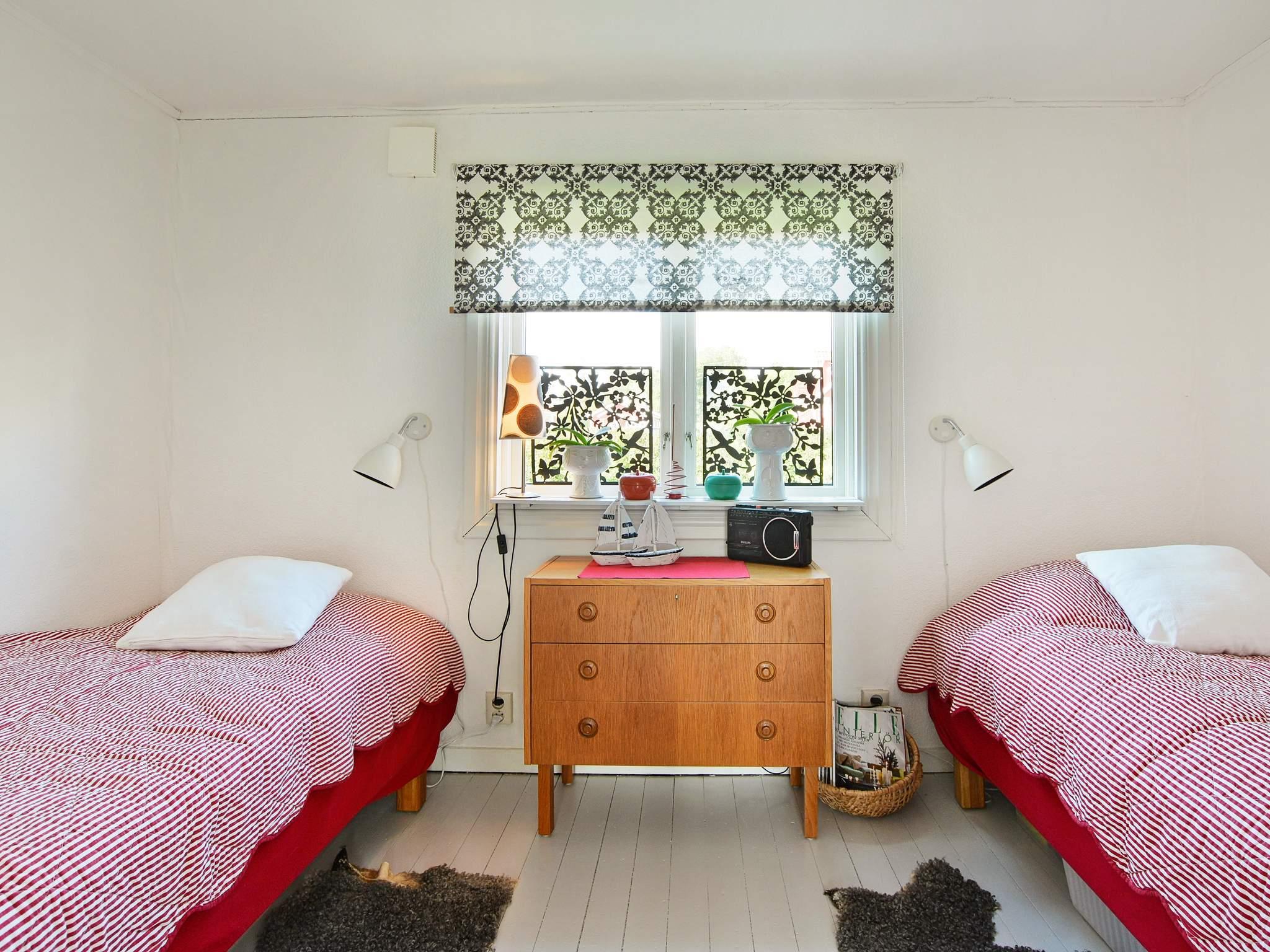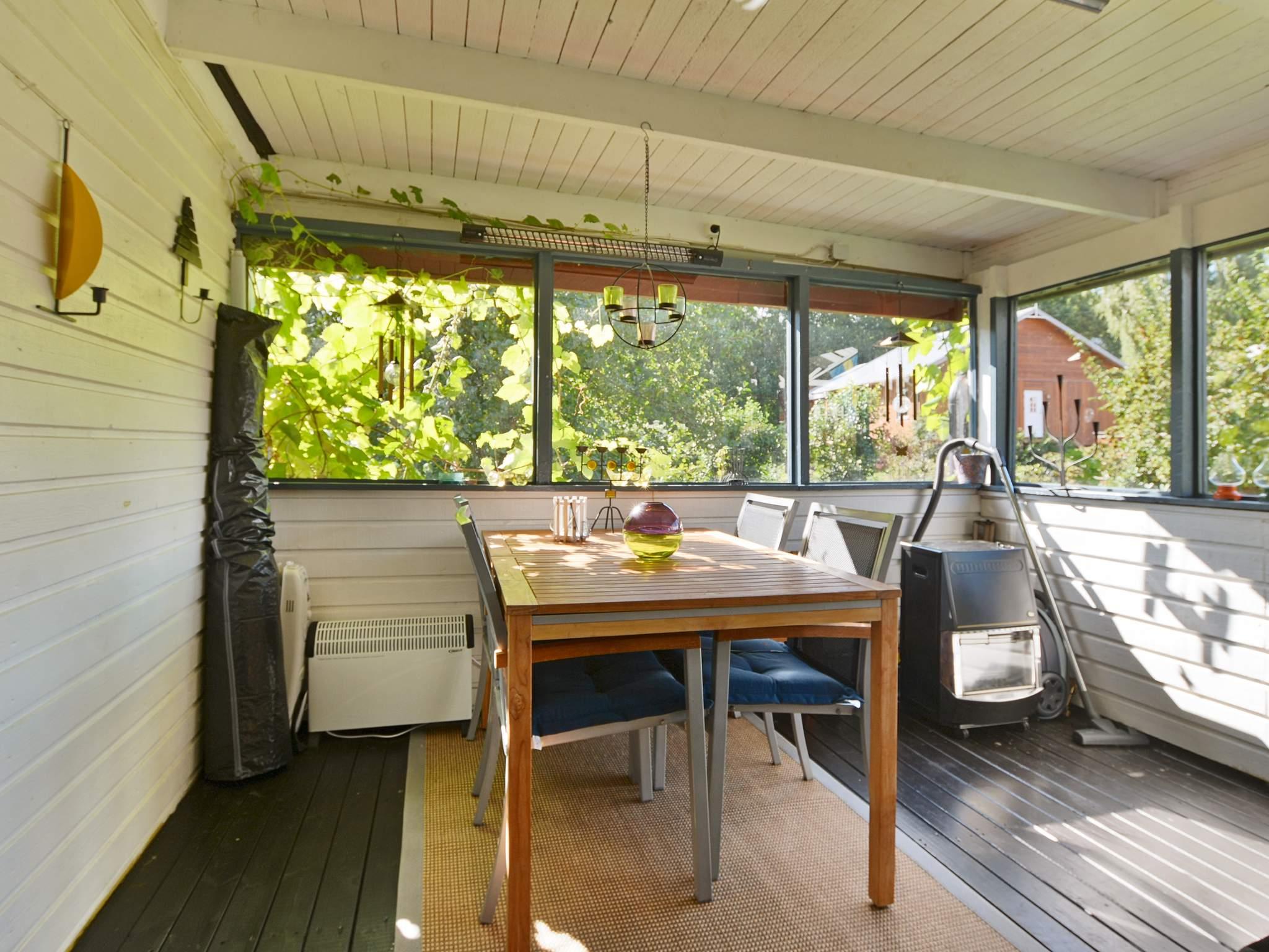 Die Küche ist gut ausgestattet mit sauberen und schönen Oberflächen und einem Essbereich, von dem aus Sie beim Essen das Meer sehen können. Das Wohnzimmer ist ein schöner Ort zum Verweilen und hier fühlt man sich ungestört und einladend, während der Bach direkt vor dem Fenster und der Tür das letzte Stück hinunter zum Meer schlängelt. Angrenzend an das Familienzimmer befindet sich auch ein frisches und schönes Badezimmer. Im Wohnzimmer gibt es außerdem ein Schlafsofa für zwei Personen. Das Schlafzimmer behält den gleichen guten Standard wie der Rest des Hauses. Schließlich haben wir noch den gemütlichen und einladenden Wintergarten, in dem man abends gerne sitzt, wenn es zu kühl ist, um draußen zu sein, sich aber trotzdem nicht wirklich ins Haus zurückziehen möchte. Wenn es im Wintergarten kühl ist, gibt es an der Decke eine Heizung, die Sie einschalten können.