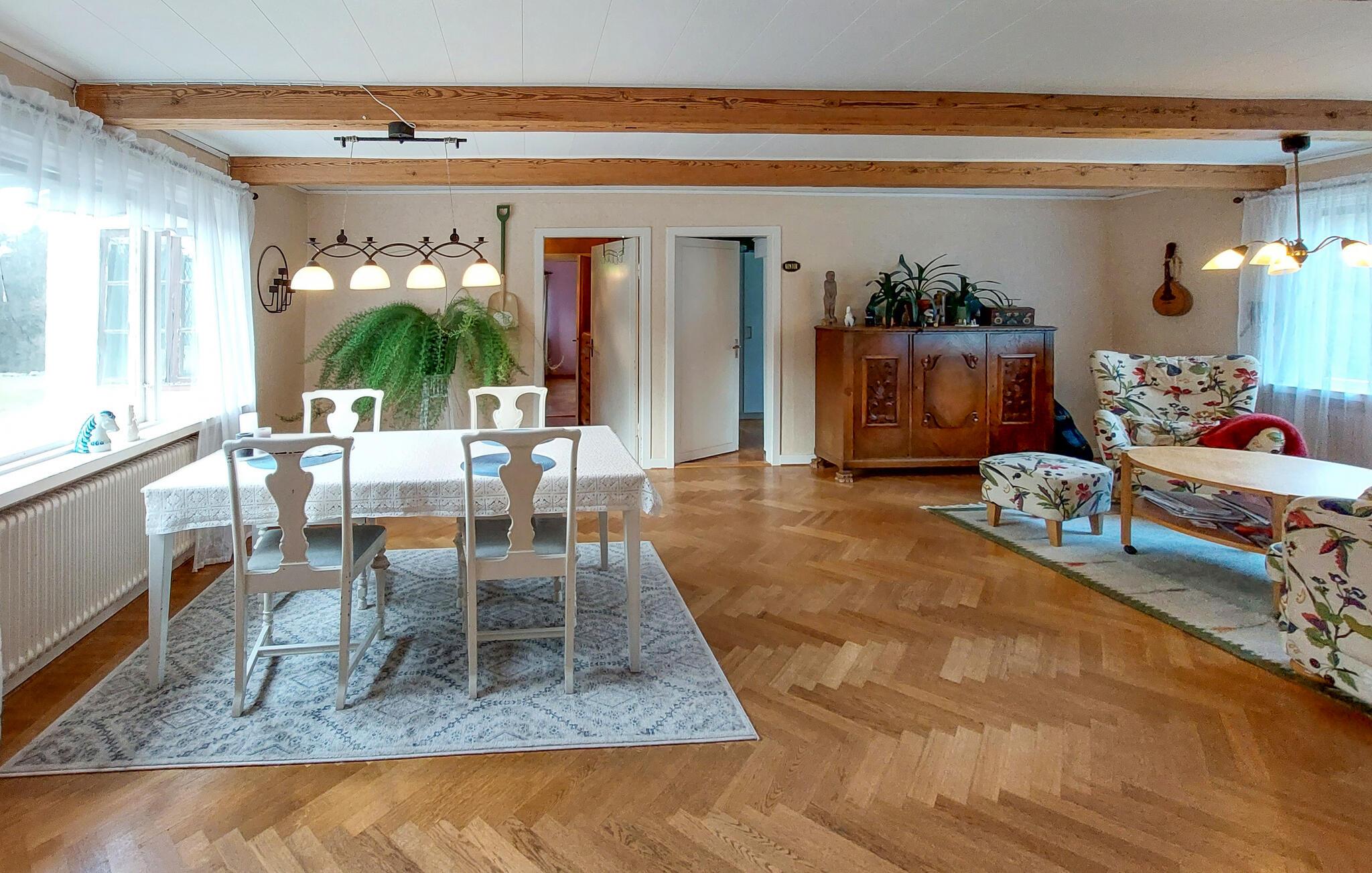 Sehnen Sie sich nach einem schönen Aktivurlaub in ländlicher Umgebung? Sind Sie vielleicht auch eine etwas größere Familie, die ein angenehmes Ferienhaus sucht? Dann schauen Sie sich dieses alte Bauernhaus in Änglarp genauer an. Das heimelige Haus aus dem Jahr 1890 bietet viele gemütliche Sitzecken zum geselligen Beisammensein und man spürt schon beim Betreten, dass die Räume mit viel Liebe eingerichtet sind. Beginnen Sie Ihren Urlaub mit einem leckeren gemeinsamen Frühstück in der Essküche und schmieden Pläne für den anstehenden Tag. Genießen Sie die Abende in einem der Wohnräume beim Kaffeetrinken und Musizieren oder plaudern bis spät in den Abend unter freiem Himmel auf der Terrasse. Auf dem Bauernhof gibt es Pferde und Schafe, die in der Umgebung grasen.