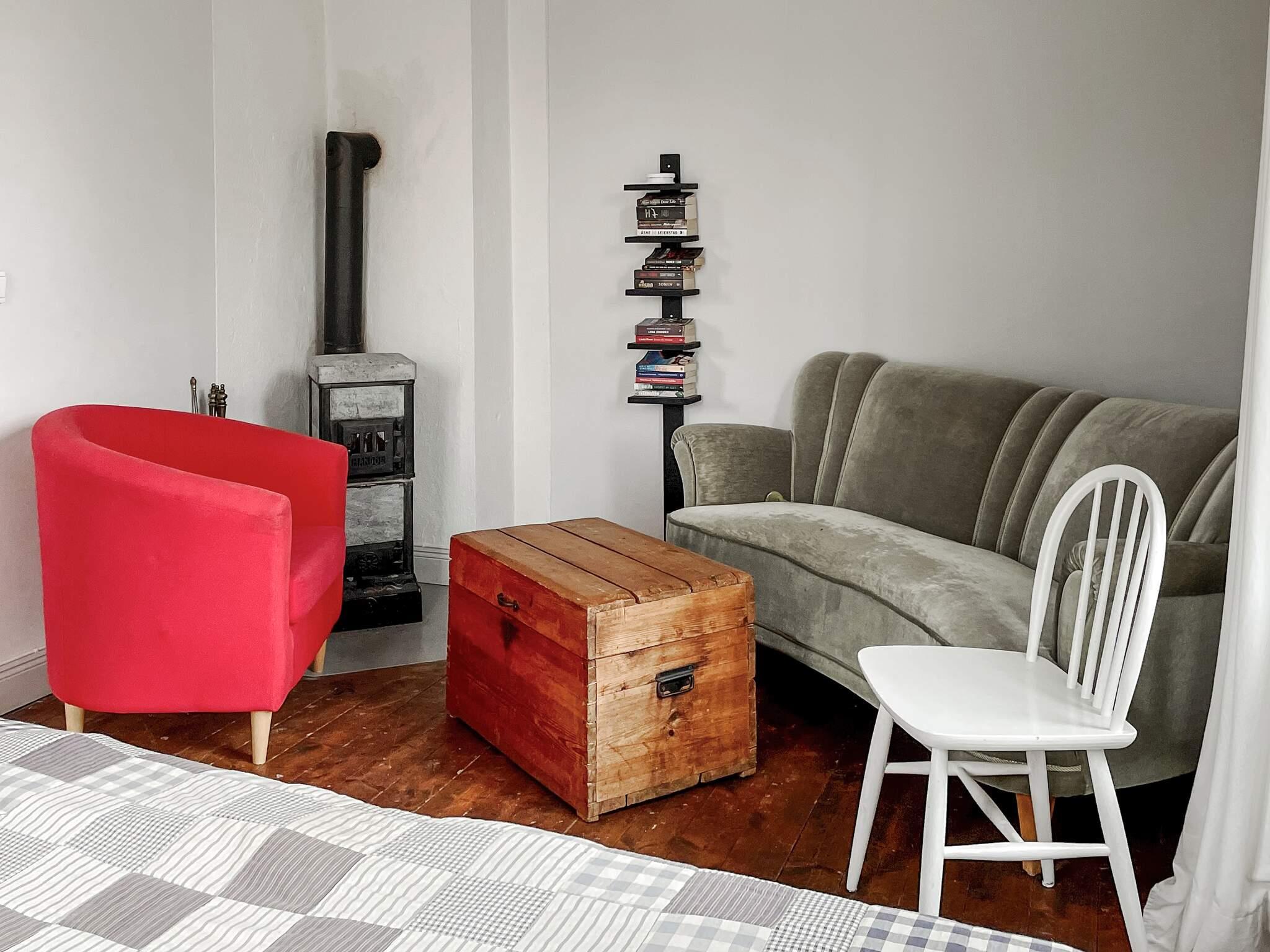 In dieser schönen Bauernhofumgebung finden Sie Ruhe und Entspannung und können der Stille und dem Vogelgezwitscher lauschen. Die Unterkunft ist Teil eines Bauernhofs. Sie verfügen über einen eigenen, separaten Garten mit Gartenmöbeln. Die Küche verfügt über einen schönen Essbereich und einen alten Holzofen, ansonsten ist sie mit allem Nötigen ausgestattet. Im Schlafzimmer gibt es einen Specksteinofen, dessen knisterndes Feuer zum Lesen und für Gespräche in einer gemütlichen Sitzecke einlädt, sowie zwei Einzelbetten, in denen Sie bequem schlafen können. Im zweiten Schlafzimmer laden zwei bequeme Sofas zum gemütlichen Beisammensein ein, eines davon ist ein Schlafsofa für zwei Personen. Ein Etagenbett steht ebenfalls zur Verfügung. Von diesem Schlafzimmer aus gelangen Sie in das große Badezimmer mit Dusche, WC und Waschbecken. Im Eingangsbereich befindet sich ein Gäste-WC mit Waschbecken.