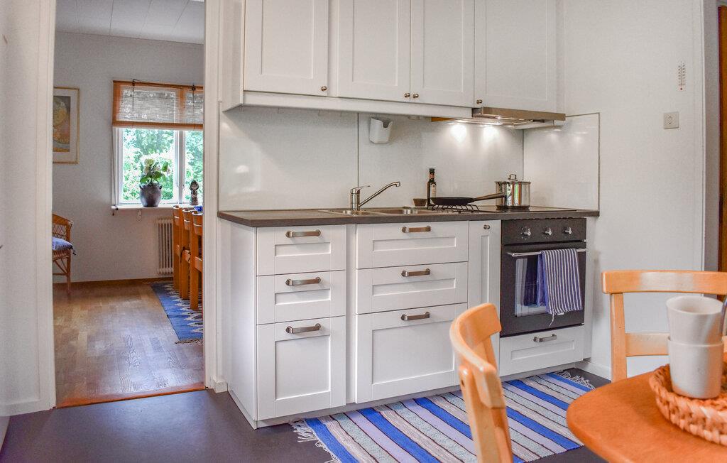 Das Ferienhaus liegt idyllisch auf der Halbinsel Kronoberg mit abwechslungsreicher Natur und reicher Kulturlandschaft. Nicht weniger als fünf Naturschutzgebiete, die zum Wandern, Radfahren, Schwimmen und Kanufahren einladen, sind mit dem Fahrrad oder zu Fuß zu erreichen. Die Wälder sind reich an Pilzen und Beeren. In Gehweite befindet sich auch ein größeres Badegebiet mit Minigolfplatz, Sprungturm, Restaurant und Eisdiele, aber auch die mittelalterliche Burgruine Kronoberg mit Café und Restaurant. Im nahe gelegenen Växjö können Sie einkaufen, Restaurants, Bars und ein Schwimmbad besuchen oder eine Partie Boule spielen. Nutzen Sie auch die Gelegenheit, um Glasriket zu erkunden oder den Elchpark in Kosta zu besuchen.