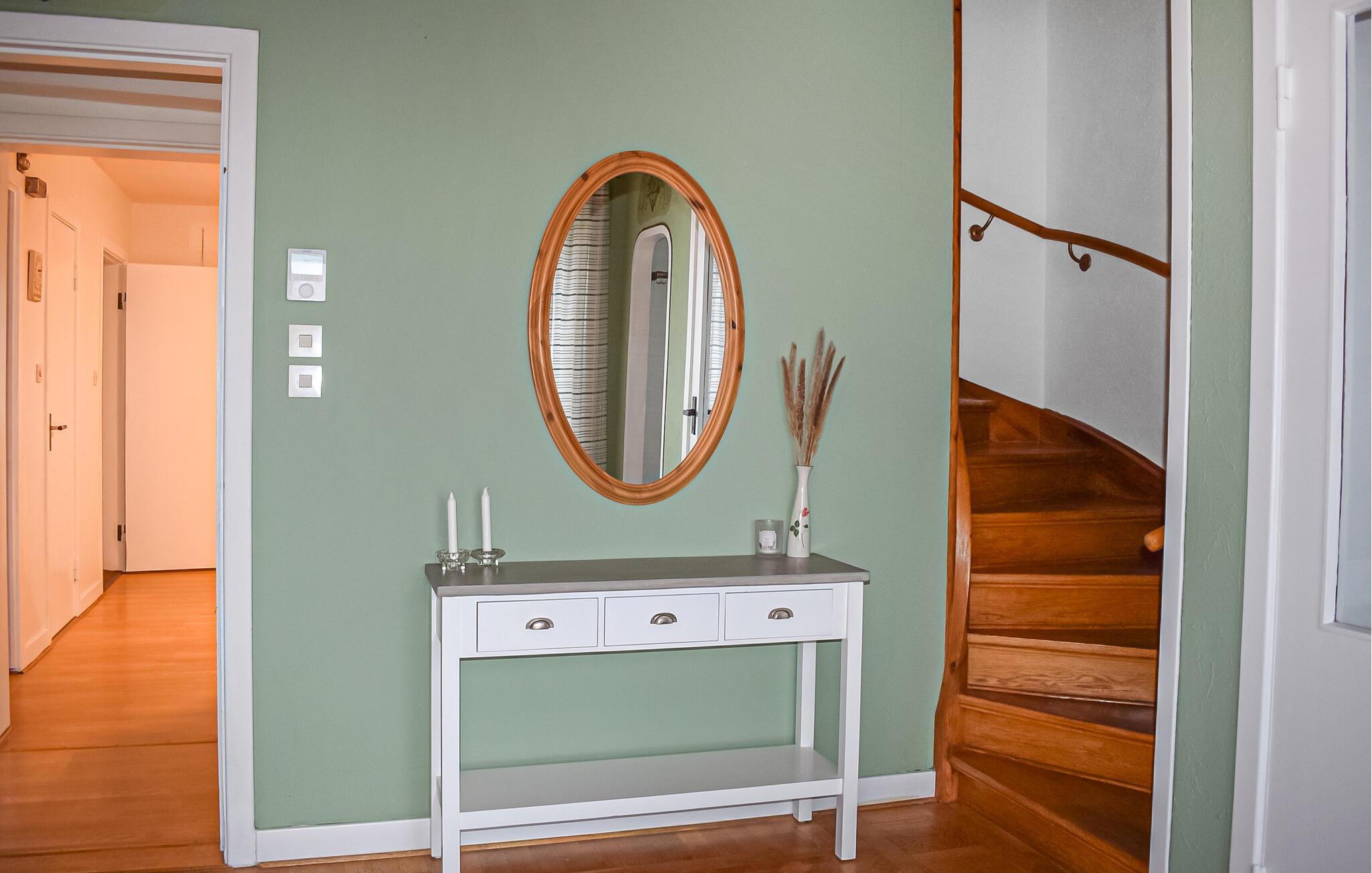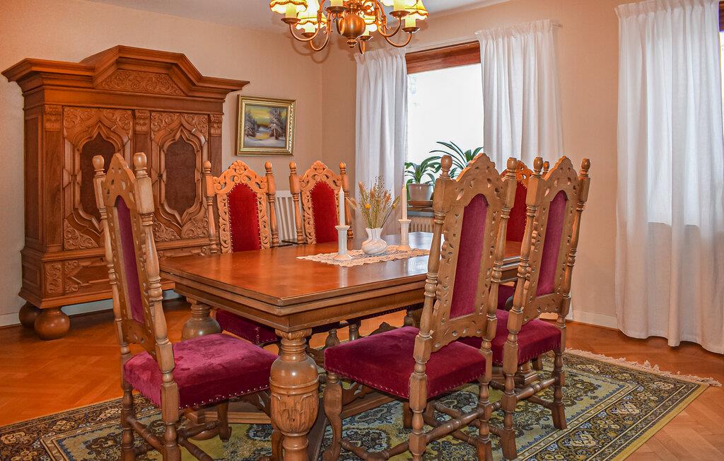 Dieses Haus empfängt Sie mit einer eleganten Atmosphäre, in der klassische Möbel und großzügige Räume ein Gefühl von Ruhe und Beständigkeit vermitteln. Genießen Sie hier entspannte Stunden beim Kaffeetrinken am Fenster, während das Tageslicht die Räume durchflutet. Verbringen Sie gemütliche Abende beim Filme schauen und zaubern Sie in der Küche gemeinsam köstliche Mahlzeiten für Familie und Freunde.