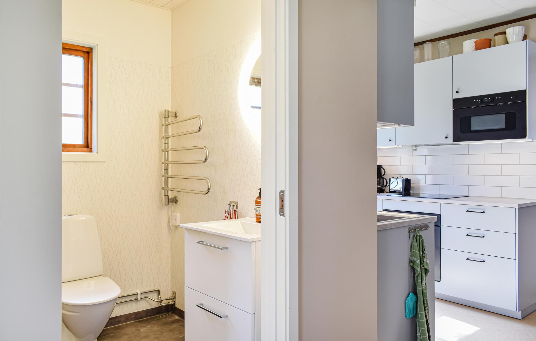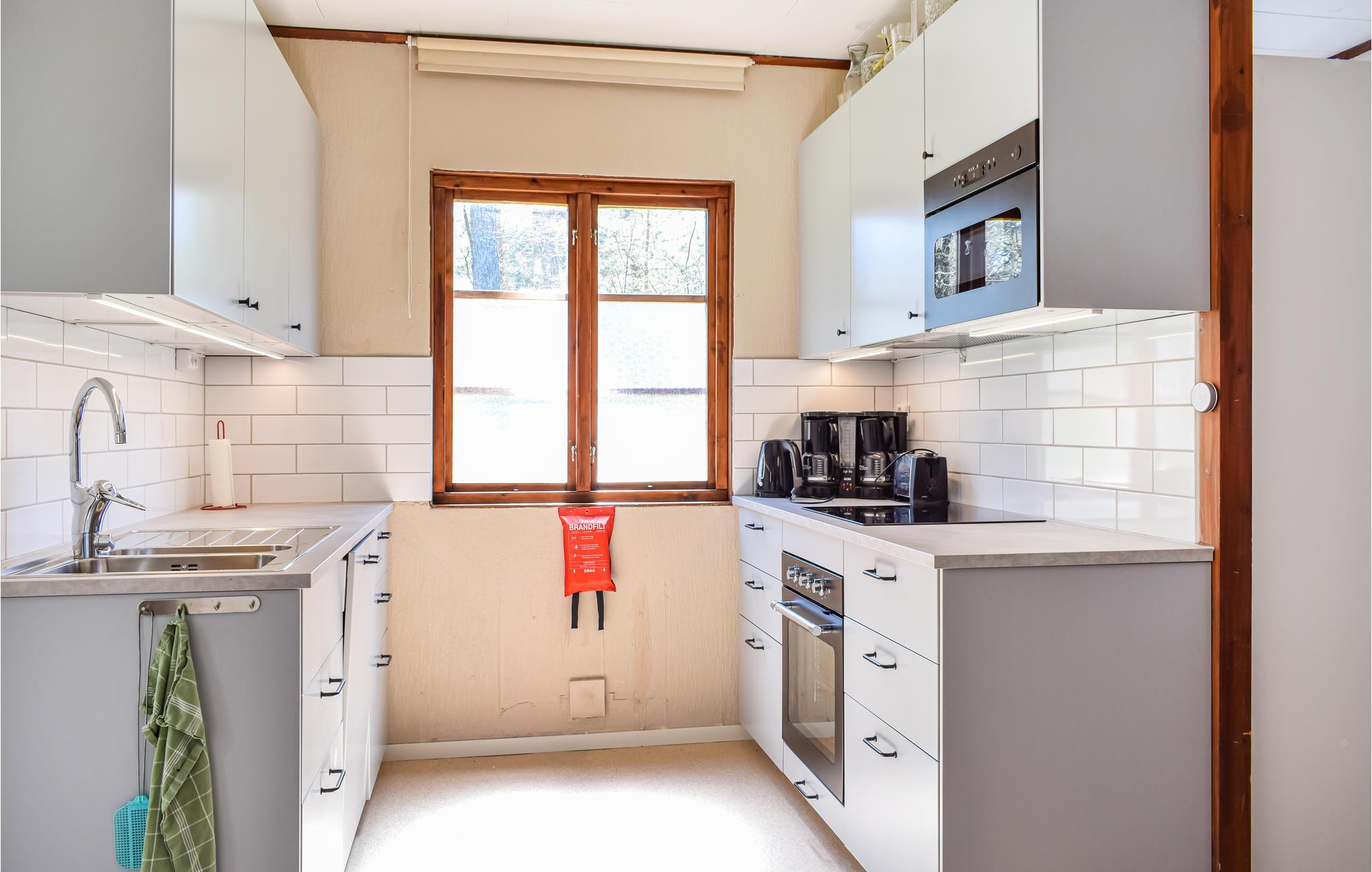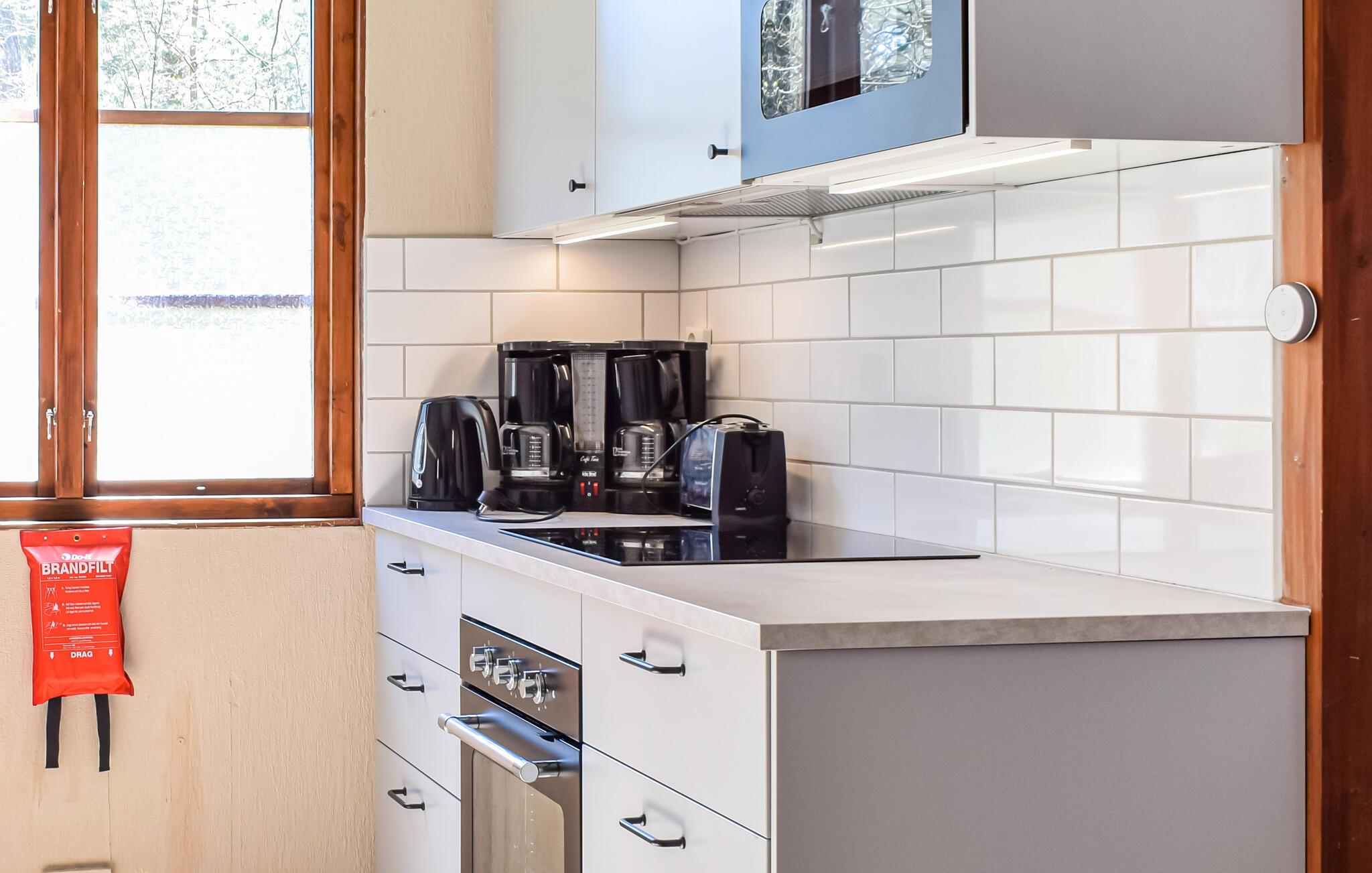 Im Haus finden Sie 2 Zimmer und eine Küchenzeile, 4 + 2 Betten - alles auf 80 m². Außerdem ein 1 kleines Schlafzimmer mit Doppelbett. Im Wohnzimmer gibt es 2 Einzelbetten + Schlafsofa für 2 Personen. Zur Unterhaltung gibt es einen Fernseher, allerdings kann der Empfang manchmal schlecht sein. Es gibt auch einen Kamin, den Sie an kühleren Tagen nutzen können. In der Kochnische finden Sie Herd, Backofen, Mikrowelle, Kühlschrank und einen kleinen Gefrierschrank. Dusche / Toilette.