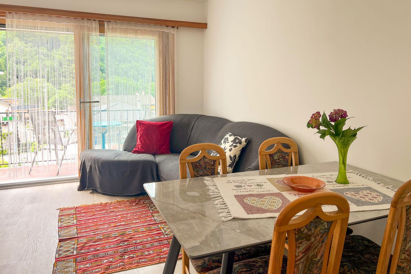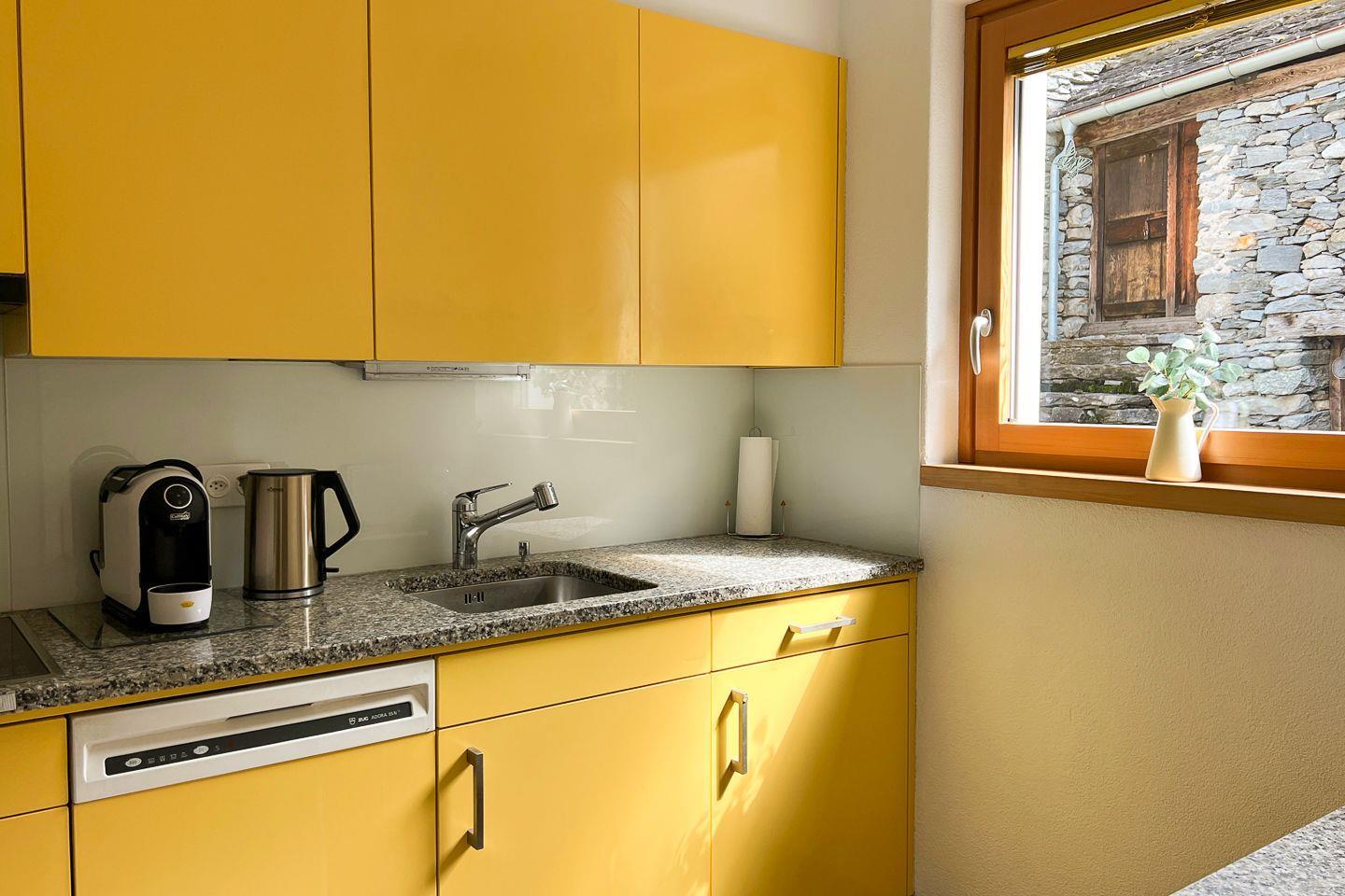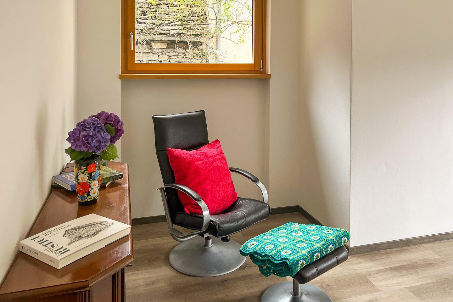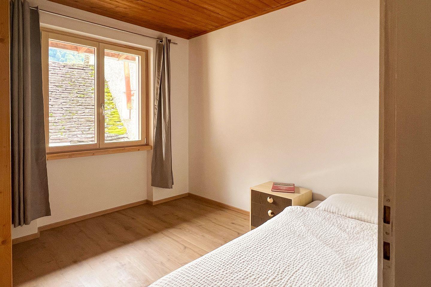 The house is nestled between traditional stone houses in the centre of the picturesque village of Cavergno in the Maggia Valley. It has been recently renovated and is an ideal starting point for hikes, nature walks and outdoor activities. Despite the modernisation, it has retained its original character and today combines traditional charm with contemporary comfort. New windows and insulated walls keep the summer heat outside and ensure a pleasant coolness inside. From the balcony you can enjoy a sweeping view over the valley and the surrounding mountains.