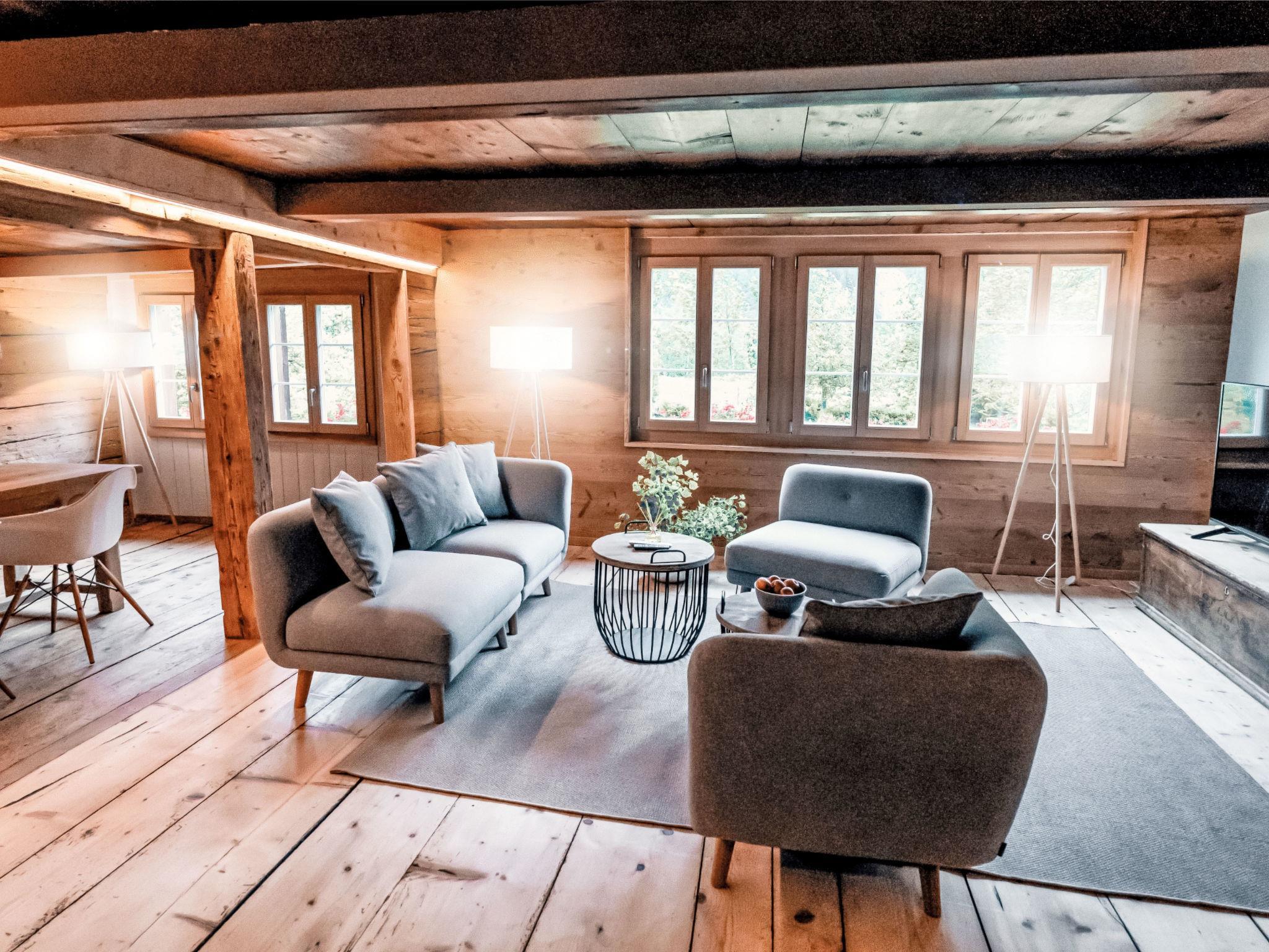 Innertkirchen 6 km from Meiringen: Historical farmhouse "Chalet Solegg", 880 m a.s.l., detached, built in 1760, renovated in 2024, surrounded by meadows and fields. Above Innertkirchen, in the hamlet Unterstock, in a quiet, sunny position on a slope, in the countryside. For shared use: large, well-kept garden, lawn for sunbathing. Terrace, garden furniture, barbecue. In the house: storage room for skis, central heating system. Steep, narrow motor access to the house (mountain road). 4x4 car recommended in winter. Parking at the house. Shop 4.5 km, grocery 4.5 km, supermarket 9.5 km, restaurant 4.5 km, bakery 4.5 km, bus stop "Lammi" 7.3 km, railway station "Innertkirchen" 4.5 km, outdoor swimming pool 9.5 km, indoor swimming pool 9.5 km, bathing lake "Brienzersee" 15 km. Riding stable 9.5 km, walking paths from the house 1 m, cable car 10 km, mountain railway 12 km. Nearby attractions: Aareschlucht, Grimselwelt, Freilichtmuseum Ballenberg. Well-known ski regions can easily be reached: Meiringen - Hasliberg. Well-known lakes can easily be reached: Brienzersee. Hiking paths: Urbachtal, Hasliberg, Rosenlaui. Please note: car recommended. The owner lives in the same residence.