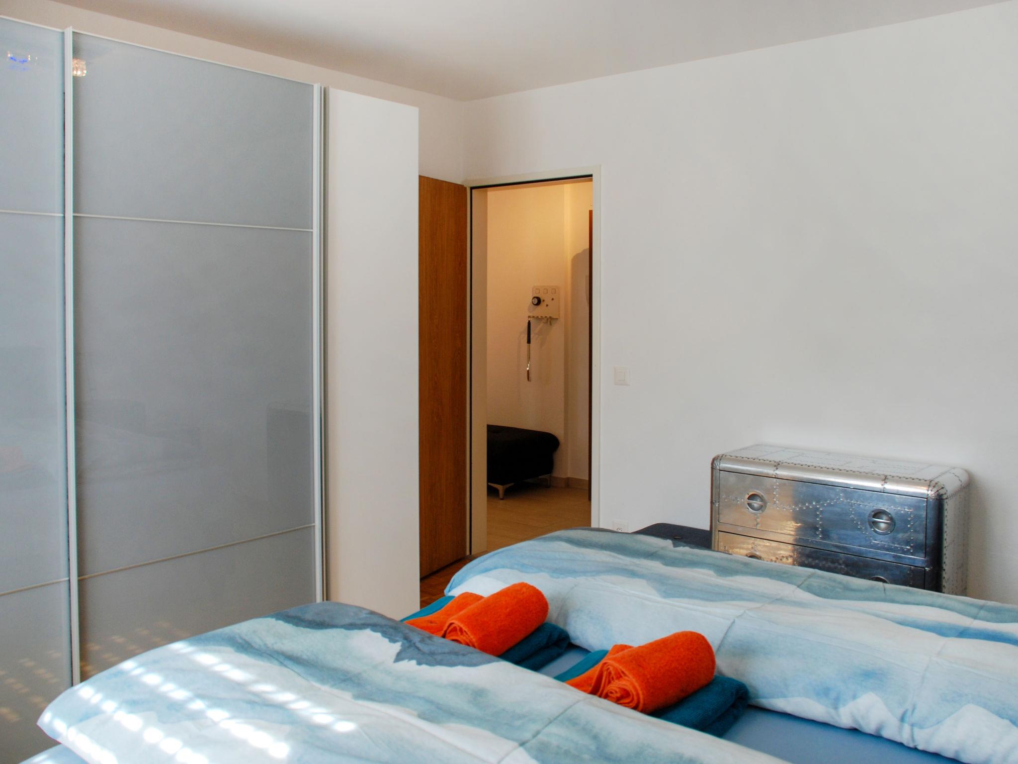 "Saleggi Apt. 20", 3-room apartment 78 m2 on 4th floor, south-west facing position. Spacious and bright, comfortable and modern furnishings: open large living/dining room with dining table and cable TV (flat screen), radio and CD-player. Exit to the balcony. 1 double bedroom with 1 double bed (2 x 90 cm, length 200 cm). 1 room with 1 double bed (2 x 90 cm, length 200 cm). Large, open kitchen (oven, dishwasher, 4 ceramic glass hob hotplates, toaster, kettle, electric coffee machine, Capsules for coffee machine (Delizio) extra, fondue Set (cheese)). Shower/WC. Large balcony 12 m2, south facing position and west facing position. Balcony furniture. Very beautiful panoramic view of the mountains and the countryside. Facilities: iron, children's high chair, baby cot for up to 3 year olds (extra), hair dryer. Internet (WiFi). Parking space n 22 (roofed) at the house. Please note: non-smokers only. Maximum 2 pets/ dogs allowed. Fire extinguisher. NL-00004318