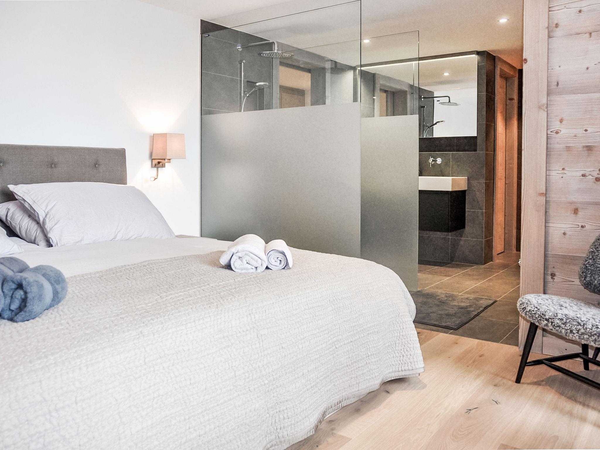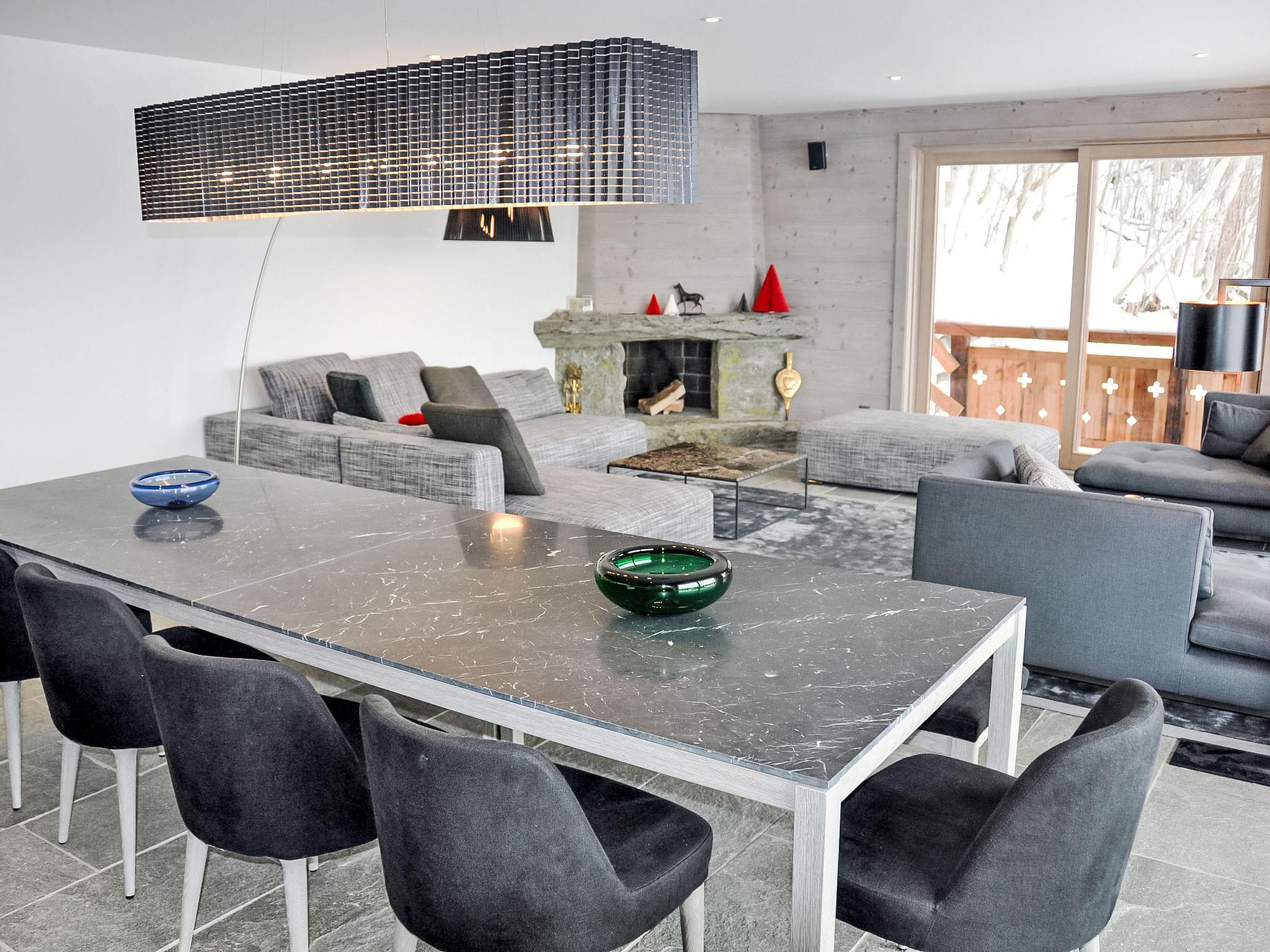 "Le Refuge 1", 6-room maisonette 200 m2 on 1st floor. Spacious, luxurious furnishings: large living/dining room with panoramic window north facing position and west facing position with open-hearth fireplace. Exit to the balcony. Large, open kitchen (oven, dishwasher, 6 induction hot plates, microwave, freezer, electric coffee machine, Capsules for coffee machine (Nespresso) extra, raclette grill, fondue Set (cheese)). On the lower ground floor: 1 large room with Dressing room with 1 french bed (200 cm, length 200 cm), separate WC, shower and double hand-basin. Exit to the terrace. Upper floor: entrance hall. 1 room with 1 french bed (180 cm, length 200 cm), bath/WC. Exit to the balcony, west facing position. 1 room with 1 french bed (180 cm, length 200 cm), shower/WC. 1 children's room with 2 x 2 bunk beds (90 cm, length 190 cm). Exit to the balcony, west facing position. Lounge with cable TV and DVD. Shower/WC, sep. WC. Large balcony, north facing position and west facing position. Beautiful view of the mountains and the resort. Facilities: washing machine, dryer, children's high chair, baby cot, hair dryer. Internet (WiFi, free). Garage (2 cars), height 220 cm, width 500 cm. E-charging station. Please note: suitable for families. Non-smokers only. 4 subscriptions for SPA Bisses during the stay are included in the rental price. This SPA is part of the 4 Valleys Mer de Glace complex. Facilities: 2 dishwashers.