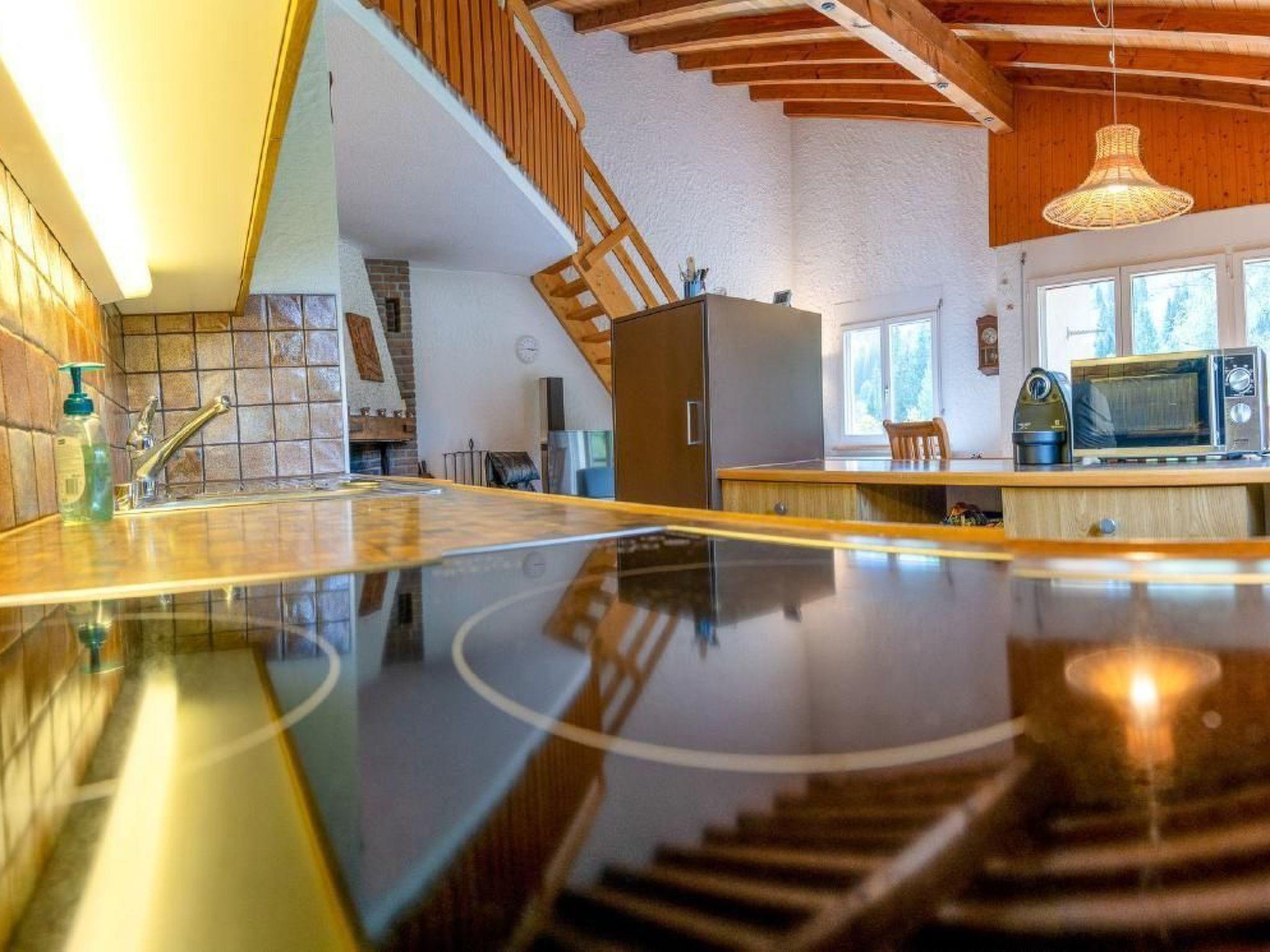 The interior of our flat spoils you with a spacious living room, enriched by an inviting fireplace, a comfortable kitchen with all the necessary appliances such as an oven, 4-burner hob, dishwasher, kettle, microwave, large fridge and a Nespresso coffee machine. You will find everything you need to cook raclette, fondue and bourguignon together. The double room offers peace and quiet, while the attic room on an open gallery with 4 beds is particularly popular with children. A modern bathroom completes the interior.