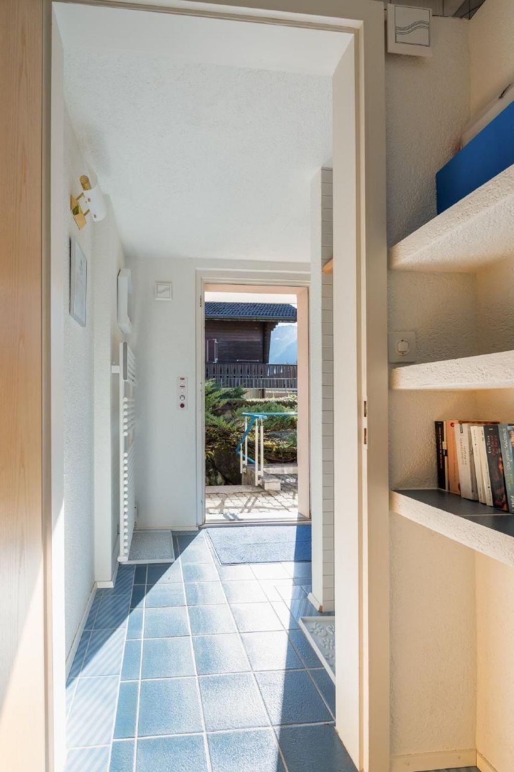 Outside, a large garden seating area, which extends across the entire width of the house, invites you to linger. Here you can enjoy the sun and relax at the end of the day. The flat also has a covered and an open parking space and shares a ski/bike room with the flat on the upper floor, which is particularly practical for active holidaymakers.