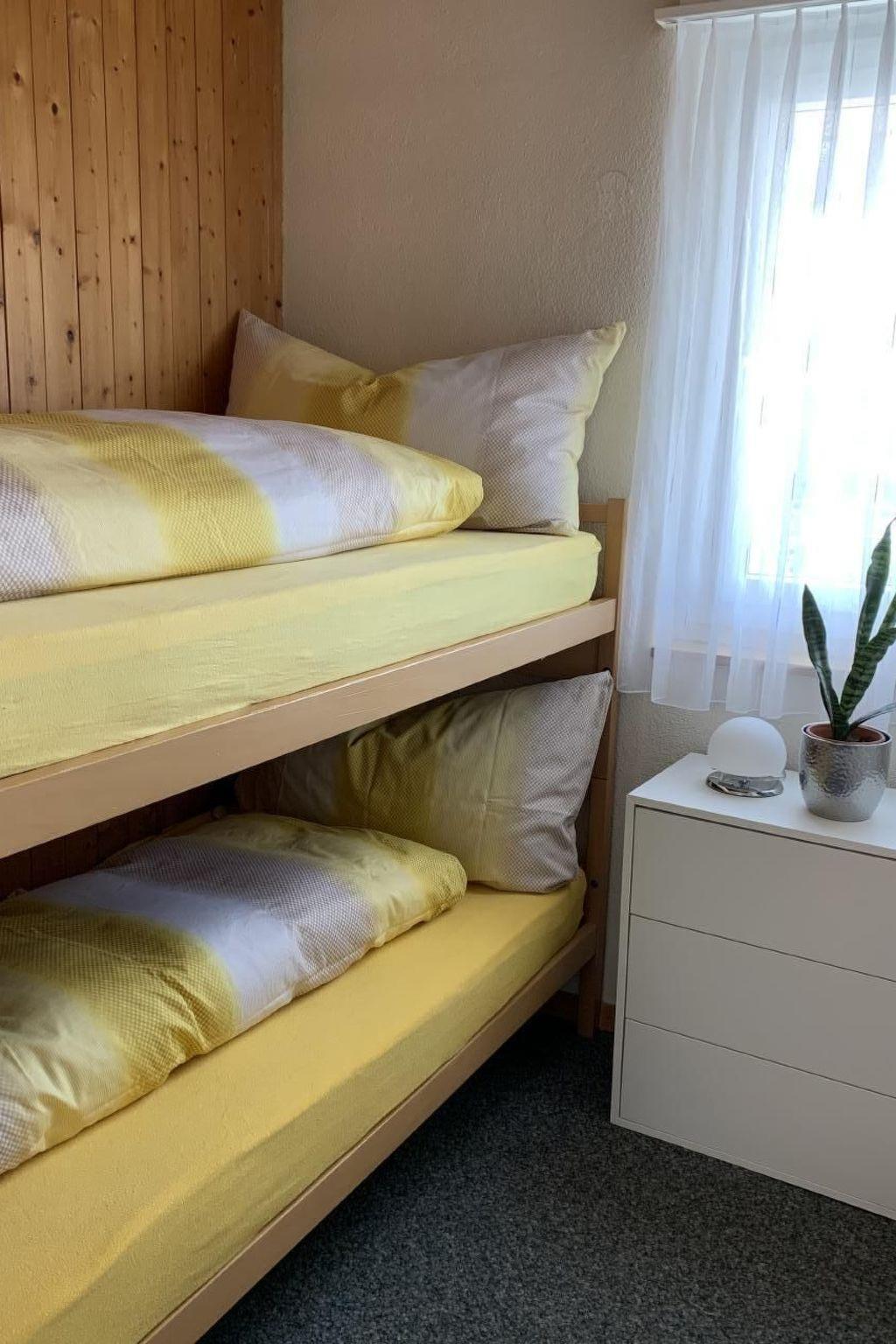 Our house, which comprises two holiday flats, is situated in a sunny and quiet location on the edge of the village of Sörenberg. Both flats are simple but well-kept and classified with 2 stars. This larger flat has three bedrooms, a cosy living/dining area and a separate kitchen and can accommodate up to 5 people. The two smaller bedrooms have folding doors. The entire house is ideal for two families of friends who want to spend their holidays together.