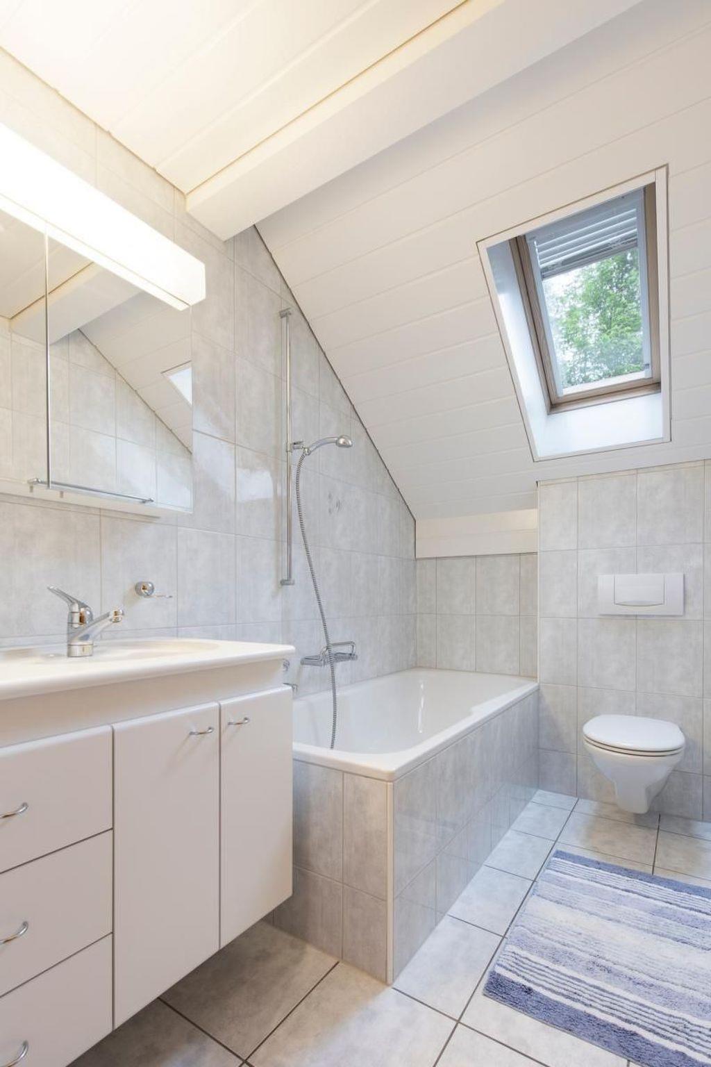 Inside, you will find a spacious, light-flooded living-dining room with an open-plan kitchen and a cosy Swedish stove for cosy evenings. The flat is spread over two floors in the attic of a two-family house and is equipped with two bathrooms (one with bath/WC/sink, the other with shower/WC/sink). For your comfort, there are two double rooms (one with a double bed, one with bunk beds) and two further beds, one of which is 160 cm wide, in an upper attic.