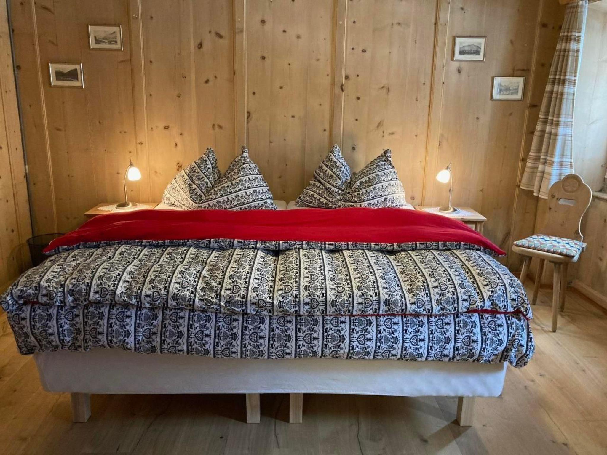 A fully equipped kitchen awaits you in the flat, leaving nothing to be desired: from a fridge with freezer compartment to a ceramic hob, an oven, various coffee machines - including Nespresso, filter coffee and a sieve coffee pot - to a fondue and raclette service and a blender. For your comfort, the WC/shower is equipped with underfloor heating, while free Internet WLAN access and wooden floors in all rooms create a cosy atmosphere. The bedroom, made of Swiss stone pine, has two box-spring beds, a built-in buffet and TV; the second bedroom has two single beds and a built-in wardrobe. Bed linen, towelling and towels are provided.