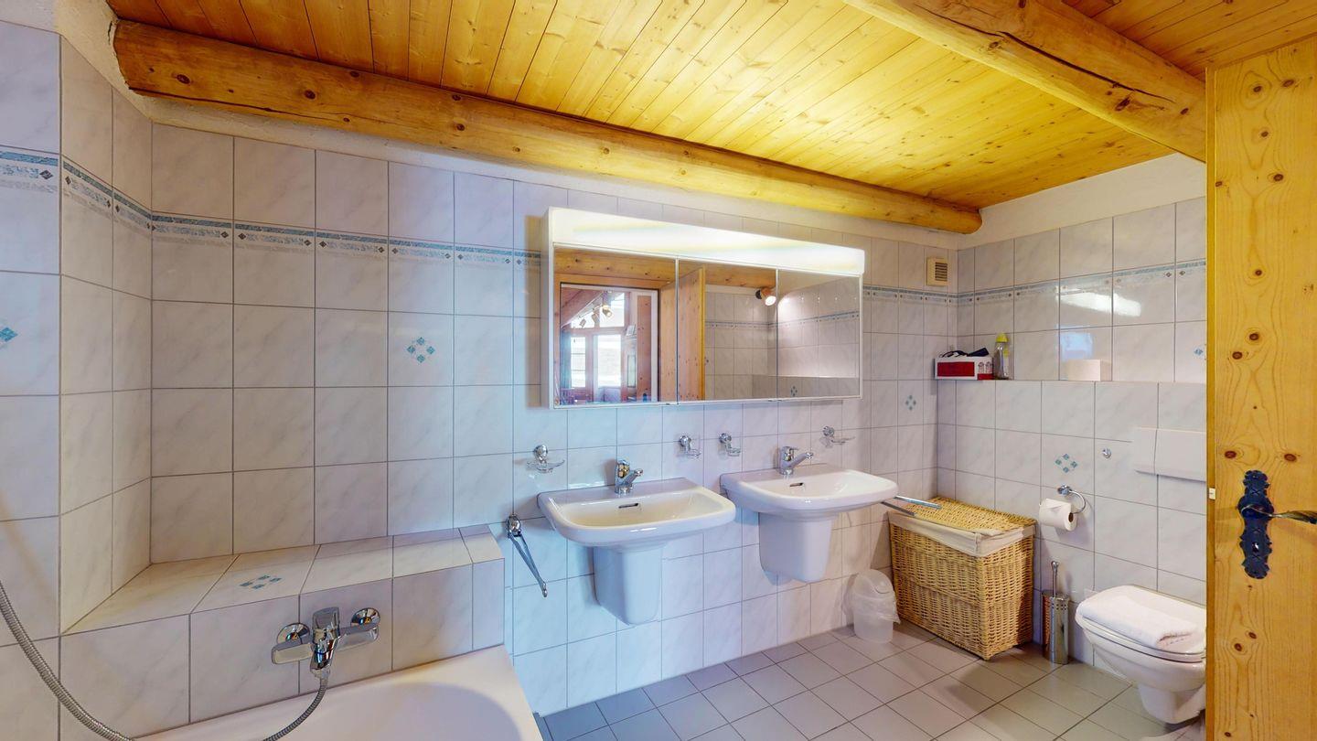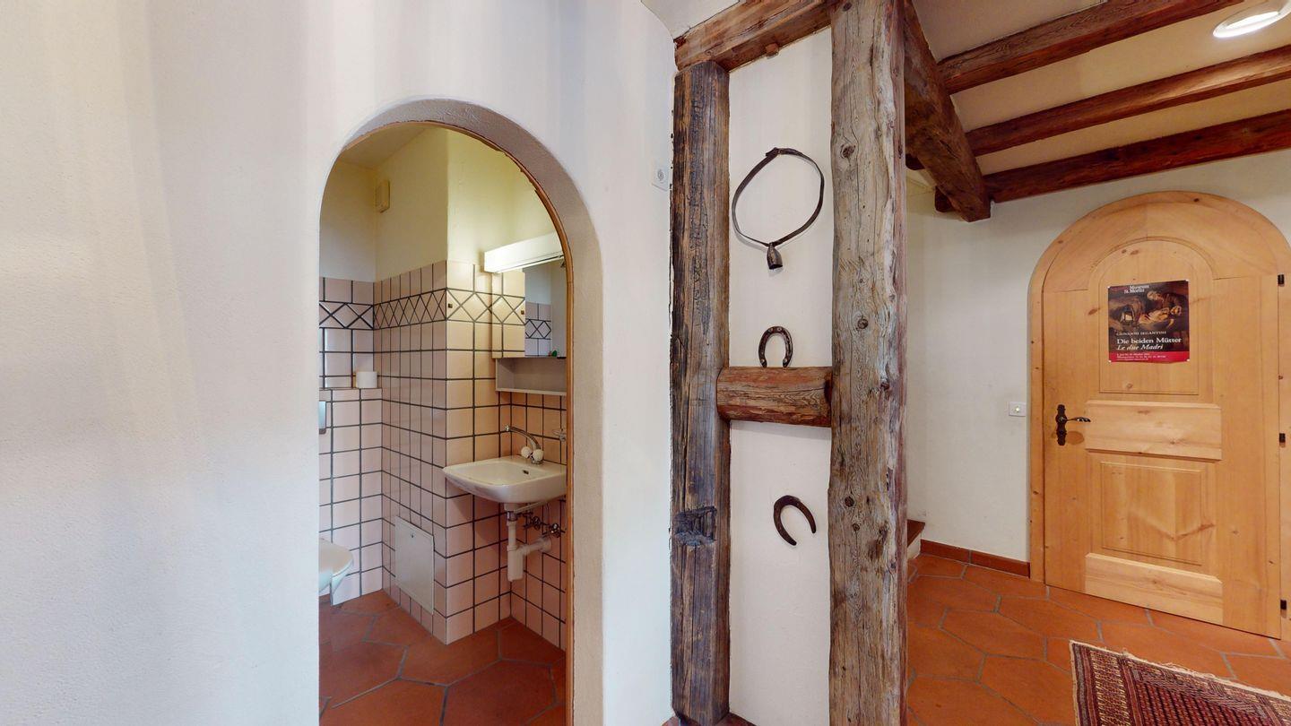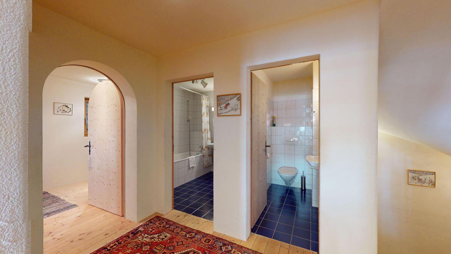 Grosszügiger Hausteil in direkter Nähe zum Bahnhof, mit vier Schlafzimmern, auf vier Etagen verteilt. Eingang mit Garderobe. Grosses Wohnzimmer mit Essbereich, Sitzecke, Kamin. Offene Küche mit Vorratsraum. Internet. Kein Fernseher. Gäste-WC. Ein Doppelschlafzimmer und ein Kinderschlafzimmer mit zwei Einzelbetten. Badezimmer mit Wanne und Doppelwaschbecken. Separate Toilette. Auf der obersten Etage zwei weitere Doppelschlafzimmer, eines mit eigenem Bad mit Wanne, WC, Bidet und Doppelwaschbecken. Separate Toilette. Eigene Waschküche mit Tumbler. Ein Parkplatz in der Garage und ein ausserhalb.
