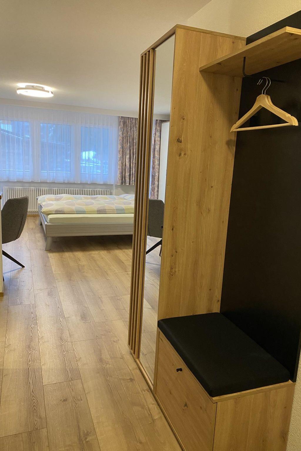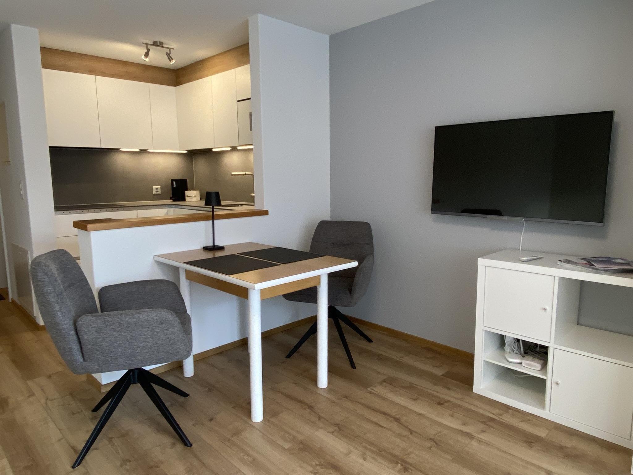 Modern Studio with Sunny Balcony & Parking This stylish studio apartment was completely renovated in 2025 and is located on the first floor of a well-maintained apartment building. It features a sunny south-facing balcony, perfect for relaxing. The apartment offers a modern open-plan kitchen with a dishwasher, microwave with grill function and a coffee machine. A comfortable double bed sleeps up to two guests. Amenities include free Wi-Fi, Swisscom TV, a hairdryer and a modern bathroom with shower/WC. This is a non-smoking apartment. A private parking space is available directly at the building. Ideal for couples or solo travelers looking for a comfortable and quiet stay.
