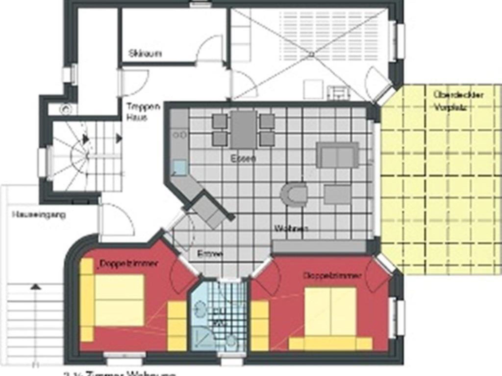 The modern and tastefull furnished 3,5 room appartment (70 m2) has 2 doublerooms, 1 living room, kitchen, shower/toilet. On the ground floor there is a storage area for ski equipment. A covered terrasse on the south side. Private parking space next to the house.