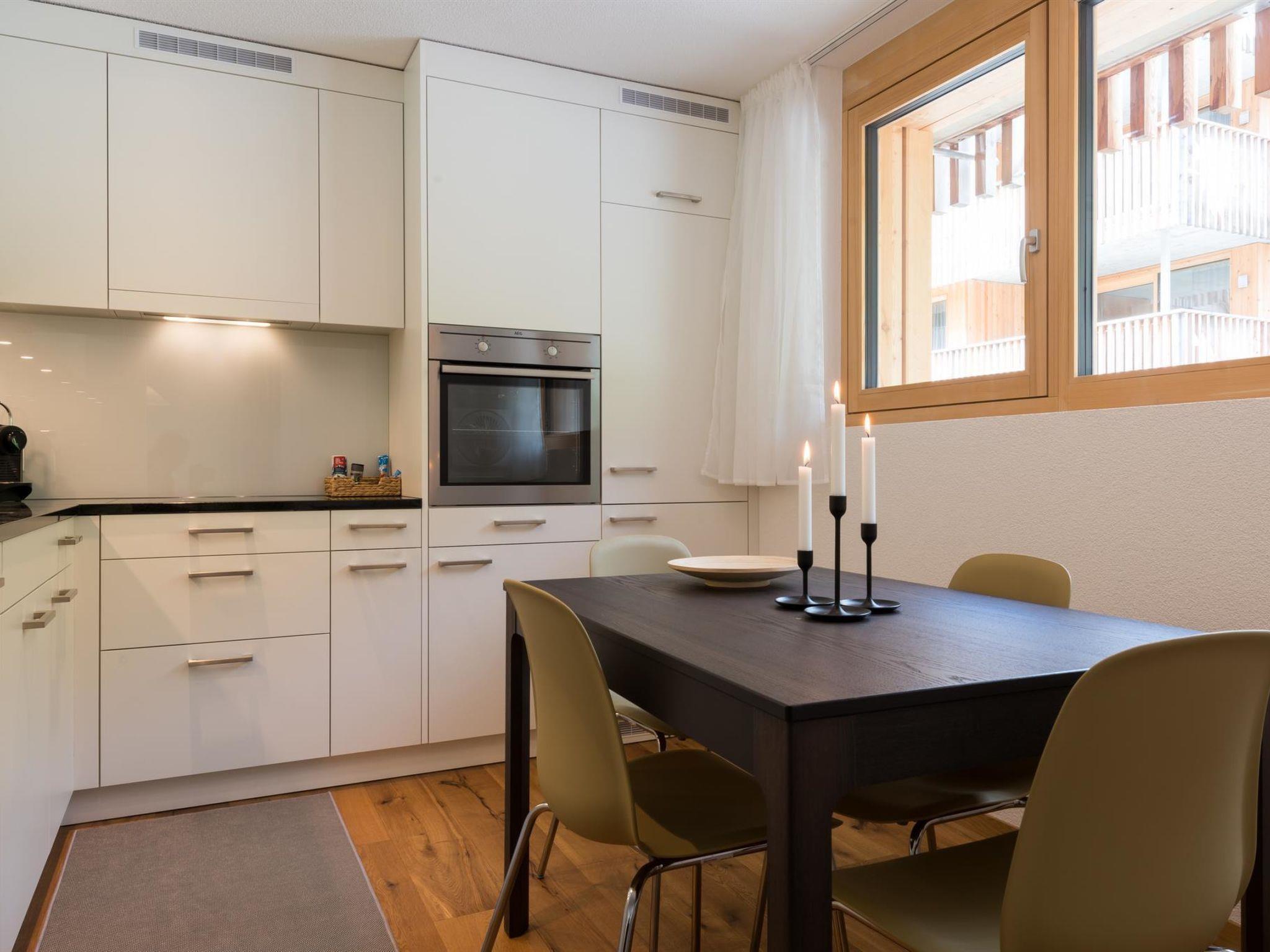 The price includes all utilities (electricity, water, heating), parking, internet and reception service as well as final cleaning and bed linen and towels. This is what awaits you as a Montela Holiday Stay guest: Free cancellation up to 14 days Check-in from 4.00 pm, check-out by 9.00 am (late Check-Out on request in the low season) Breakfast & bread roll service optionally bookable (subject to charge) Self-service in the Montela Shop (subject to charge) Kitchen essentials & water included on arrival (one-off) Room cleaning on request (subject to charge) Final cleaning included Bed linen & towels included once per stay Optionally bookable: Fine meat and cheese fondues directly at your accommodation. Enjoy a delicious Fondue Chinoise or Glacier Fondue with fresh, high-quality meat from the local butcher's (CHF 49.- per person). Or a fine cheese fondue (CHF 39.- per 2 persons) from the regional cheese dairy and fresh farmhouse bread from our own bakery. Just ask us! Exclusive and to be paid on spot: Tourist tax summer (01.06. - 31.10.): CHF 7.- for adults/night, CHF 3.50 for children (6 - 15.99 years). Visitor's tax winter (01.11. -31.05.): CHF 4.50 for adults/night, CHF 2.25 for children (6 - 15.99 years). Surcharge for dogs: CHF 10/night. Cot, cot linen and high chair available on request (free of charge).