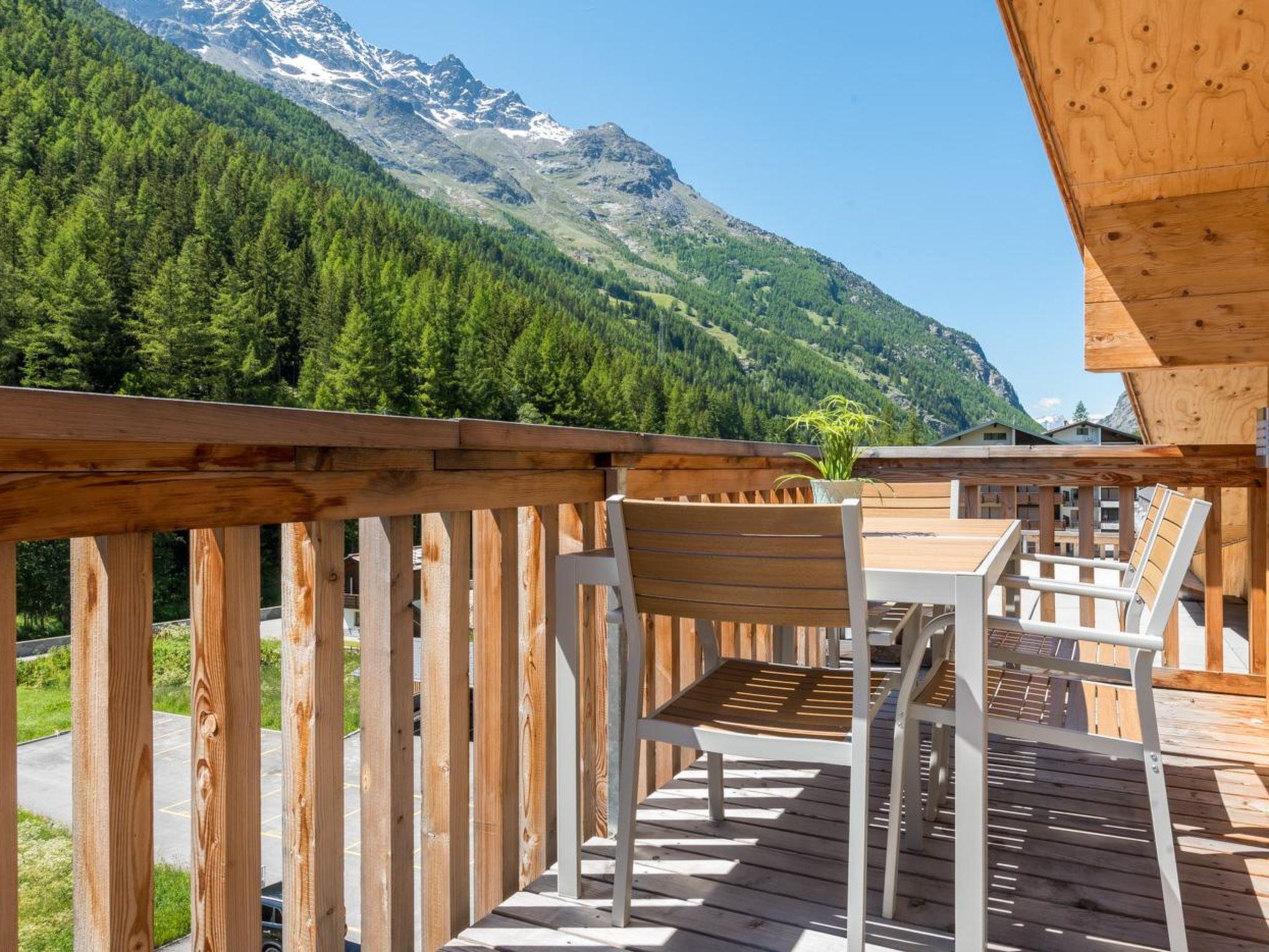 101 m2. More information by the provider: Montela Holiday Stay - Your apartment for flexible holidays in Saas-Grund Spend carefree days in one of our modern and stylishly furnished apartments for 2 to 7 people - with a balcony or outdoor seating area in the heart of Saas-Grund. Ideal for independent guests who want to combine the comfort of a holiday apartment with optional services. The apartments are part of the Montela Apartment-Hotel & Resort and are quietly and centrally located. The bus stop "unter dem Berg" is right next to the holiday resort and the valley station of the Hohsaas cable cars is about 5 minutes' walk away. The apartments are particularly suitable for guests who appreciate comfort and extra service and are looking for a relaxing holiday in Saas-Grund. On request, our Montela Holiday Stay guests can benefit from our unique and exclusive catering offer with delivery directly to your door! We deliver a balanced & regional breakfast or delicious meat and cheese specialities for you to prepare yourself directly in your accommodation and you can make yourself comfortable within your own four walls. Just ask us! Enjoy carefree holidays in summer and winter on the Saas hiking and biking trails or on the nearby ski and cross-country ski trails in the Saas-Fee/Saas Valley holiday region. There is 1 free parking space per flat in front of the accommodation. Dogs welcome on request.