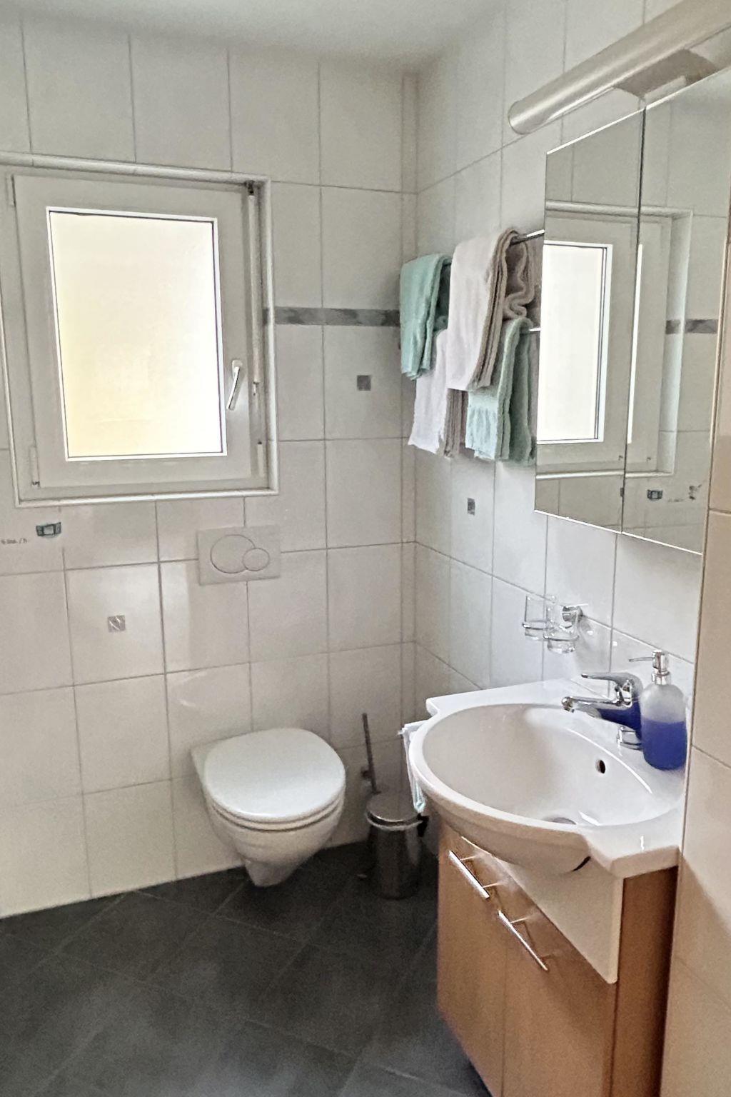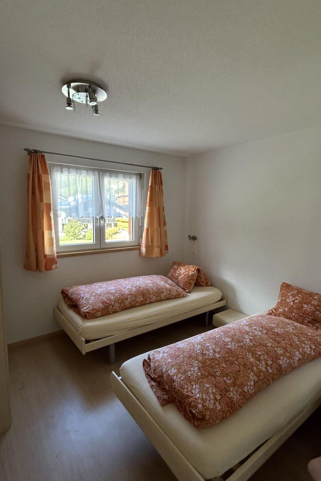 3-room apartment on the first floor of the Alpenstern holiday home. Large and bright living and dining area and modern kitchen with dishwasher, electric kettle and coffee maker. Living room with satellite TV, hi-fi system and DSL Internet connection. Two large and bright double rooms, bathroom with modern shower, WC and washstand. Large west-facing balcony