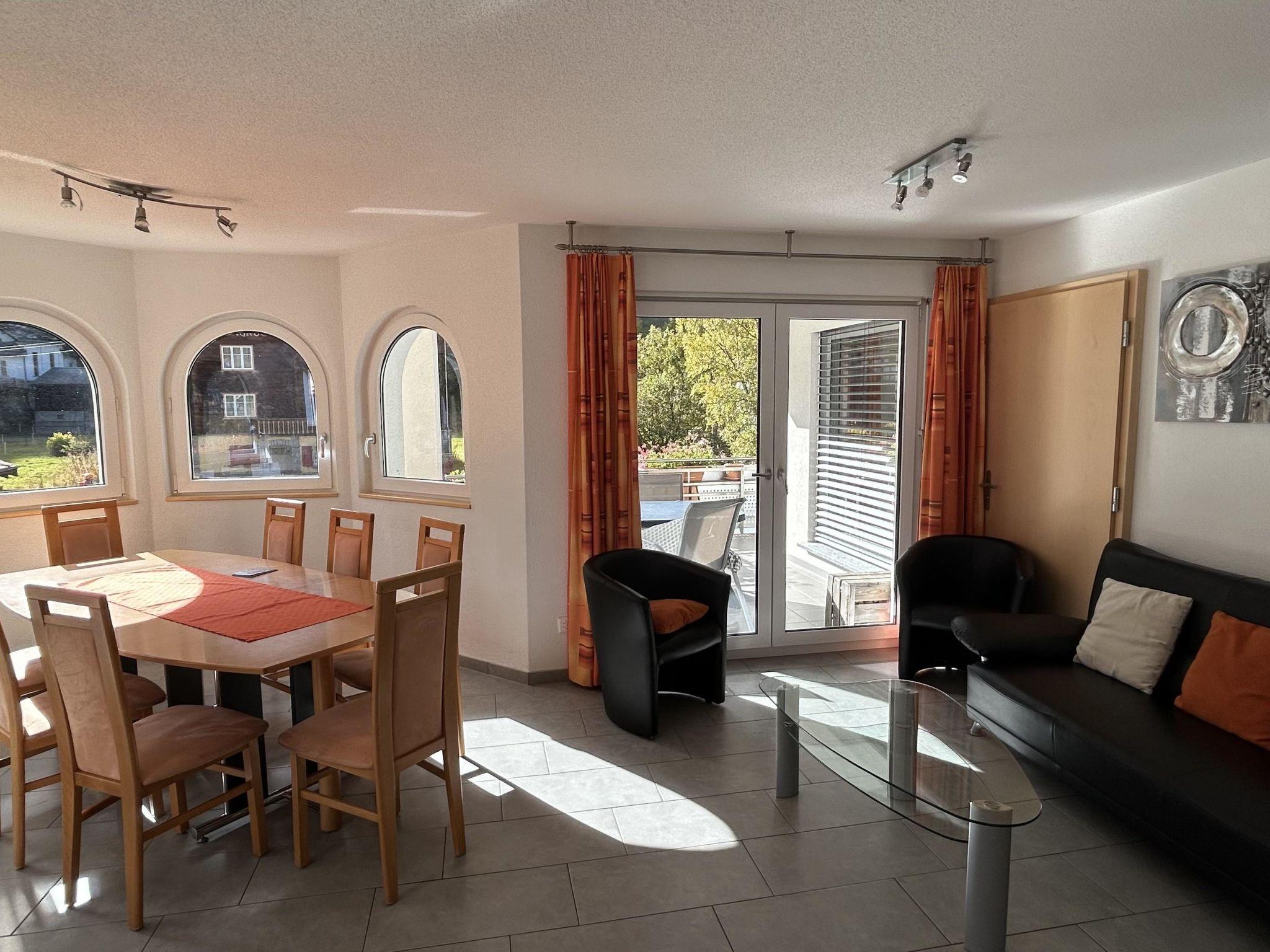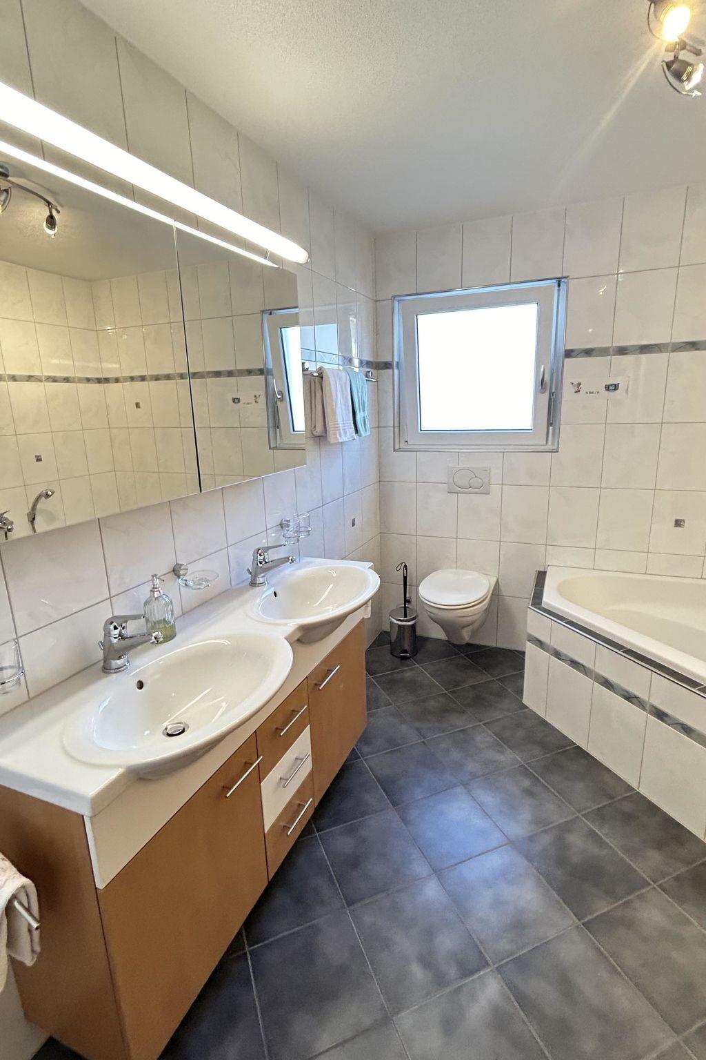 4 1/2-room apartment on the first floor, south-facing. Bright, spacious living room with satellite TV, hi-fi system and DSL Internet connection. Kitchen with large dishwasher, electric kettle, coffee maker. The dining room offers space for 6 people. 3 large and bright double rooms, bathroom with corner bath, shower, WC and double washstand. Large balconies on the south side.