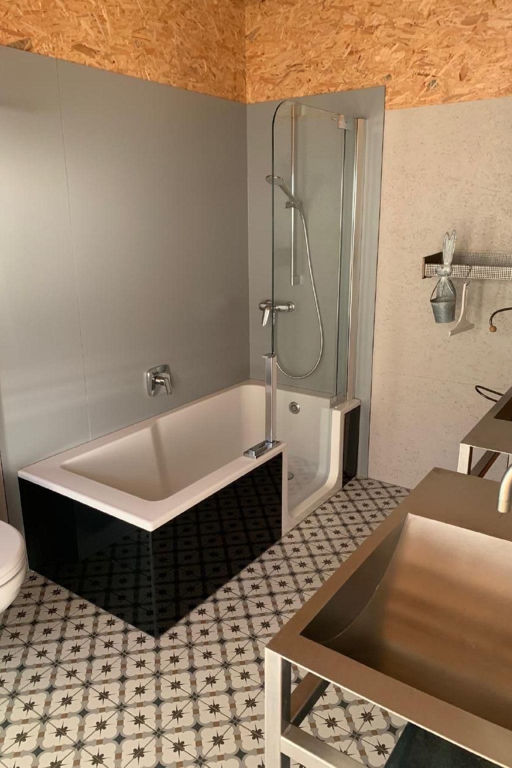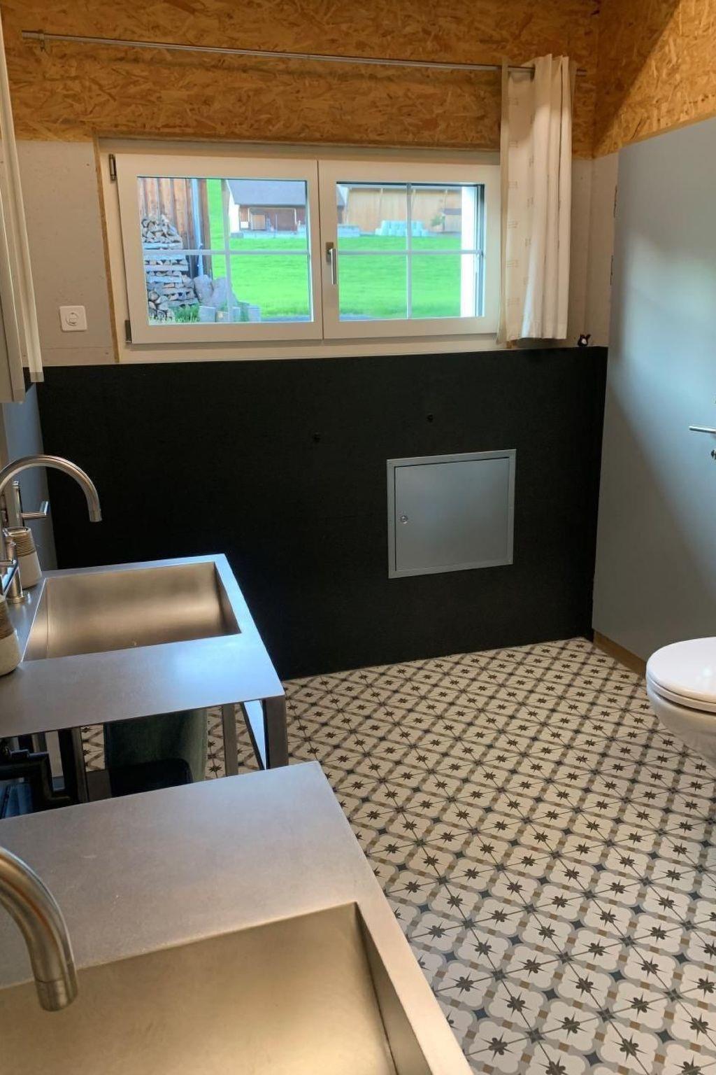 The barrier-free and stairless studio (door threshold 3cm, door width 100cm) with its spacious modern kitchen and stylish bathroom (shower bath with side access door, 5.5cm step) is underfloor heated. We heat with wood from our own forest and with solar energy for hot water. We have deliberately avoided carpeted floors and favoured LED lighting. Our 4 hectares of meadowland around the farm are cultivated in a natural way.
