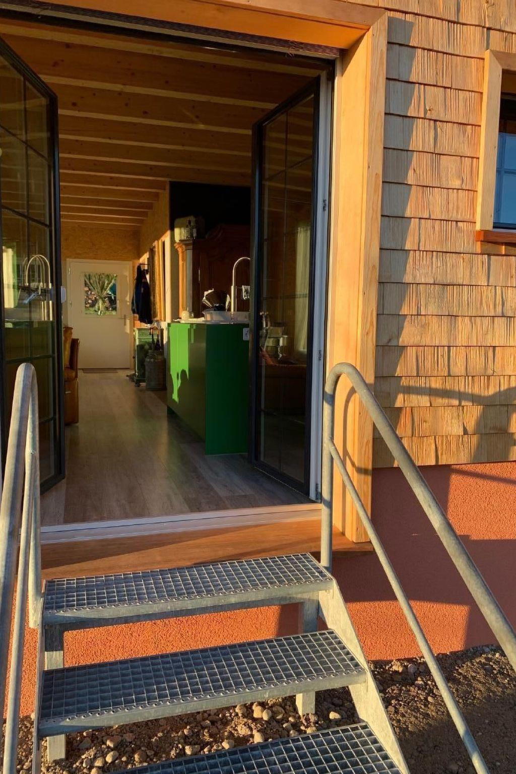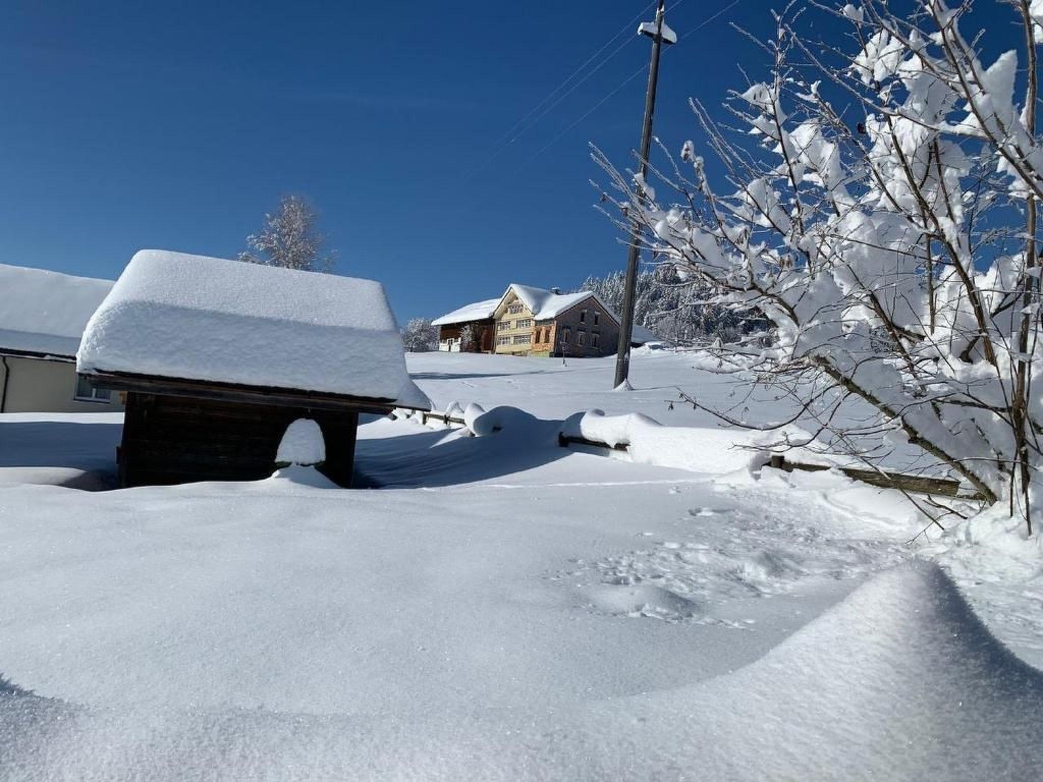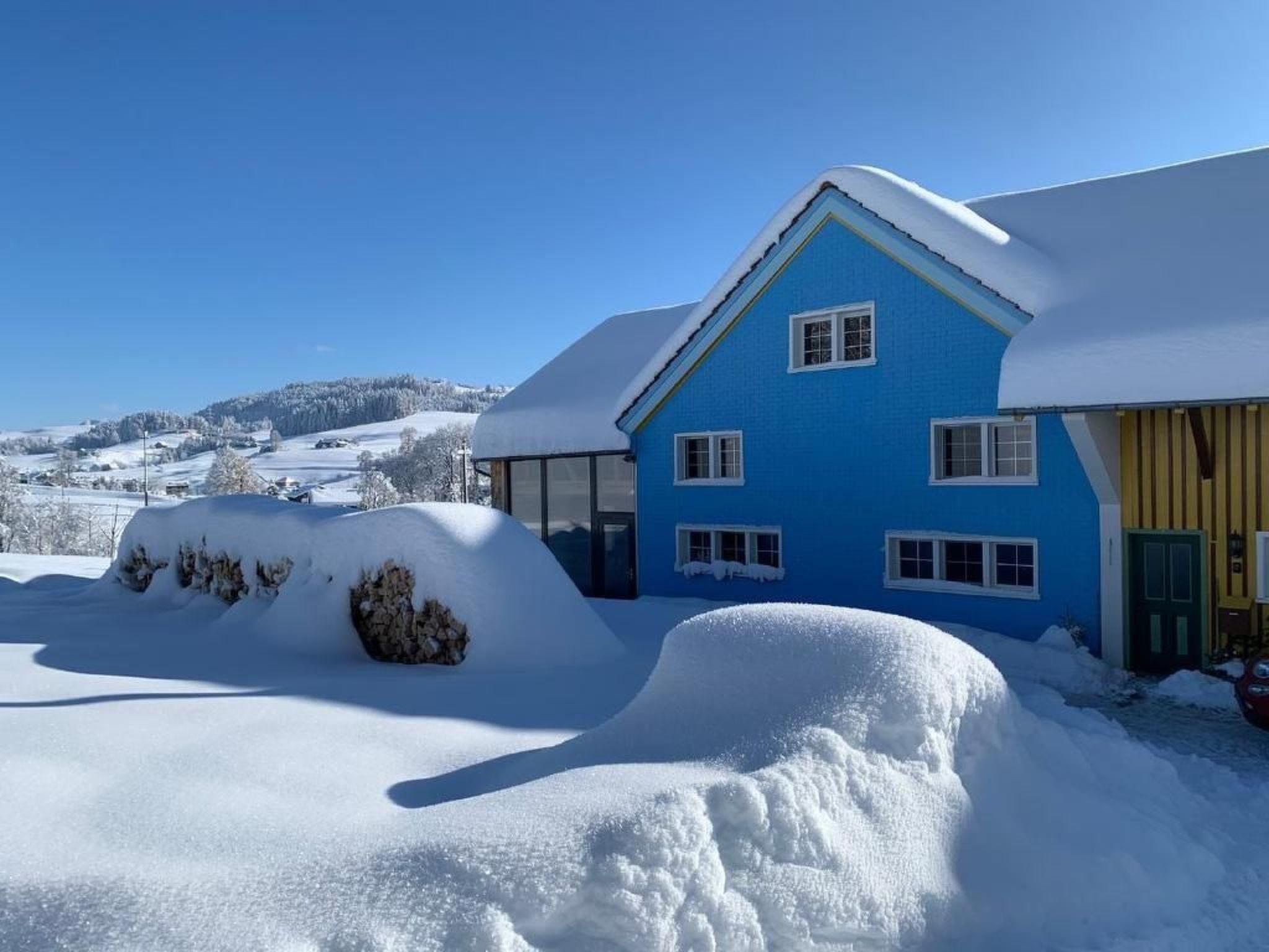 The spacious, loft-like studio (ceiling height 2.90 m) built into the former stable - as a separate part of the house with its own outside entrance and terrace access - offers a wide view of the countryside through its three panoramic windows (no immediate neighbours) and of the starry sky at night. Our farmhouse is within walking distance of the village on the outskirts with a beautiful view of the village of Schönengrund and the surrounding area. At the rear, with a view of the Way of St James, you feel as if you are on an alpine pasture and yet you are within walking distance of the bakery, butcher's, grocery shop and country shop. You can also retreat to our forest with stream during the day. If you are travelling on the Way of St. James, you can reach us on foot in 15 minutes. If you are travelling by public transport, we will be happy to pick you up at one of the stops.