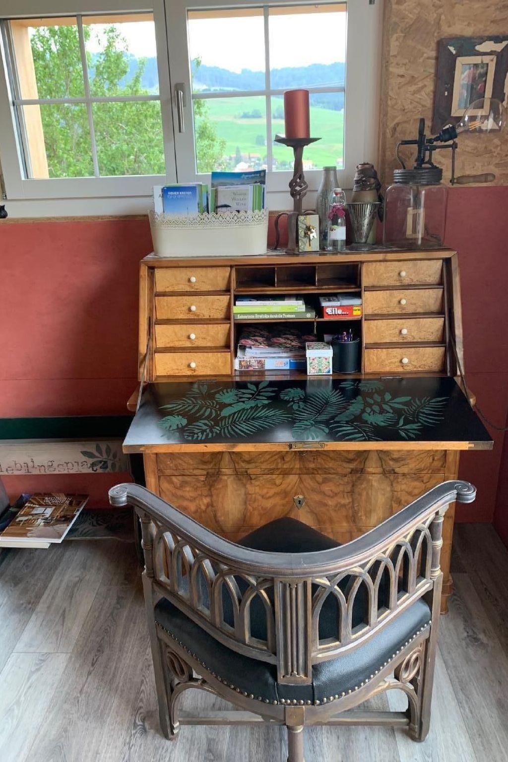 Would you like to be creative during your holidays as well as going on excursions, hiking and enjoying the spa? We are happy to make our well-equipped workshop and our studio with its large south-facing window available to you. For example, you can bring a piece of furniture or decorative item from home to upcycle and decorate it with chalk paint and various techniques, or you can visit the local second-hand shops and choose a suitable piece. If you prefer textile work or would like to skilfully mend your laundry or transform your table/bed linen into home decoration, then a Bernina sewing and overlook machine is ready for you. We will be happy to give you advice.
