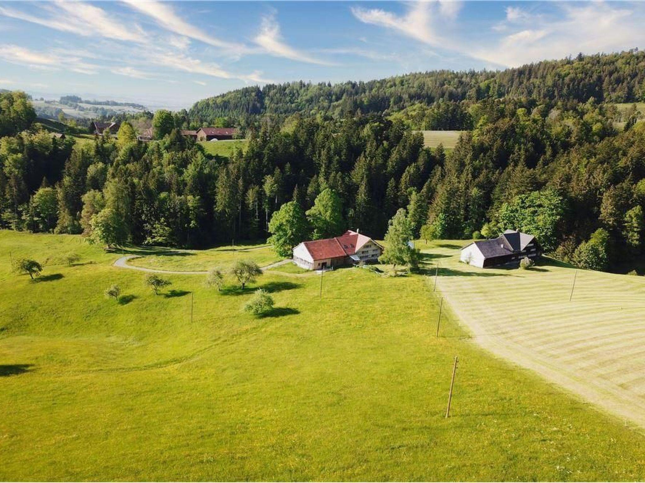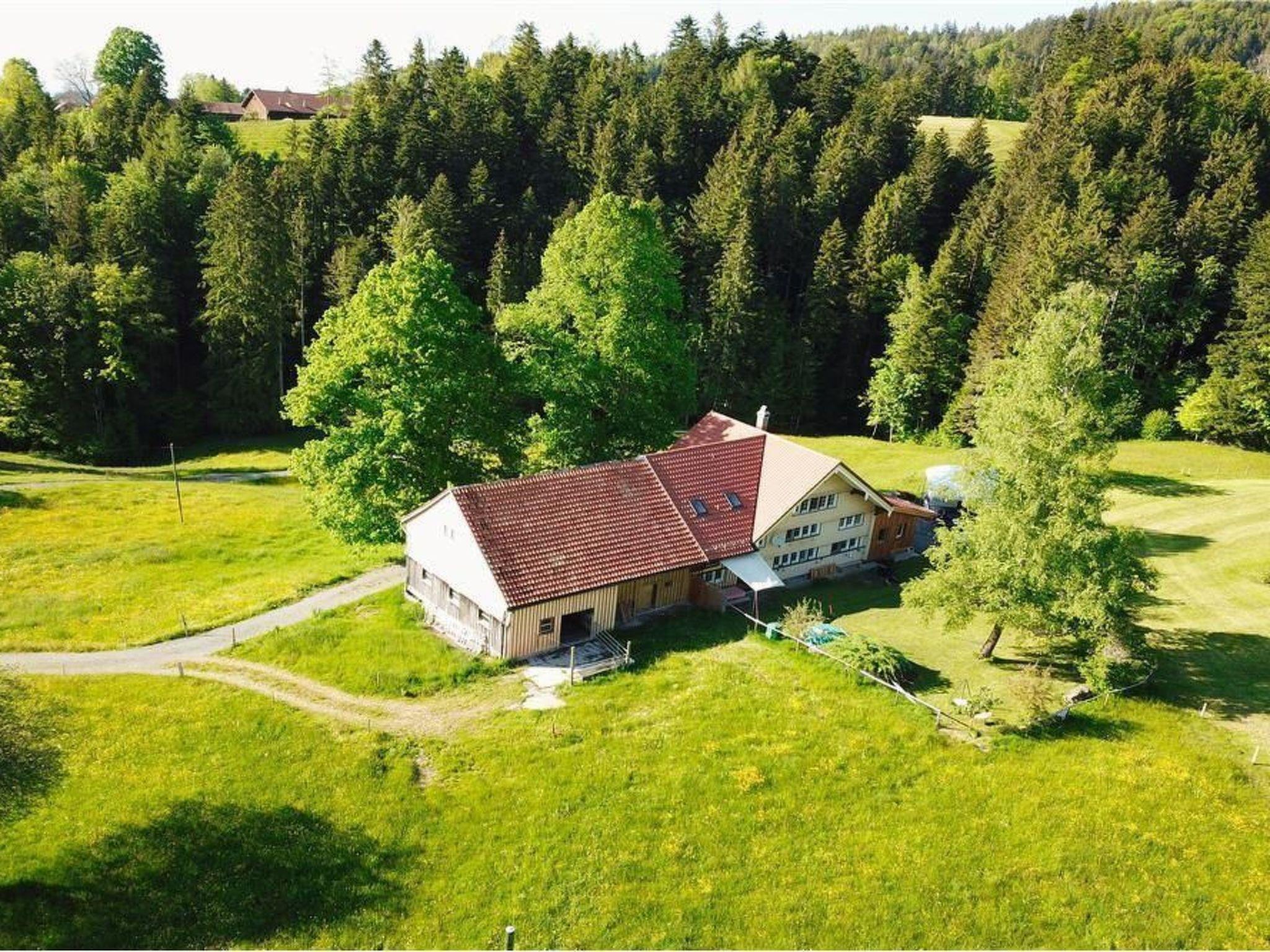 In the farmhouse built in 1707, which was renovated in 2020 according to building biology guidelines, we rent out a quiet and cosy holiday flat. The studio is ideal for two people. It is equipped with a modern kitchen, bathroom with shower/toilet and pull-out sofa. There is a radio, Internet TV and WLAN. A staircase leads to the gallery under the roof with a cosy double bed. (due to the height of the room, the bed is on the floor)In the newly designed garden you can laze around to your heart's content.as a little break from everyday life, the in-house sauna with colour light therapy can be used for a small extra charge. If you wish, we can also heat up the hot pot in the garden for you to relax in. It is equipped with massage jets and an aerator. (separate tariff / not possible in case of water shortage)We are embedded in a forest and agricultural zone. Schwellbrunn was voted the most beautiful village in Switzerland by the Swiss population in 2017. In summer, beautiful hiking trails can be explored right on the doorstep. There are plenty of bike trails and e-bike routes in the surrounding area. The Appenzellerland and the Lake Constance region offer a variety of culinary, sporting and recreational activities. There is something for everyone in the surrounding area. In winter, various snowshoe hiking trails pass close to the house. A cross-country ski trail can also be used day and night. The farmhouse is situated just outside Schwellbrunn on a private road. Direct access to the house is possible and parking spaces are available right next to the flat. The steep road, paved with Ecoraster, is not necessarily recommended for cars with long wheelbase or lowered cars. The nearest bus stop is a 30-minute walk away. By car it is 10 minutes to Herisau and 20 minutes to the city of St.Gallen or Appenzell.