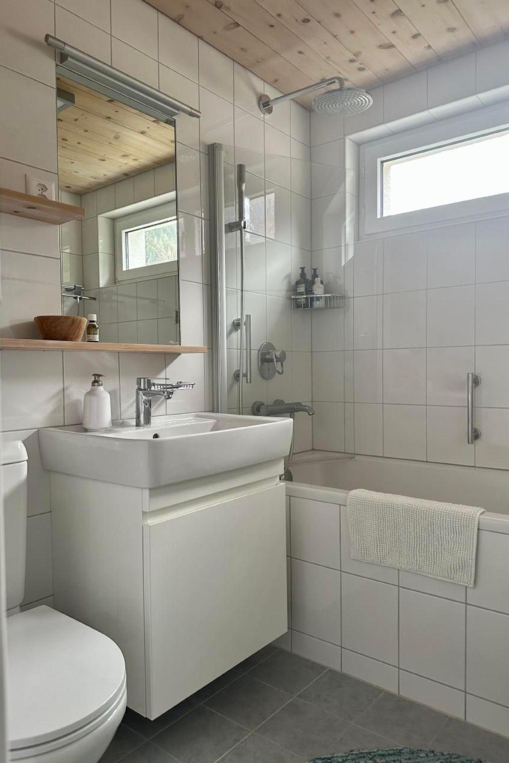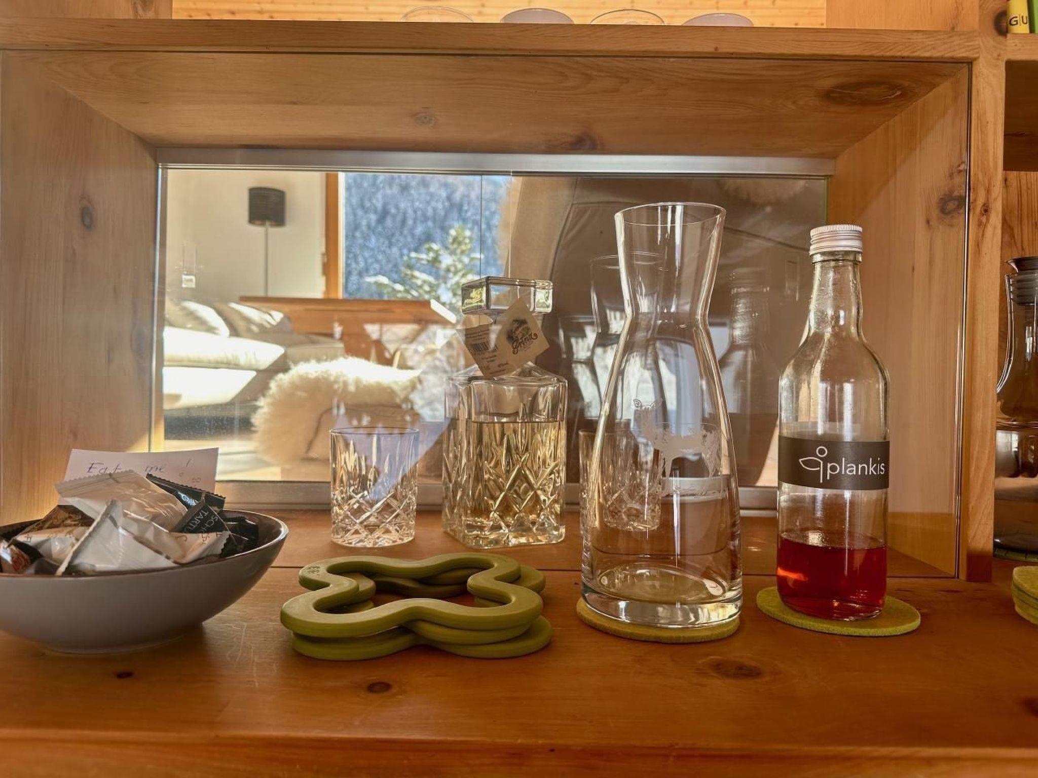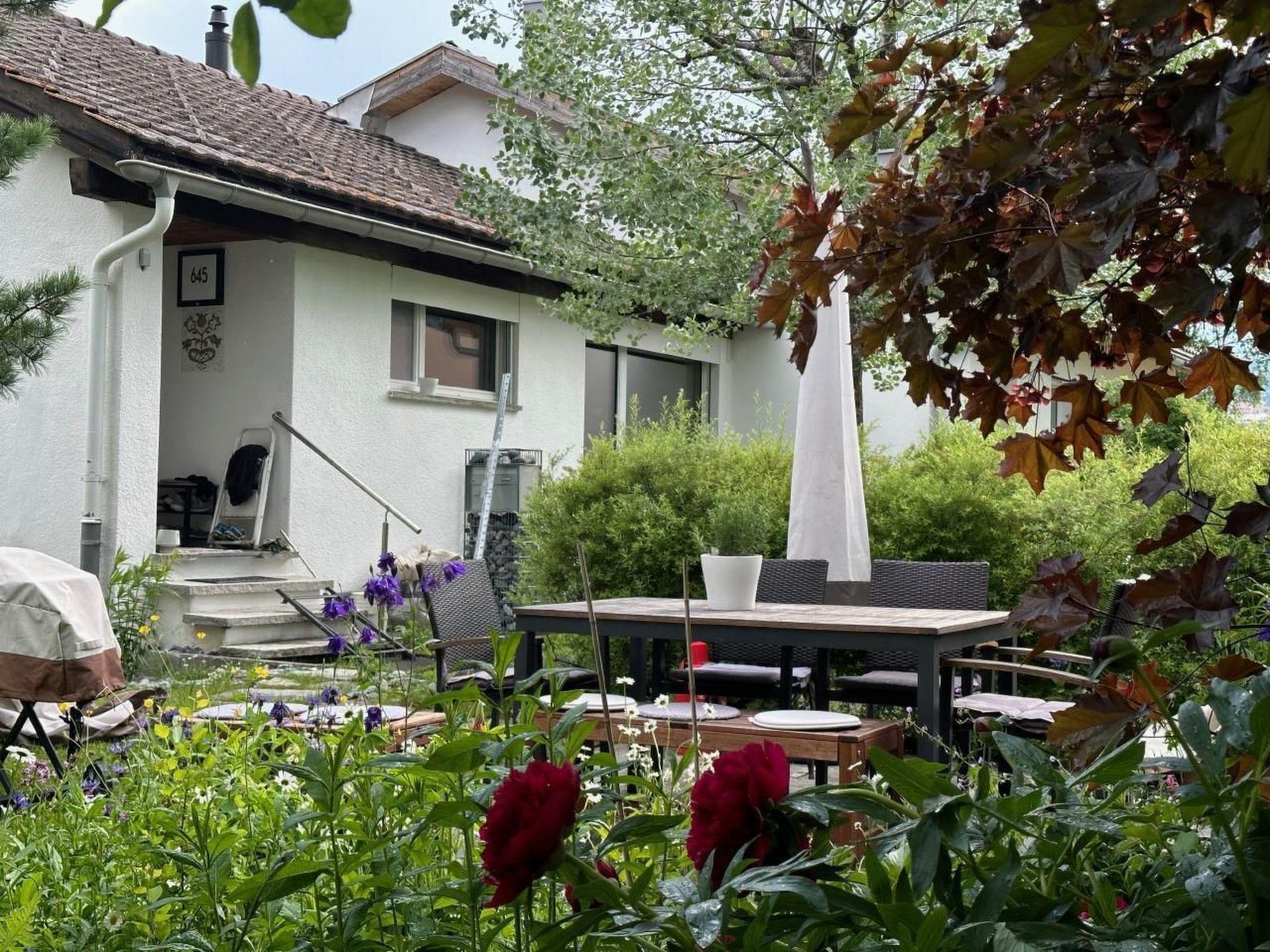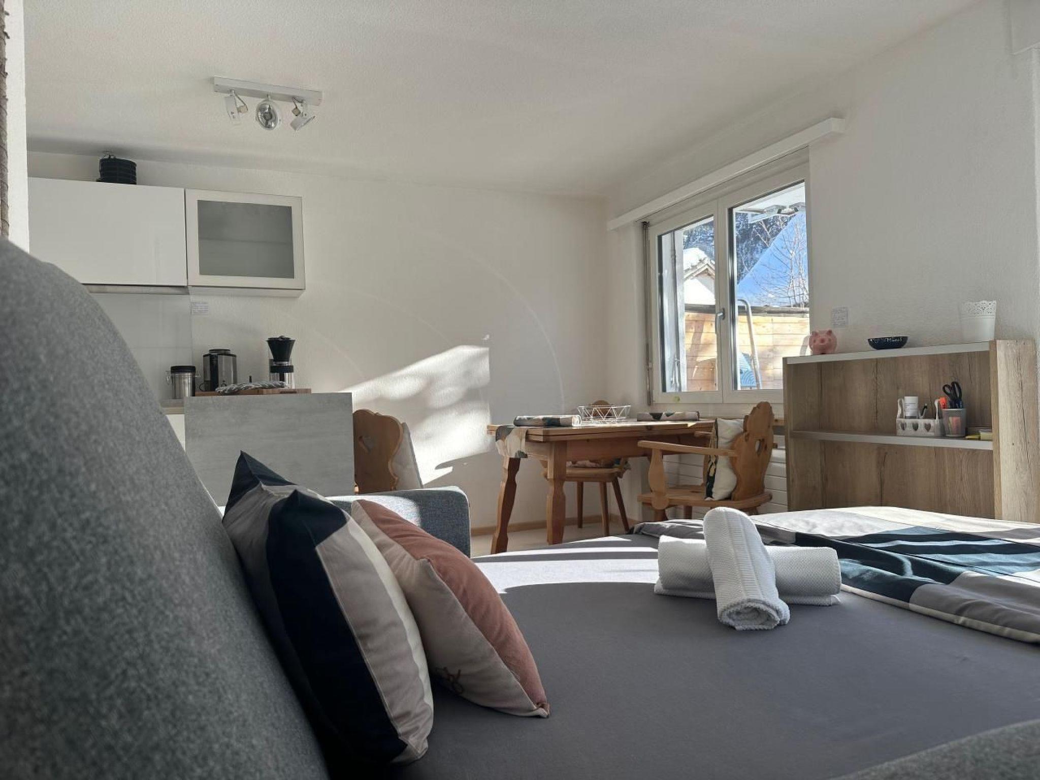The flats have fast Internet, WLAN, 2 TVs, a massage chair, two spacious open and fully equipped kitchens, two bedrooms with new upholstered beds with new very high-quality pocket spring mattresses, Swiss stone pine furniture and wardrobes, high-quality and modern furniture in an exciting mix with Swiss stone pine elements. Our house has a south-facing balcony with a fantastic mountain view, 2 terraces with mountain views, a private garden with herbs and delicious berries in summer. Garden spa with sauna and whirlpool.