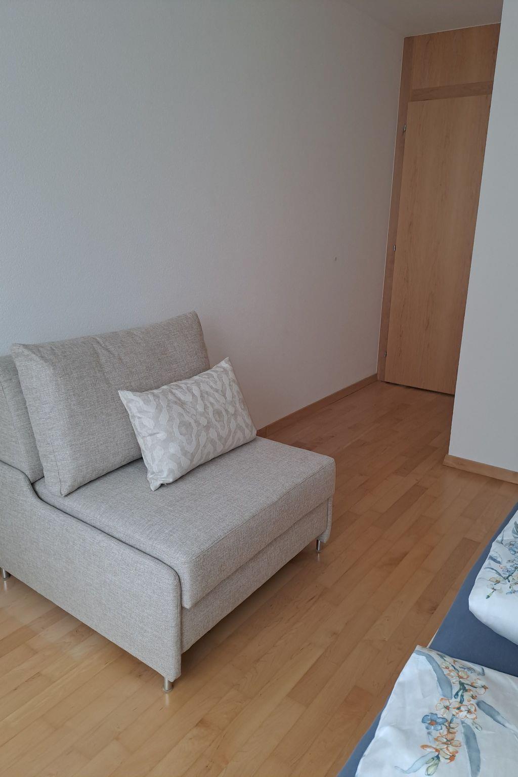 Inside, you will find a well thought-out interior with all the comforts to make your stay as pleasant as possible. The flat has a bedroom that can be darkened to ensure a good night's sleep. A walk-in rain shower ensures your well-being, while underfloor heating keeps the temperature pleasant throughout the flat. There is also a washing machine and tumble dryer for your exclusive use, as well as a fully equipped kitchen with induction hob, capsule coffee machine, dishwasher and kettle.
