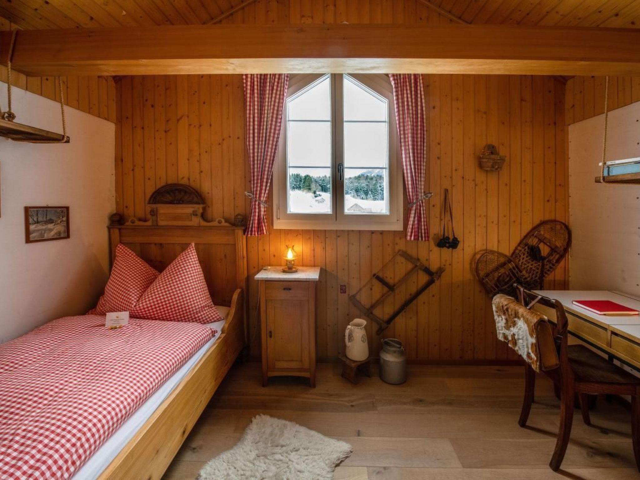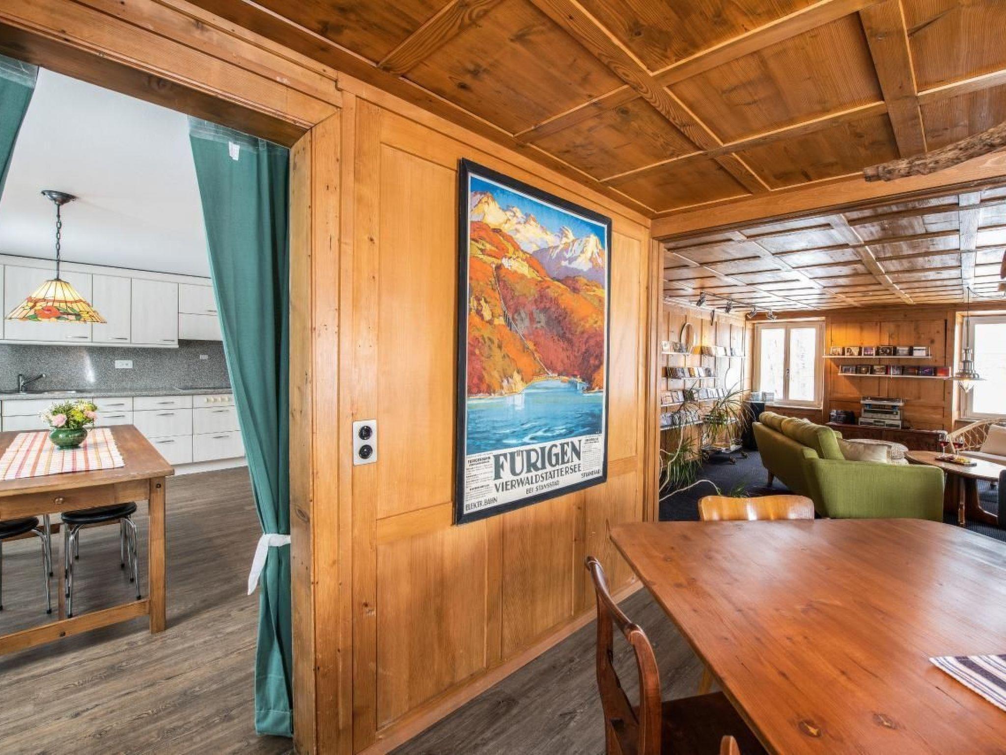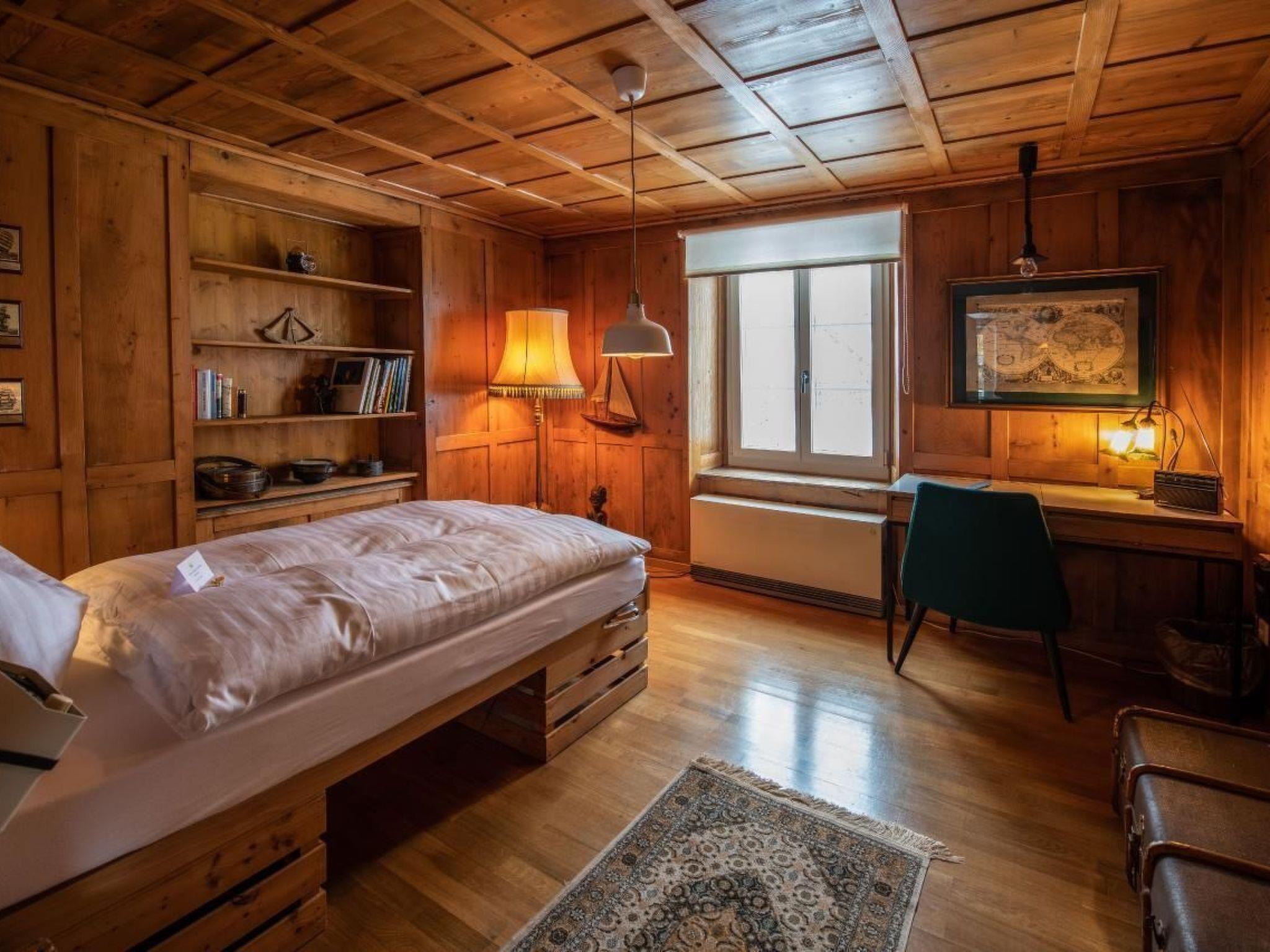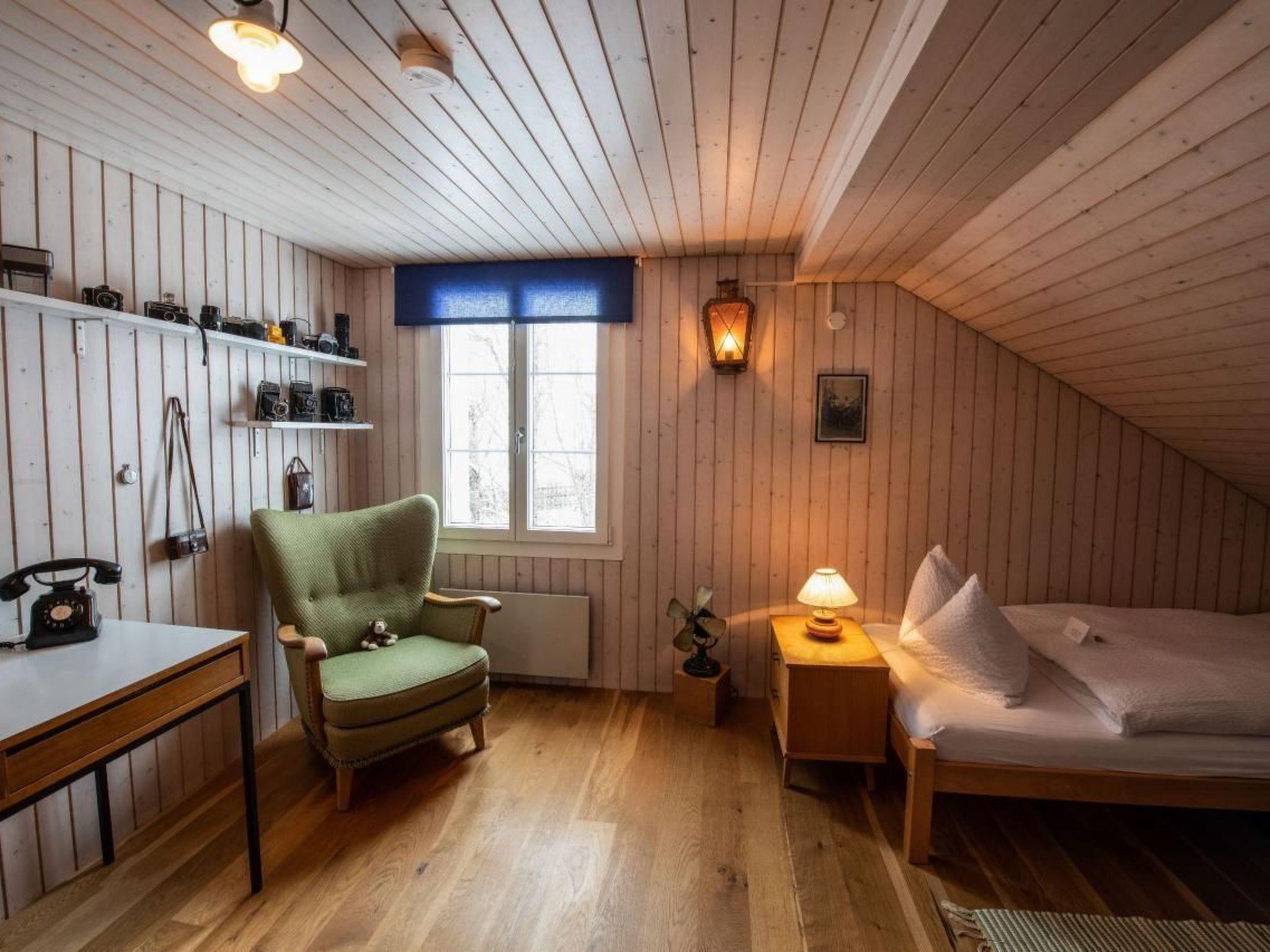 Inside, the house is enriched by a spacious kitchen, perfectly equipped for every culinary need, and a Fürigen Stübli with a large table for communal meals. Enjoy the variety of over 1000 CDs and LPs in the cosy living room with pellet stove or immerse yourself in the rich selection of the library. The individually designed adventure rooms invite you to dream, while various museum pieces turn the house into a journey through cultural history.