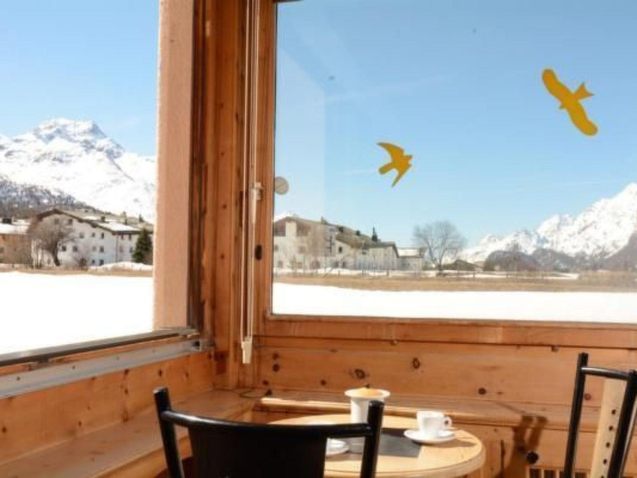 The 2 1/2 - apartment is on the first floor and is fully directed towards the south and west. It has a clear view of the surrounding mountains, which can be enjoyed on the balcony with glazing and heating, windows that can be opened partially. The living room is like the bedrooms, partly covered with pine and equipped with comfortable furniture. The adjacent kitchen is equipped with dishwasher, refrigerator and coffee maker. In the bedroom there are two single beds. Another bed is in the living room and a folding bed in the closet. In the bathroom there is a washing machine for free use. The whole apartment is fully equipped with linens. The indoor pool, the children's room in the house next door and the garage can be used free. For the use of the sauna cé a small fee. In the apartment there is a telephone with ISDN connection, TV and radio. In the apartment you will also find hiking maps, route descriptions, calendar of events and general information on Sils and Upper Engadine. Numerous books are available for rainy days. Pets welcome.