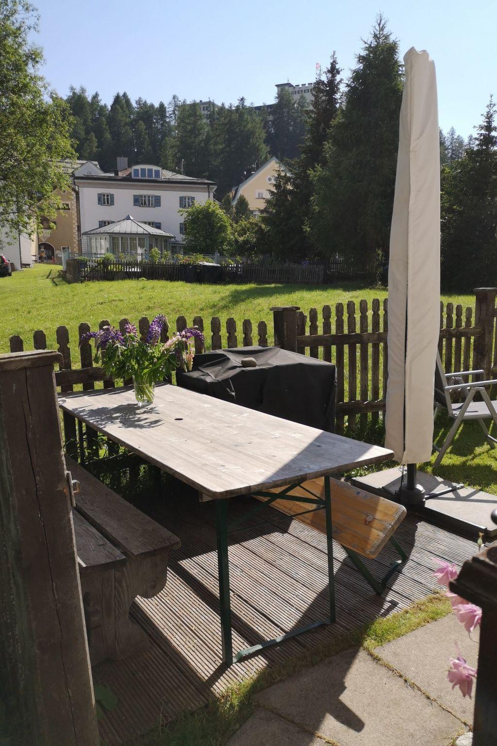 Sunny and bright charming 3 1/2 room flat on the 1st floor, centrally and quietly located with balcony (table, chairs and parasol (summer) beautiful view of the mountain La Margna. There is free WLAN access in the flat. The open-plan kitchen is well equipped with ceramic hob, dishwasher, Dolce Gusto capsule coffee machine and mocha pot with powder, fondue set, raclette oven for 2-4 persons on request. Bathroom with shower cubicle and towelling per person with bath mat. One bedroom with double bed 160 x 200, the other with two single beds 90 x 200. Both bedrooms have large built-in wardrobes and plenty of storage space. Free car park in front of the house. Shared use of the garden (deckchairs, table available).